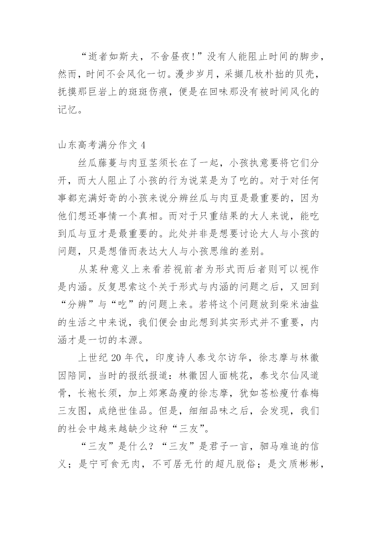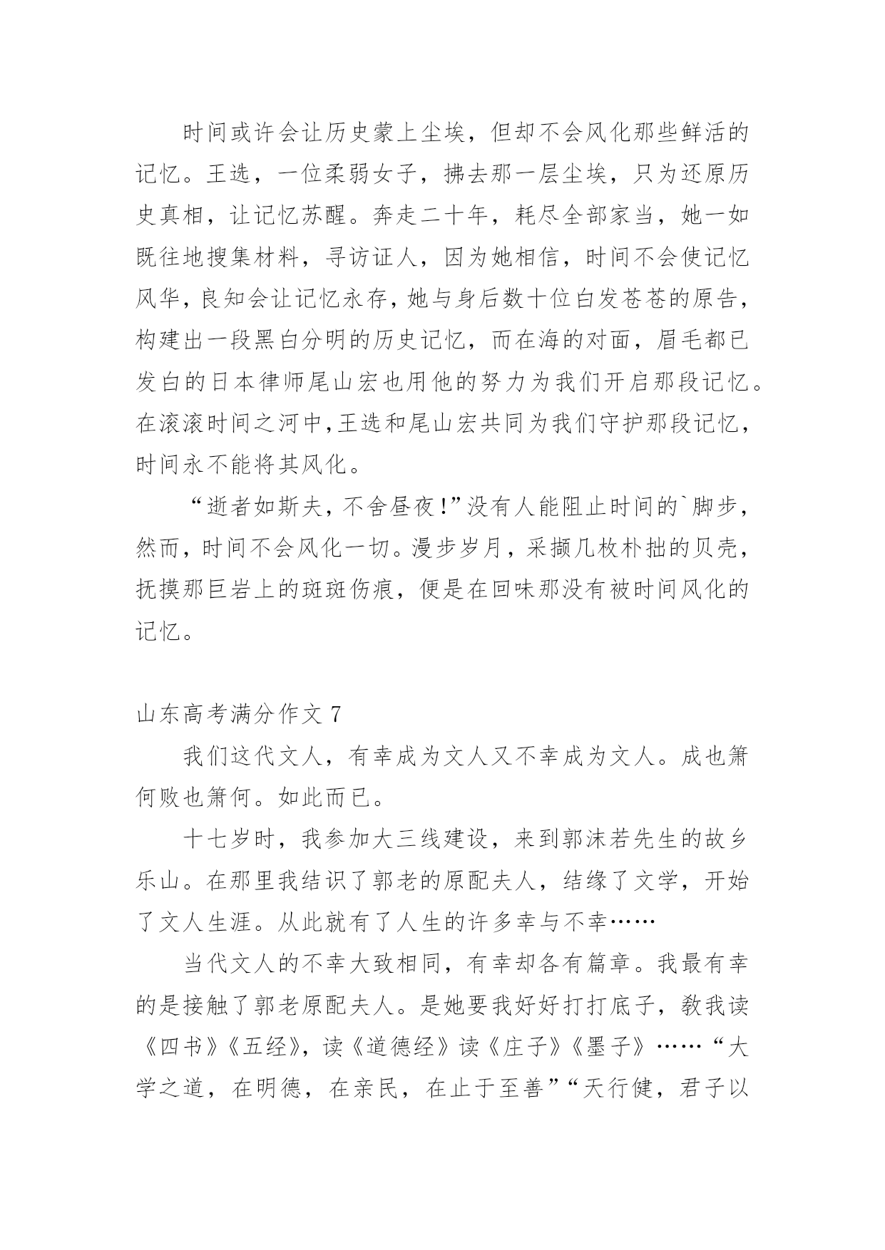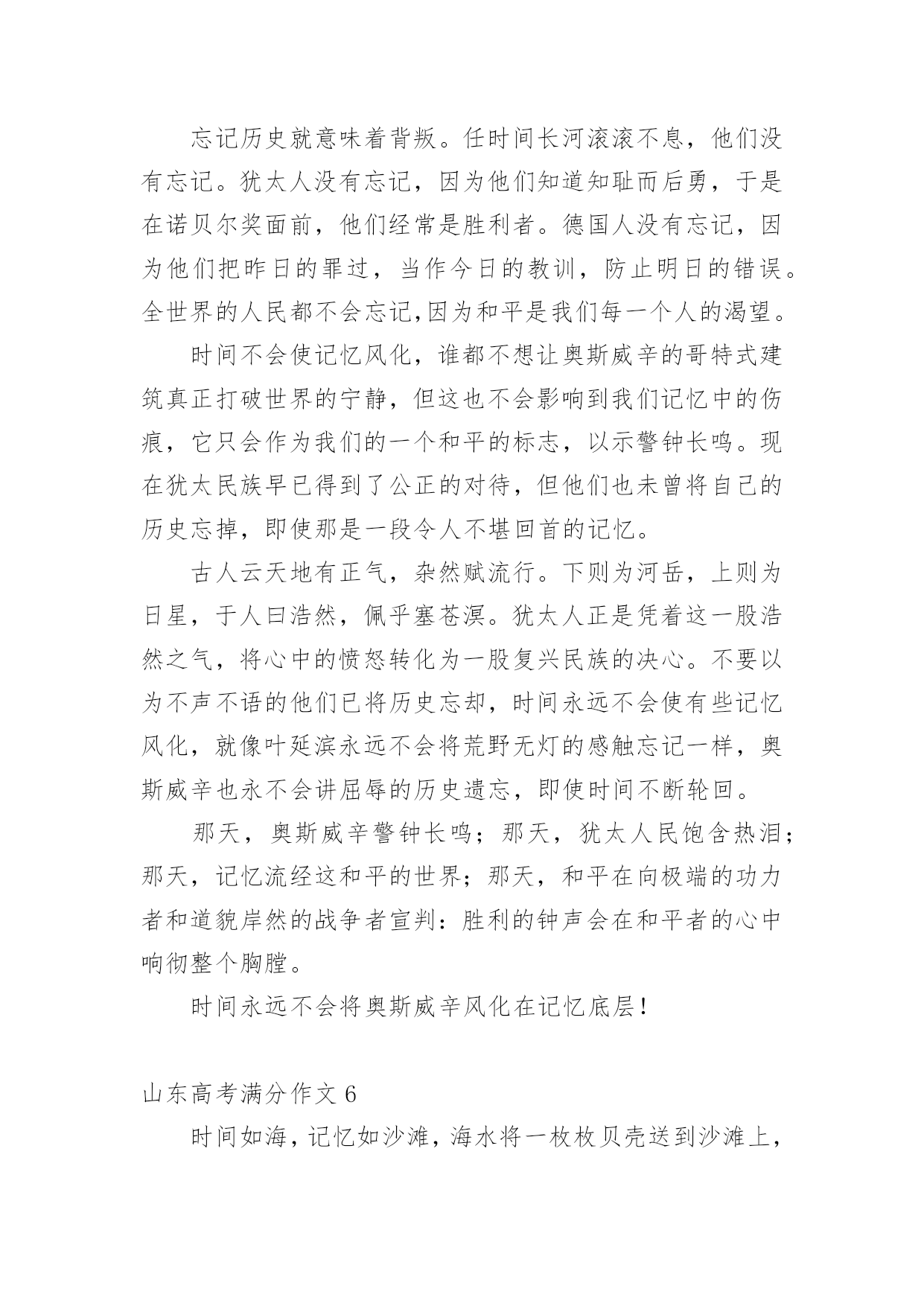 山东高考满分作文在平日的学习、工作和生活里,许多人都写过作文吧,作文是人们把记忆中所存储的有关知识、经验和思想用书面形式表达出来的记叙方式。那么一般作文是怎么写的呢?以下是小编整理的山东高考满分作文,供大家参考借鉴,希望可以帮助到有需要的朋友。山东高考满分作文1博尔赫斯在《天赐的诗》中这样写道:“我心里一直都在暗暗设想,天堂应该是图书馆的模样。”然而,一个二十四小时亮灯的书店,更容易让我们在书香氤氲中诗意地栖居于大地。当夜幕深沉,这里有明灯,有温暖。喜欢夜读的市民、自习的大学生、外来的务工人员、流浪者和拾荒者来了,他们在工作人员的眼中不是顾客而是读者。在工作人员的理念中,他们哪怕只是在这里休息都能体现出二十四小时书店存在的意义。在这里,书店不仅是进书卖书,而是亮起一盏明灯,让知识和文明温暖人心,用书香把人文关怀传递延伸,使工作更加富有意义。亮一盏明灯,传一脉书香,这是书店丰富城市精神生活的责任担当。伍尔夫曾有言:“人不应该是插在花瓶里供人欣赏的静物,而是蔓延在草原上随风起舞的韵律。”在明亮的灯光下,无论是孜孜不倦的夜读者,还是辗转于生活中的潦倒憔悴者,都可以在这里得到文化的滋养和心灵的栖息。在这里,有的是安静的共享,平等的对待,生命在书香里的轻舞飞扬。亮一盏明灯,传一脉书香,这是书店高于世俗经济的人文力量。林达曾言:“每一个看似简单的社会现象其实都只露出了冰山一角。”的确如此,书店的二十四小时亮灯,实际上是为城市点亮“人文灯火”。如果单纯从商业利润来看,书店可能会付出更多,可是从更广阔的人文视野来说,书店与读者,都在明灯中,在书香里,共同收获了文明和尊严。亮一盏明灯,传一脉书香,这是书店在践行自己的工作理想。克雷洛夫曾讲:“现实是此岸,理想是彼岸,中间隔着湍急的河流,行动则是架在河上的桥梁。”二十四小时书店的明灯照亮了幽暗昏惑,一脉书香冲淡了混沌雾气,“从不驱赶任何人”的书店店员们深知自己工作的意义,他们怀揣着炽热的理想,用二十四小时的亮光和书香丰富心灵,滋养文化。鲁迅曾言:“无尽的远方,无数的人们,都与我有关。”网络时代的实体书店亮一盏明灯,传一脉书香,是创新发展,更是文化弘扬。衷心希望这样的书店越来越多,希望无论是那街边暮色里奔跑的少年,还是路旁面带疲倦的中年人,抑或墙角沉思的老者,都可以在暗夜里享受这明亮灯光,沉醉于这一脉书香。山东高考满分作文2多彩的世界犹如嵌在画框内的图画,静立窗前,循光望去,展现在人们前、映刻在人们心中的却纷繁各异,雅俗闹静、美丑明暗……每个人眼中自有一个世界。推开窗子,让我们望向正在案前奋笔的他们……为了搜集世界各地的神奇怪异的故事,格林兄弟可谓煞费苦心。他们想将其集结为一册,整理成为一本各地奇异怪闻集。窗外日月星辰交替流转,他们不顾艰辛仍伏案工作,最终因工程量太大以失败告终。那本未完的书却被一位拜访的朋友偶然发现,挖崛出其宝贵的文学价值,终于闻名遐迩的《格林童话》问世了。面对同一本书,格林兄弟眼中凝聚着其史学价值,那朋友眼中则浮现出文学价值,毋论对错,这都是人们心中世界的反映,不同人有不同世界,也使世界更加多彩。透过玻璃,让我们注目工厂里辛勤的他……褚时健,亚洲第一卷烟厂——红塔烟厂的创立人。一开始办厂的目的便是透过窗户与别人看见不一样的世界。面对畅销全球的万宝路香烟,有人看到可以买来享受,有人看到外国货的品质优良,褚时健看到中国却还没有一个国产品牌可以与之抗衡,于是云南红塔诞生。面对同一个世界,人们因为望见的不同,作出不同的回应,也踏上了不同的生命轨迹。我们不需要争论谁明亮、谁黯淡,只需平静地看待,不同人不同世界,看见自己的世界。打开窗棂,让我们凝视那小屋内孤独的身影……倾注毕生心血于炸药发明的诺贝尔,生命历尽艰险,危险的实验炸死了自己亲人。镇上的人看到的是疯狂,是恐怖,是不解。危及大家的生命便不可再让他再住在镇上,诺贝尔便移于荒僻处。他终于成功了,他从窗子望出去,看到的是人们可以轻松方便地将山炸开,看到的是个人牺牲于人类社会来说不算什么。面对同一件事情,内心怀揣的不同,使人们看到不同的世界。“一千个读者心中有一千个哈姆雷特”,使众多文学作品丰满灿烂;如两个囚犯望窗外,一个看见污泥,一个看见星空的故事,激励人们永怀希望。不同人,不同世界,不同感触。伫立窗前,看到多彩世界,用我们看到的不同的世界丰富我们置身的世界。山东高考满分作文3时间如海,记忆如沙滩,海水将一枚枚贝壳送到沙滩上,又收回她那浩渺的胸怀。时间如风,记忆如巨岩,风将巨岩刻划得千疮百孔,又用多情的手把那些痕迹抚平。然而,总有几枚贝壳,在亘古的海滩上鸣响着历史的悲风,总有几笔划痕,在诉说着记忆的不朽。惶恐滩头,零丁洋里,涛声依旧。叹息不再。然而,时间只侵蚀了一个人的物质存在,却无法风化那煌煌诗句中的记忆,谁能忘记文天祥的辛苦遭逢,干