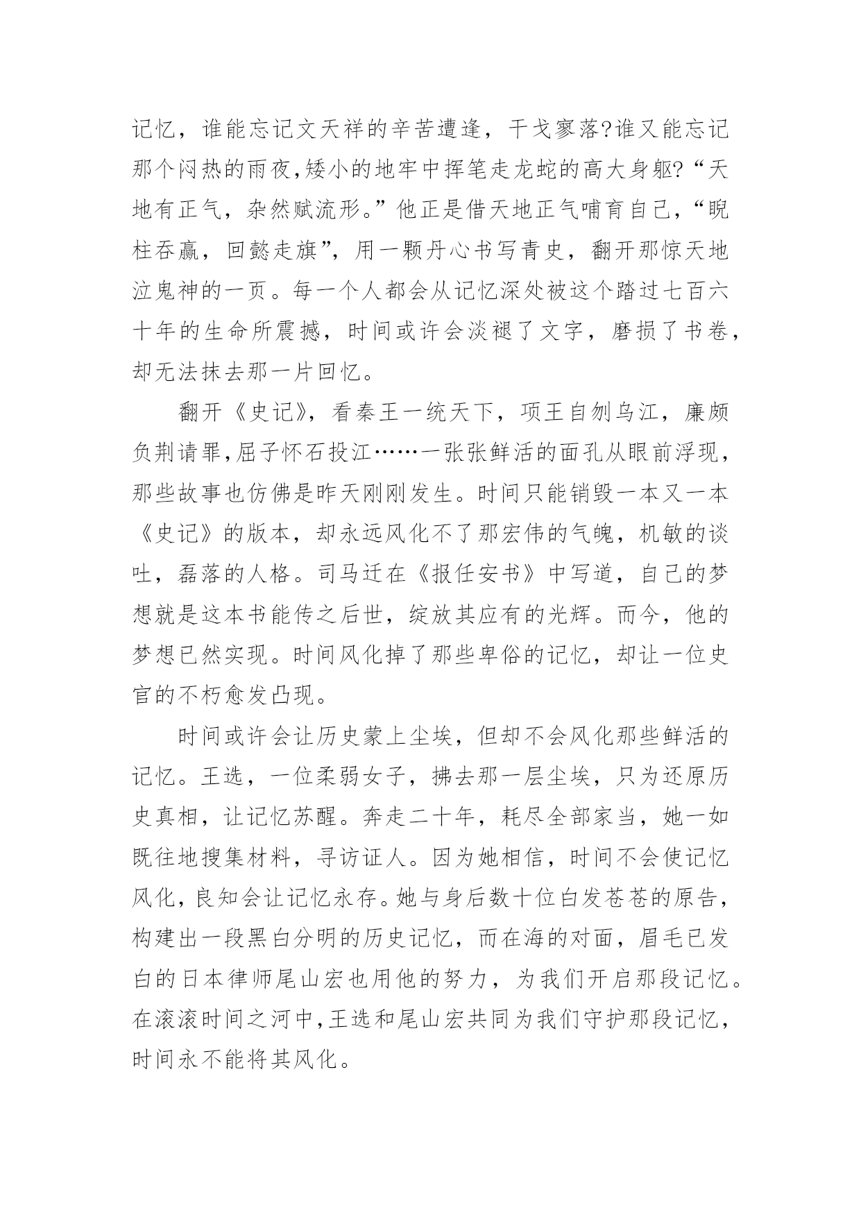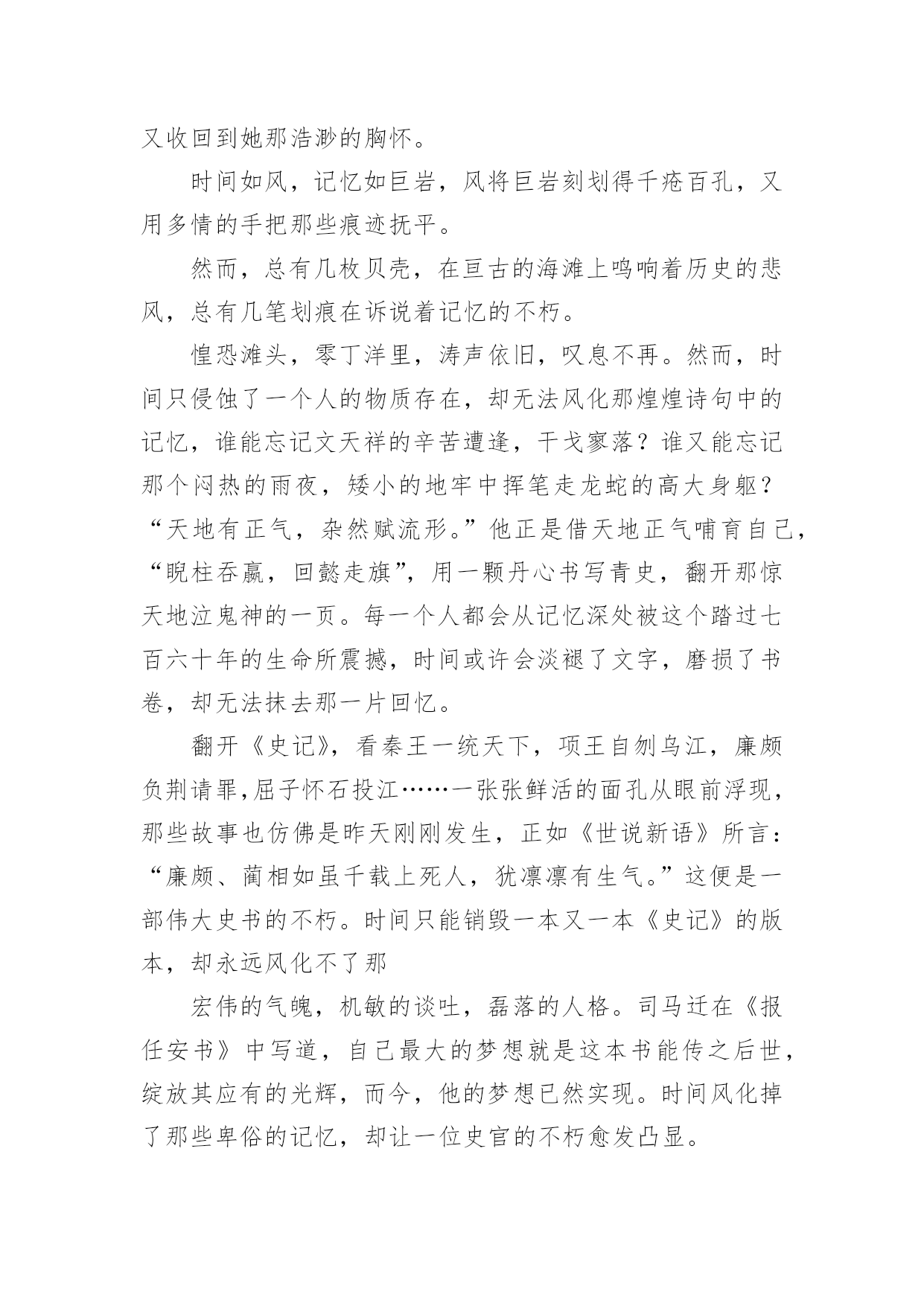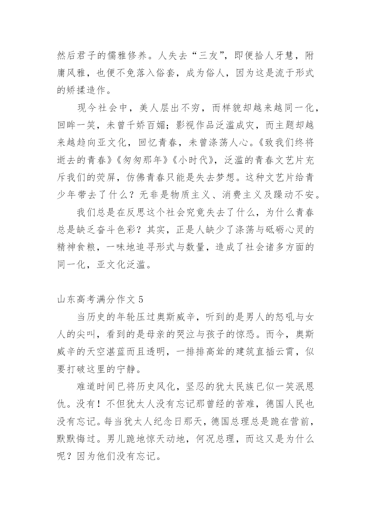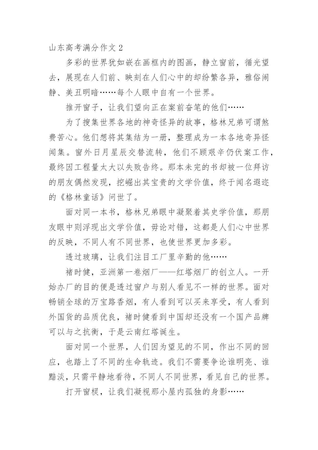 山东高考满分作文在平日的学习、工作和生活里,许多人都写过作文吧,作文是人们把记忆中所存储的有关知识、经验和思想用书面形式表达出来的记叙方式。那么一般作文是怎么写的呢?以下是小编整理的山东高考满分作文,供大家参考借鉴,希望可以帮助到有需要的朋友。山东高考满分作文1博尔赫斯在《天赐的诗》中这样写道:“我心里一直都在暗暗设想,天堂应该是图书馆的模样。”然而,一个二十四小时亮灯的书店,更容易让我们在书香氤氲中诗意地栖居于大地。当夜幕深沉,这里有明灯,有温暖。喜欢夜读的市民、自习的大学生、外来的务工人员、流浪者和拾荒者来了,他们在工作人员的眼中不是顾客而是读者。在工作人员的理念中,他们哪怕只是在这里休息都能体现出二十四小时书店存在的意义。在这里,书店不仅是进书卖书,而是亮起一盏明灯,让知识和文明温暖人心,用书香把人文关怀传递延伸,使工作更加富有意义。亮一盏明灯,传一脉书香,这是书店丰富城市精神生活的责任担当。伍尔夫曾有言:“人不应该是插在花瓶里供人欣赏的静物,而是蔓延在草原上随风起舞的韵律。”在明亮的灯光下,无论是孜孜不倦的夜读者,还是辗转于生活中的潦倒憔悴者,都可以在这里得到文化的滋养和心灵的栖息。在这里,有的是安静的共享,平等的对待,生命在书香里的轻舞飞扬。亮一盏明灯,传一脉书香,这是书店高于世俗经济的人文力量。林达曾言:“每一个看似简单的社会现象其实都只露出了冰山一角。”的确如此,书店的二十四小时亮灯,实际上是为城市点亮“人文灯火”。如果单纯从商业利润来看,书店可能会付出更多,可是从更广阔的人文视野来说,书店与读者,都在明灯中,在书香里,共同收获了文明和尊严。亮一盏明灯,传一脉书香,这是书店在践行自己的工作理想。克雷洛夫曾讲:“现实是此岸,理想是彼岸,中间隔着湍急的河流,行动则是架在河上的桥梁。”二十四小时书店的明灯照亮了幽暗昏惑,一脉书香冲淡了混沌雾气,“从不驱赶任何人”的书店店员们深知自己工作的意义,他们怀揣着炽热的理想,用二十四小时的亮光和书香丰富心灵,滋养文化。鲁迅曾言:“无尽的远方,无数的人们,都与我有关。”网络时代的实体书店亮一盏明灯,传一脉书香,是创新发展,更是文化弘扬。衷心希望这样的书店越来越多,希望无论是那街边暮色里奔跑的少年,还是路旁面带疲倦的中年人,抑或墙角沉思的老者,都可以在暗夜里享受这明亮灯光,沉醉于这一脉书香。山东高考满分作文2多彩的世界犹如嵌在画框内的图画,静立窗前,循光望去,展现在人们前、映刻在人们心中的却纷繁各异,雅俗闹静、美丑明暗……每个人眼中自有一个世界。推开窗子,让我们望向正在案前奋笔的他们……为了搜集世界各地的神奇怪异的故事,格林兄弟可谓煞费苦心。他们想将其集结为一册,整理成为一本各地奇异怪闻集。窗外日月星辰交替流转,他们不顾艰辛仍伏案工作,最终因工程量太大以失败告终。那本未完的书却被一位拜访的朋友偶然发现,挖崛出其宝贵的文学价值,终于闻名遐迩的《格林童话》问世了。面对同一本书,格林兄弟眼中凝聚着其史学价值,那朋友眼中则浮现出文学价值,毋论对错,这都是人们心中世界的反映,不同人有不同世界,也使世界更加多彩。透过玻璃,让我们注目工厂里辛勤的他……褚时健,亚洲第一卷烟厂——红塔烟厂的创立人。一开始办厂的目的便是透过窗户与别人看见不一样的世界。面对畅销全球的万宝路香烟,有人看到可以买来享受,有人看到外国货的品质优良,褚时健看到中国却还没有一个国产品牌可以与之抗衡,于是云南红塔诞生。面对同一个世界,人们因为望见的不同,作出不同的回应,也踏上了不同的生命轨迹。我们不需要争论谁明亮、谁黯淡,只需平静地看待,不同人不同世界,看见自己的世界。打开窗棂,让我们凝视那小屋内孤独的身影……倾注毕生心血于炸药发明的诺贝尔,生命历尽艰险,危险的实验炸死了自己亲人。镇上的人看到的是疯狂,是恐怖,是不解。危及大家的生命便不可再让他再住在镇上,诺贝尔便移于荒僻处。他终于成功了,他从窗子望出去,看到的是人们可以轻松方便地将山炸开,看到的是个人牺牲于人类社会来说不算什么。面对同一件事情,内心怀揣的不同,使人们看到不同的世界。“一千个读者心中有一千个哈姆雷特”,使众多文学作品丰满灿烂;如两个囚犯望窗外,一个看见污泥,一个看见星空的故事,激励人们永怀希望。不同人,不同世界,不同感触。伫立窗前,看到多彩世界,用我们看到的不同的世界丰富我们置身的世界。山东高考满分作文3时间如海,记忆如沙滩,海水将一枚枚贝壳送到沙滩上,又收回她那浩渺的胸怀。时间如风,记忆如巨岩,风将巨岩刻划得千疮百孔,又用多情的手把那些痕迹抚平。然而,总有几枚贝壳,在亘古的海滩上鸣响着历史的悲风,总有几笔划痕,在诉说着记忆的不朽。惶恐滩头,零丁洋里,涛声依旧。叹息不再。然而,时间只侵蚀了一个人的物质存在,却无法风化那煌煌诗句中的记忆,谁能忘记文天祥的辛苦遭逢,干