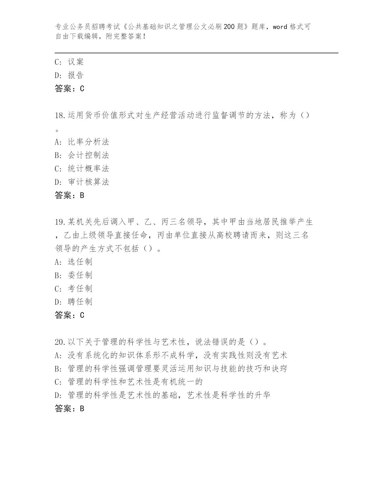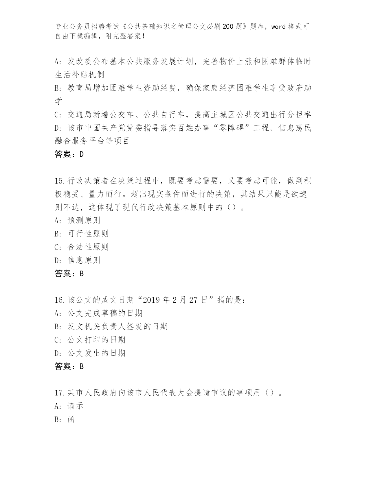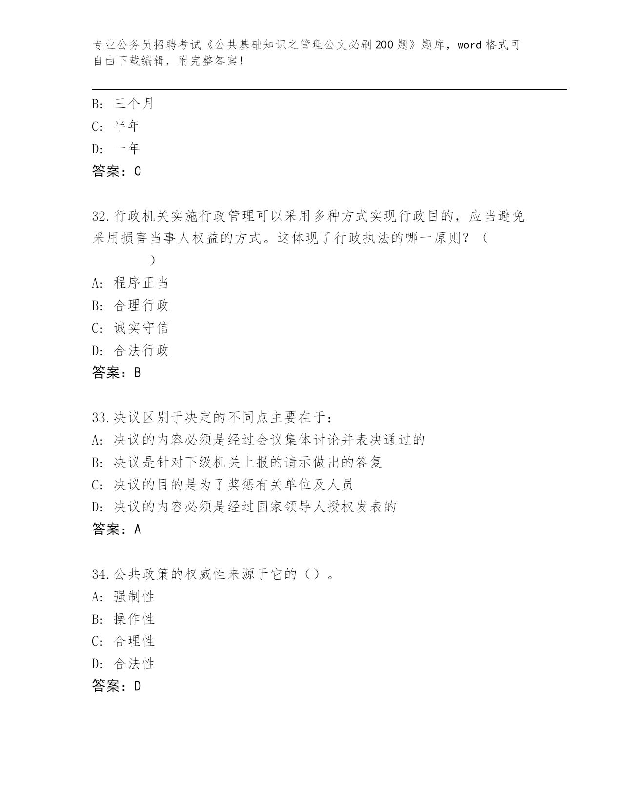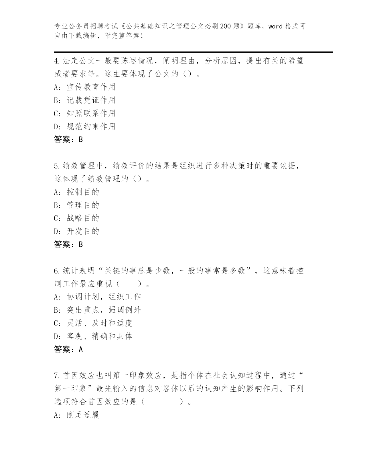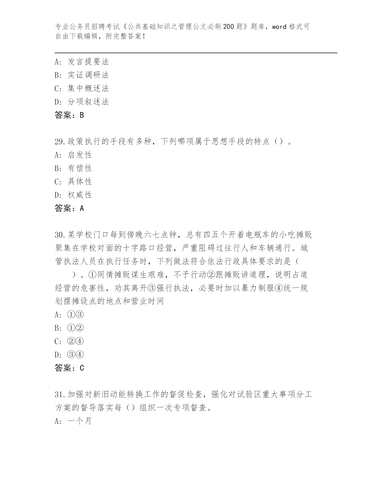 江苏省2024年公务员招聘考试《公共基础知识之管理公文必刷200题》完整题库含答案(A卷)