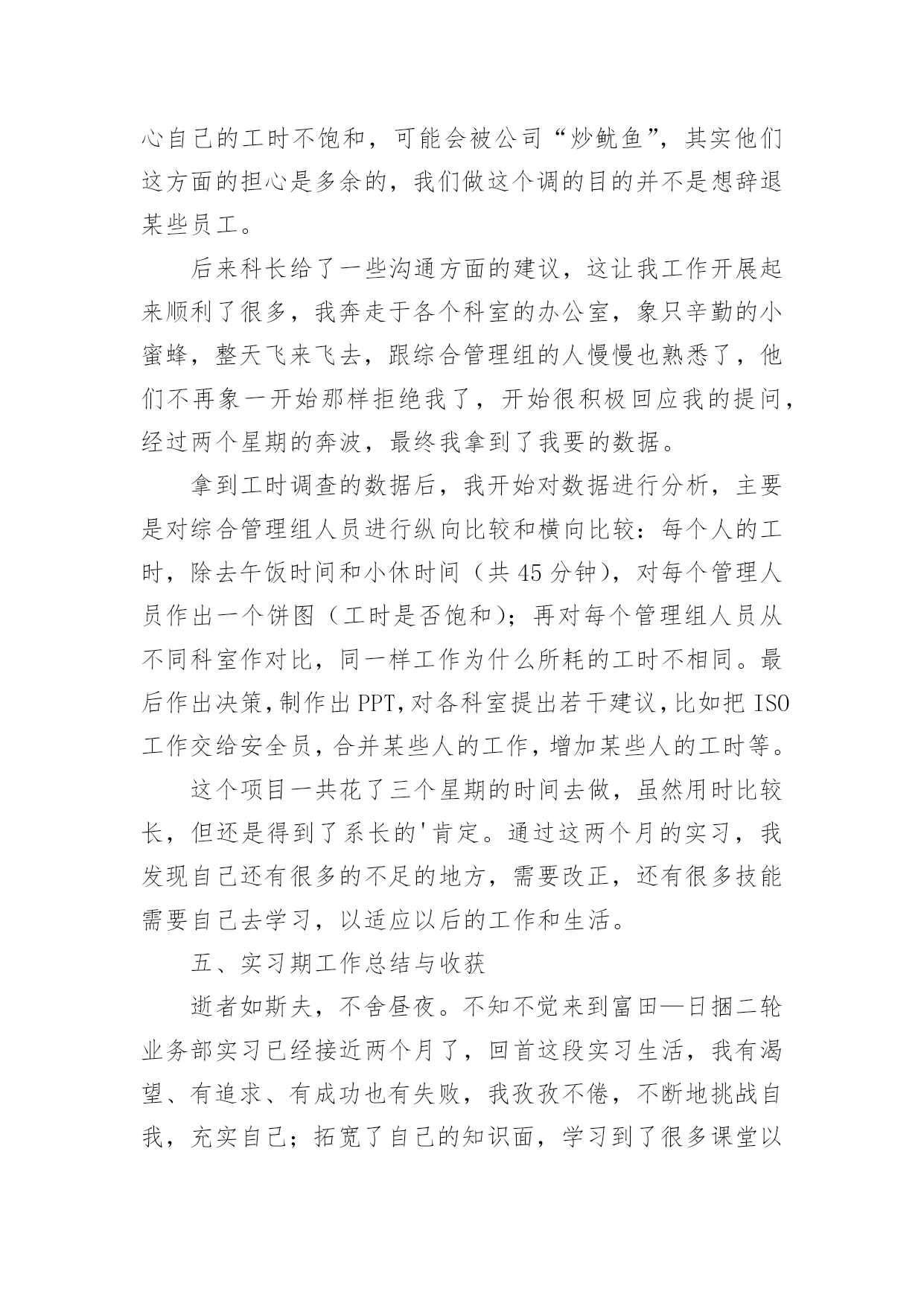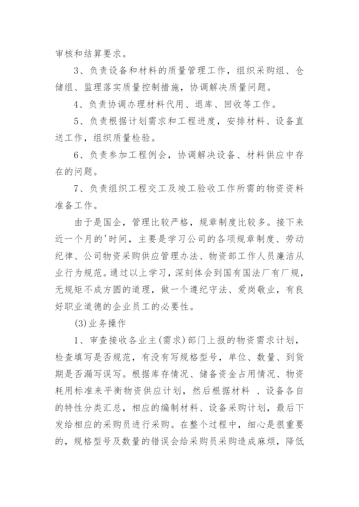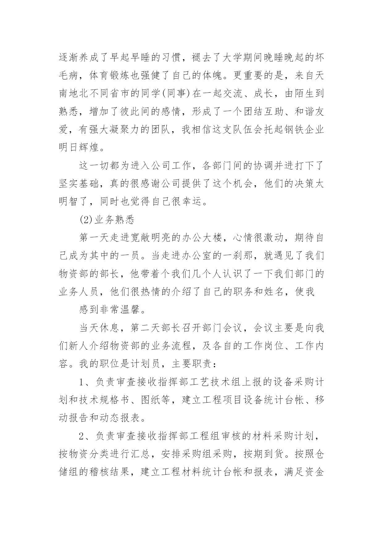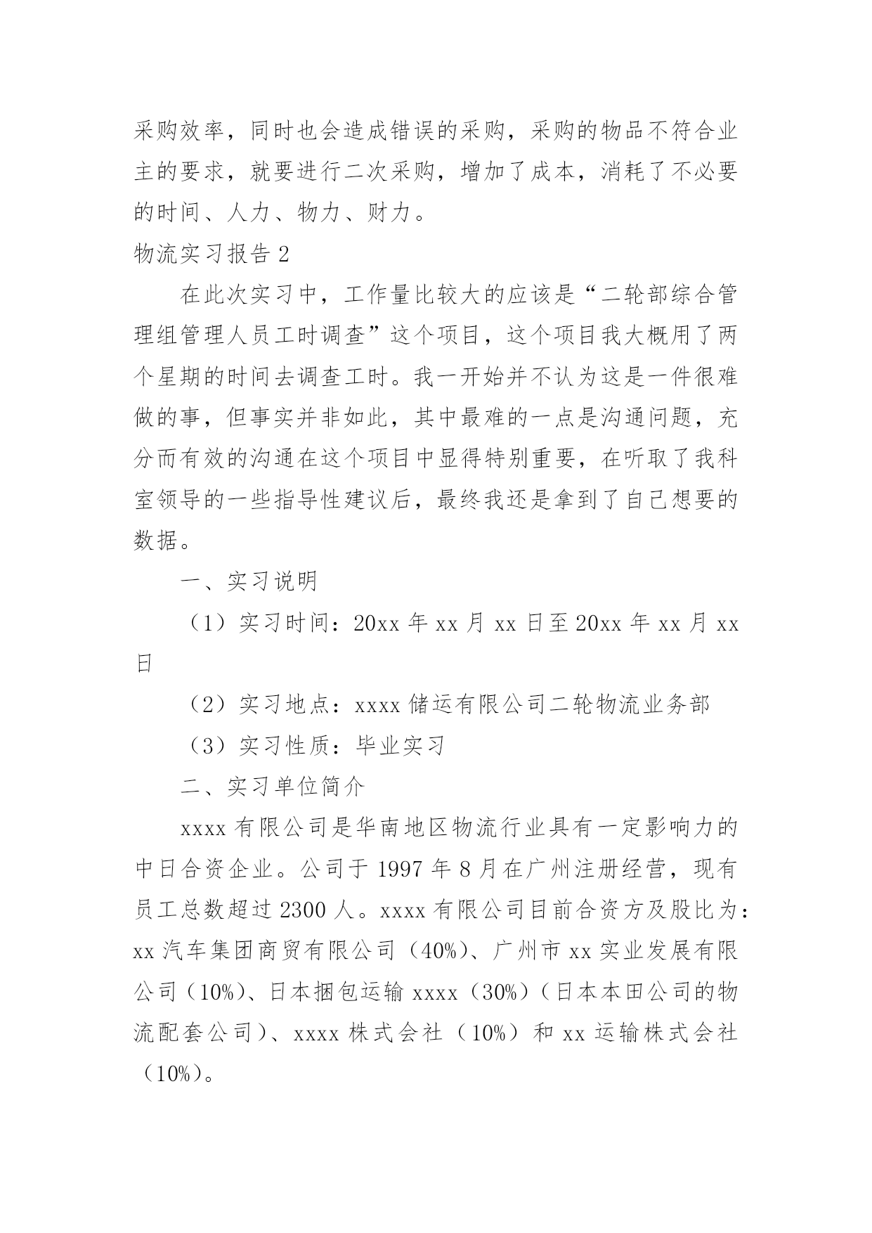 物流实习报告物流实习报告(15篇)在现实生活中,报告使用的次数愈发增长,报告具有成文事后性的特点。那么一般报告是怎么写的呢?以下是小编收集整理的物流实习报告,希望能够帮助到大家。物流实习报告1学生姓名:饶兴咏学号:年级、专业、班级:20xx级物流管理(1)班实习时间:20xx年3月1日~20xx年5月1日实习单位:安徽首矿大昌金属材料有限公司实习指导教师(学校及实习所在单位):殷治平陈同盛实习成绩:实习指导教师实习及成绩评定毕业实习报告一、实习目的毕业实习是大学教育阶段最后一个极为重要的实践性教学环节。通过实习,一方面,使自己接触实际,了解社会,增强劳动观点和事业心、责任感;第二方面,使自己在社会实践中接触与物流专业相关的实际工作,增强感性认识,培养和锻炼自己综合运用所学的基础理论、基本技能和专业知识,提高独立分析和解决实际问题的能力,把理论和实践结合起来,提高实践动手能力,为毕业后走上工作岗位打下一定的基础。二、实习时间、实习单位及本人实习具体岗位与负责事务实习时间:20xx年3月1日至20xx年5月1日实习单位:安徽首矿大昌金属材料有限公司具体岗位:计划员负责事务:负责公司物资供应计划管理与物资质量管理三、实习主要内容(一)实习单位简介1、公司规模及目标由我国著名企业首钢总公司与合作伙伴安徽大昌矿业集团共同投资组建的合资公司,公司注册资本金3亿元,由首钢进行控股,公司正式投入生产运营后,总产值可达百亿元以上。是首钢在华北、西北、西南、东北地区相继实施钢铁业兼并重组后,在华东地区建设的又一重要铁矿石深加工基地。在首钢与安徽霍邱大昌集团的共同努力下,发挥首钢的技术、设备、人才和管理优势,按照新一代工厂的新功能、新流程、新技术要求,以优质钢生产为平台,打造成为具有国内先进水平的精品棒线材生产基地和自主创新的示范工厂,成为节能减排和发展循环经济的标志性工厂。2、主要产业安徽首矿大昌金属材料有限公司位于安徽省六安市霍邱经济开发区,占地面积近8000亩,总生产规模600万t/a的项目,采用统一规划,分三期实施建设。预计三期工程完成后,最终规模为每年产615万t钢材,约占安徽省全年钢产量的19%,其中线材190万t,棒材180万t,热轧板245万t,年产值可达100亿元以上。(二)实习具体过程(1)业前培训在正式上岗前,被公司安排在一所高中参加为期12天的入职培训,培训的项目主要是军训和公司概况。当接到这一指令后,41名首批管理员工都感到很愕然,不可思议,都快毕业了还搞什么军训,很多人都惧怕军训的辛苦,想想大一时军训的残酷有些畏惧,我个人觉得这纯粹是浪费时间,12天时间浪费在军训上还不如提前上岗,早点熟悉公司环境和自己的岗位,但后来发现自己错得很离谱。接下来的时光是魔鬼般的训练,每天早上07:30准时的出现在操场上,跑完了3000米就稍息、立正、后列……休息时就在报告厅里听人事部领导介绍公司公司的历史、现状、发展目标及相关的制度,组织安全知识与劳动纪律培训,与我们谈心,解除身处异地的不适。终于培训结束了,李董事长亲自检阅我们的军训效果,想不到领导如此的关心我们。座谈会上董事长一一与我们交谈,聆听我们的军训体会,当我向董事长陈述的时候,我才发现自己在军训期间学到了很多课外知识。十几天的训练,逐渐养成了早起早睡的习惯,褪去了大学期间晚睡晚起的坏毛病,体育锻炼也强健了自己的体魄。更重要的是,来自天南地北不同省市的同学(同事)在一起交流、成长,由陌生到熟悉,增加了彼此间的感情,形成了一个团结互助、和谐友爱,有强大凝聚力的团队,我相信这支队伍会托起钢铁企业明日辉煌。这一切都为进入公司工作,各部门间的协调并进打下了坚实基础,真的很感谢公司提供了这个机会,他们的决策太明智了,同时也觉得自己很幸运。(2)业务熟悉第一天走进宽敞明亮的办公大楼,心情很激动,期待自己成为其中的一员。当走进办公室的一刹那,就遇见了我们物资部的部长,他带着个我们几个人认识了一下我们部门的业务人员,他们很热情的介绍了自己的职务和姓名,使我感到非常温馨。当天休息,第二天部长召开部门会议,会议主要是向我们新人介绍物资部的业务流程,及各自的工作岗位、工作内容。我的职位是计划员,主要职责:1、负责审查接收指挥部工艺技术组上报的设备采购计划和技术规格书、图纸等,建立工程项目设备统计台帐、移动报告和动态报表。2、负责审查接收指挥部工程组审核的材料采购计划,按物资分类进行汇总,安排采购组采购,按期到货。按照仓储组的稽核结果,建立工程材料统计台帐和报表,满足资金审核和结算要求。3、负责设备和材料的质量管理工作,组织采购组、仓储组、监理落实质量控制措施,协调解决质量问题。4、负责协调办理材料代用、退库、回收等工作。5、负责根据计划需求和工程进度,安排材料、设备直送工作,组织质量检验。6、负责参