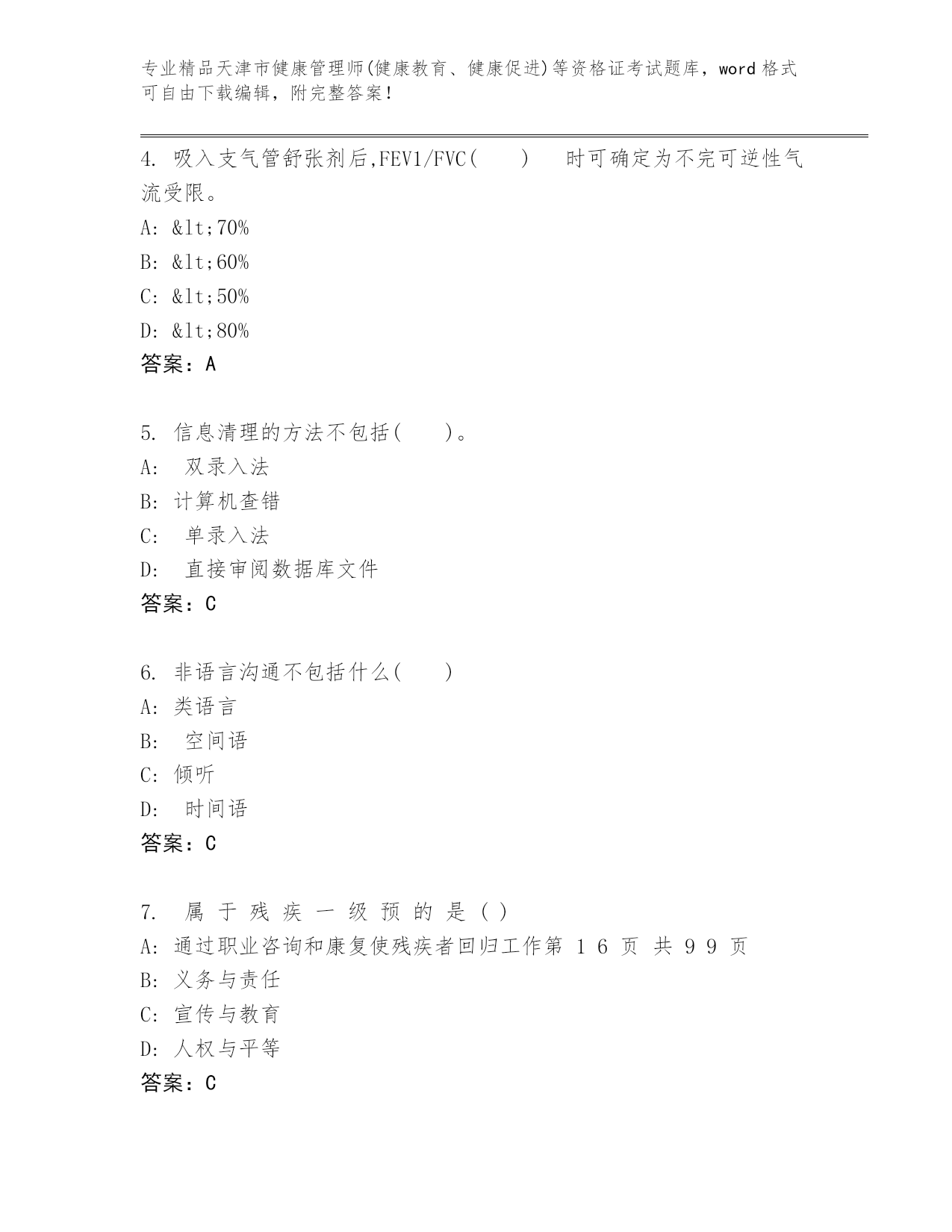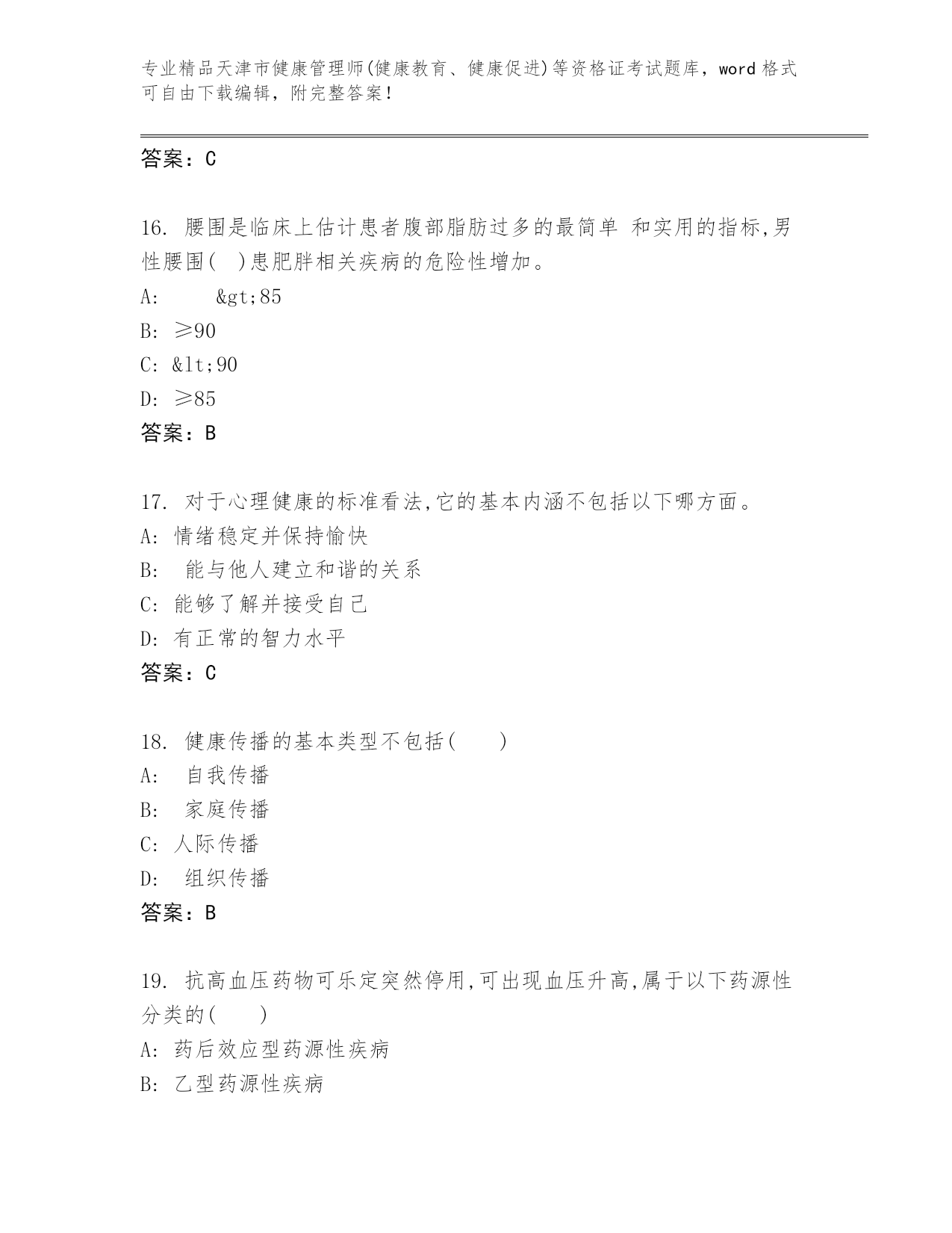 最新天津市健康管理师(健康教育、健康促进)等资格证考试题库【培优A卷】