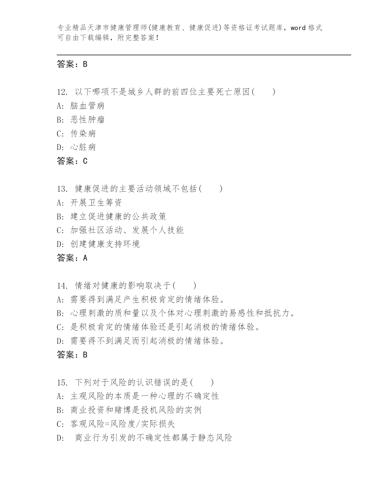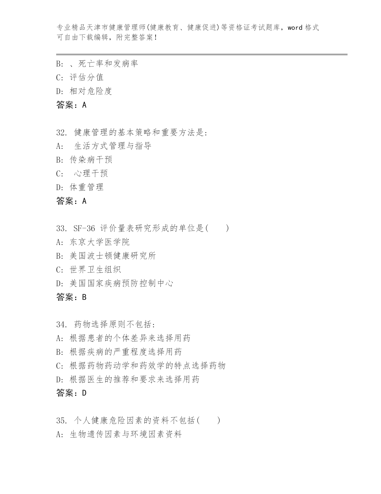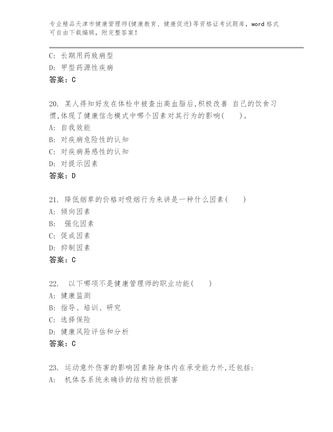 最新天津市健康管理师(健康教育、健康促进)等资格证考试题库【培优A卷】.docx