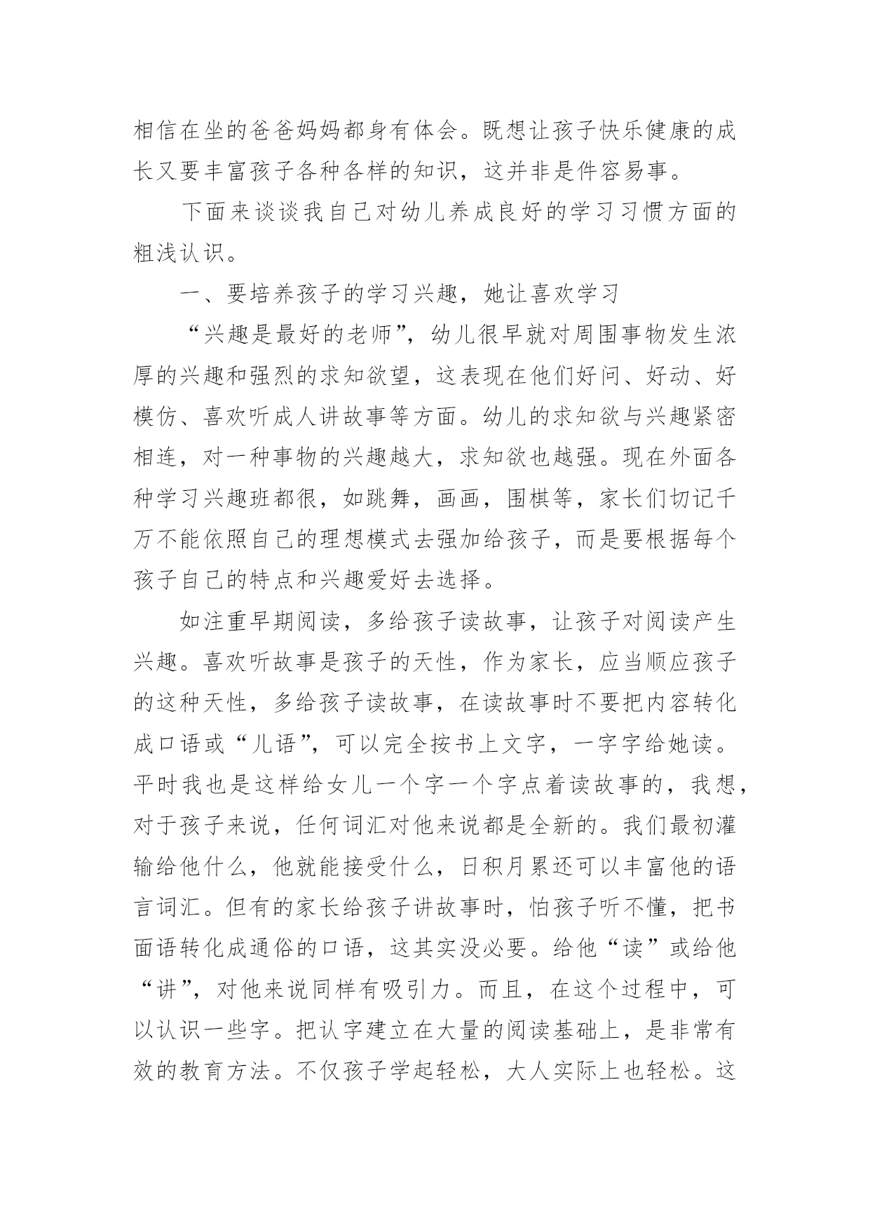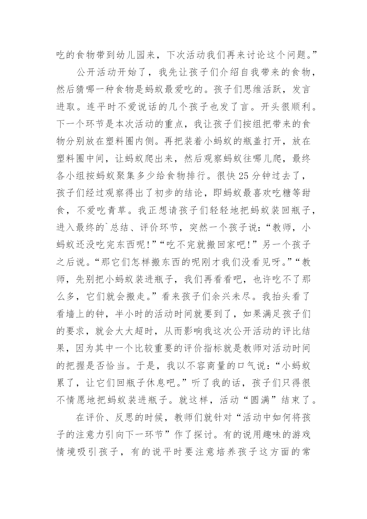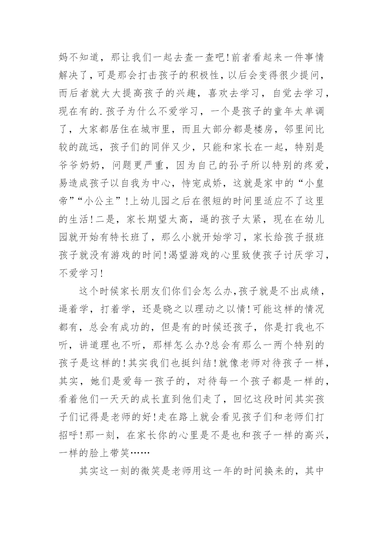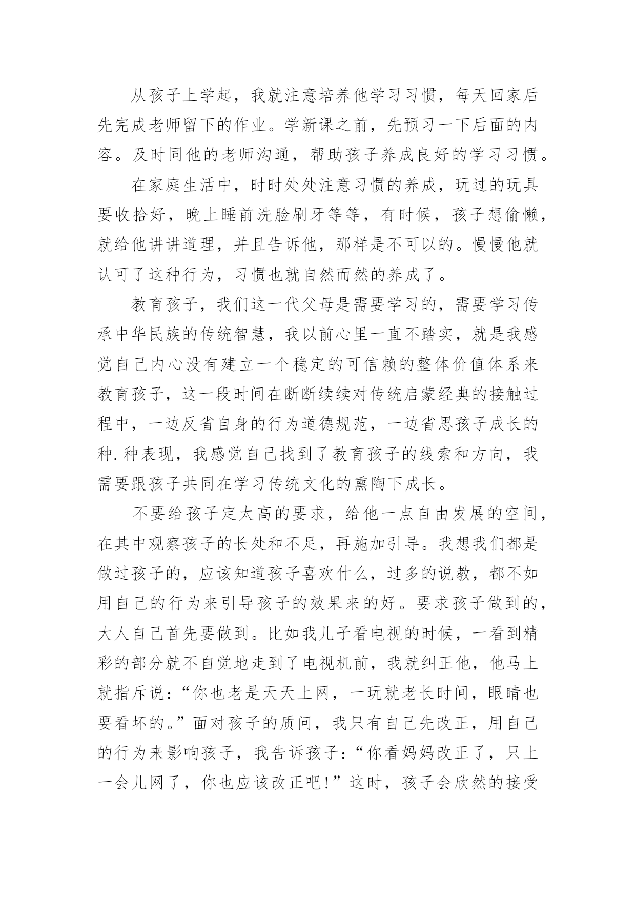 幼儿教育的心得体会当我们受到启发,对生活有了新的感悟时,往往会写一篇心得体会,这么做可以让我们不断思考不断进步。怎样写好心得体会呢?以下是小编帮大家整理的幼儿教育的心得体会,欢迎阅读,希望大家能够喜欢。幼儿教育的心得体会1孩子的教育,每一个做父母的都有一肚子话要说,虽然家庭情况不同,教育方式也各有千秋,但目的都是希望自己的孩子能快快乐乐地健康成长。作为父母,我们究竟应该怎么教育孩子?我曾经为此买了很多的书,买了很多的光盘,请教了许多同事……孩子一天天长大,成绩也渐趋稳定,可是我心里依然不敢有丝毫的松懈。好的学习习惯的养成是非常必要的,它应该体现在生活的细节中。我们家每个人都有爱看书的习惯,孩子小的时候早早开发锻炼他的识字能力,为他今后的学习打下了非常好的基础。孩子大一点后,我们就帮孩子养成读书的习惯,让他每天都抽出一点时间来看书。在我们家经常可以看到这样一幅画面:一家三口人各自捧着自己的书在看。而且,只要有机会就从书店买各种图书给他阅读,“六一”儿童节、春节的礼物都是各类的有趣的或者有益的书籍。时间长了,孩子喜欢上了读书。也养成了良好的`读书习惯。对学习也起到了很大的促进作用。从孩子上学起,我就注意培养他学习习惯,每天回家后先完成老师留下的作业。学新课之前,先预习一下后面的内容。及时同他的老师沟通,帮助孩子养成良好的学习习惯。在家庭生活中,时时处处注意习惯的养成,玩过的玩具要收拾好,晚上睡前洗脸刷牙等等,有时候,孩子想偷懒,就给他讲讲道理,并且告诉他,那样是不可以的。慢慢他就认可了这种行为,习惯也就自然而然的养成了。教育孩子,我们这一代父母是需要学习的,需要学习传承中华民族的传统智慧,我以前心里一直不踏实,就是我感觉自己内心没有建立一个稳定的可信赖的整体价值体系来教育孩子,这一段时间在断断续续对传统启蒙经典的接触过程中,一边反省自身的行为道德规范,一边省思孩子成长的种.种表现,我感觉自己找到了教育孩子的线索和方向,我需要跟孩子共同在学习传统文化的熏陶下成长。不要给孩子定太高的要求,给他一点自由发展的空间,在其中观察孩子的长处和不足,再施加引导。我想我们都是做过孩子的,应该知道孩子喜欢什么,过多的说教,都不如用自己的行为来引导孩子的效果来的好。要求孩子做到的,大人自己首先要做到。比如我儿子看电视的时候,一看到精彩的部分就不自觉地走到了电视机前,我就纠正他,他马上就指斥说:“你也老是天天上网,一玩就老长时间,眼睛也要看坏的。”面对孩子的质问,我只有自己先改正,用自己的行为来影响孩子,我告诉孩子:“你看妈妈改正了,只上一会儿网了,你也应该改正吧!”这时,孩子会欣然的接受你的建议。为了开阔视野,培养孩子多方面的兴趣。在课余时间,给他报名参加了书法班。到现在学了几年了,他很有兴趣并取得了很好的成绩。孩子喜欢手工制作,我就给他提供材料,给他尽可能多的帮助。有时候,看他煞有介事地做成一个虽然不很精彩的“作品”,沾沾自喜地给我们看,神情中充满了自豪。看到孩子敢于动手去做并从手工制作的过程中得到了快乐,我从心底里感到欣慰。此外,我们还喜欢让孩子参加一些体育锻炼。孩子本来就爱跑爱跳,让他多锻炼,既强身健体,又愉悦心情,何乐而不为呢?总之,我们希望孩子不光是埋头学习的孩子,我们更希望他好好学习的同时还能有自己的乐趣,是一个热爱生活的人。幼儿教育的心得体会2今日幼儿园半日开放,我在许多家长面前组织活动,说实在话,心里有一点点紧张。家长们准时来到活动室,我和他们一一打着招呼,他们的到来一点也没影响孩子们,我内心的担心看来是剩余的,他们像往常一样进入区角活动,“教师,我的鞋带开了;教师,我的棋子少了一个;教师,家家抢我的玩具。”我像平时一样处理着孩子的“案子”。看家长都到齐了,我让孩子们围在我的身边,做了一个拍手游戏,等孩子们安静下来。我把花费了两天来精心制作的.课件逐一展示出来,细心的给孩子讲解,让他们去观察每张图片,引导他们说出图形的排列顺序,勇敢的孩子到前面帮教师把图形排列完整。大部分幼儿都把小手举得高高的,想在家长面前表现一下自我很棒,我一一奖励了他们,仅有坐在最终的悠悠老是不举手,她妈妈急的脸都红了,“这孩子,真烦人,见了生人就哑巴。”我看着泪水在悠悠的眼圈里打转,就拿着一颗五角星走过去,趴在悠悠的耳边悄悄对她说“不要怕,教师相信你,你是最棒的。”在我的鼓励下,悠悠最终举起了小手。接下来我的几个问题悠悠也都举了手,我趁机让小朋友们都棒了棒他。这节课孩子们听得很认真,课堂气氛很活跃,有的妈妈还和孩子一齐举手,短短的三十分钟,一会儿就过去了。第二节课是亲子游戏,当我告诉大家欣欣小朋友的妈妈有事,我和她一组时,胆小的悠悠扔下自我的妈妈,抱着球跑过来:“教师,你和我一组吧!”,“教师,你也和我一组吧!”孩子们争着、吵着,一双双小手拉扯着我的衣服,“