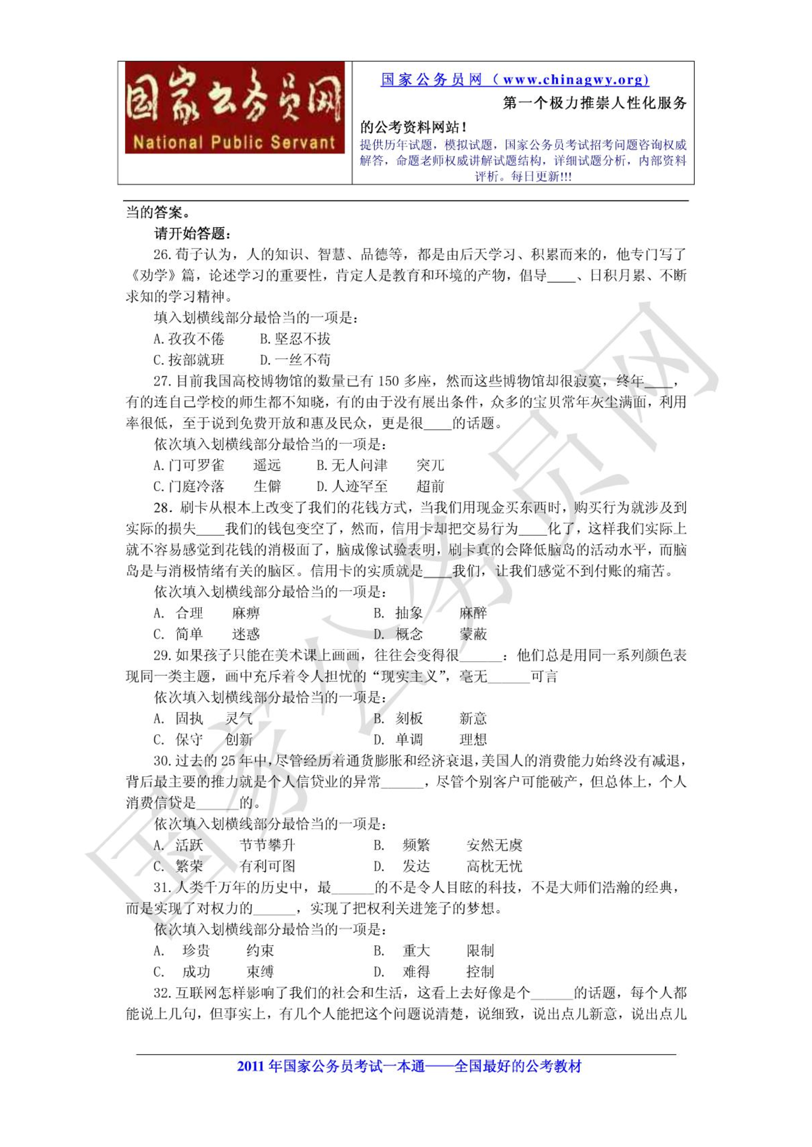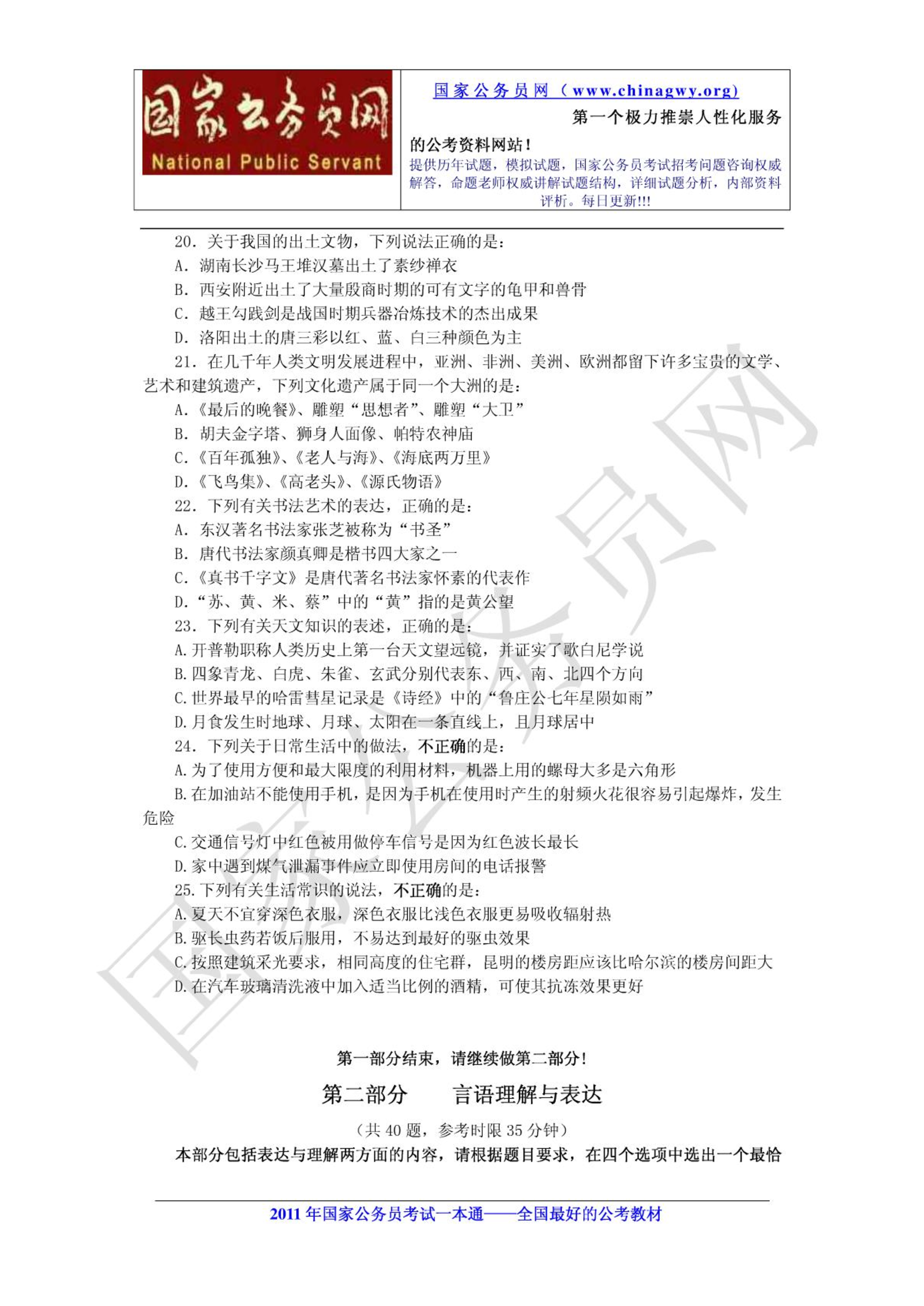 2011国家公务员考试行政职业能力测验真题(完整版)