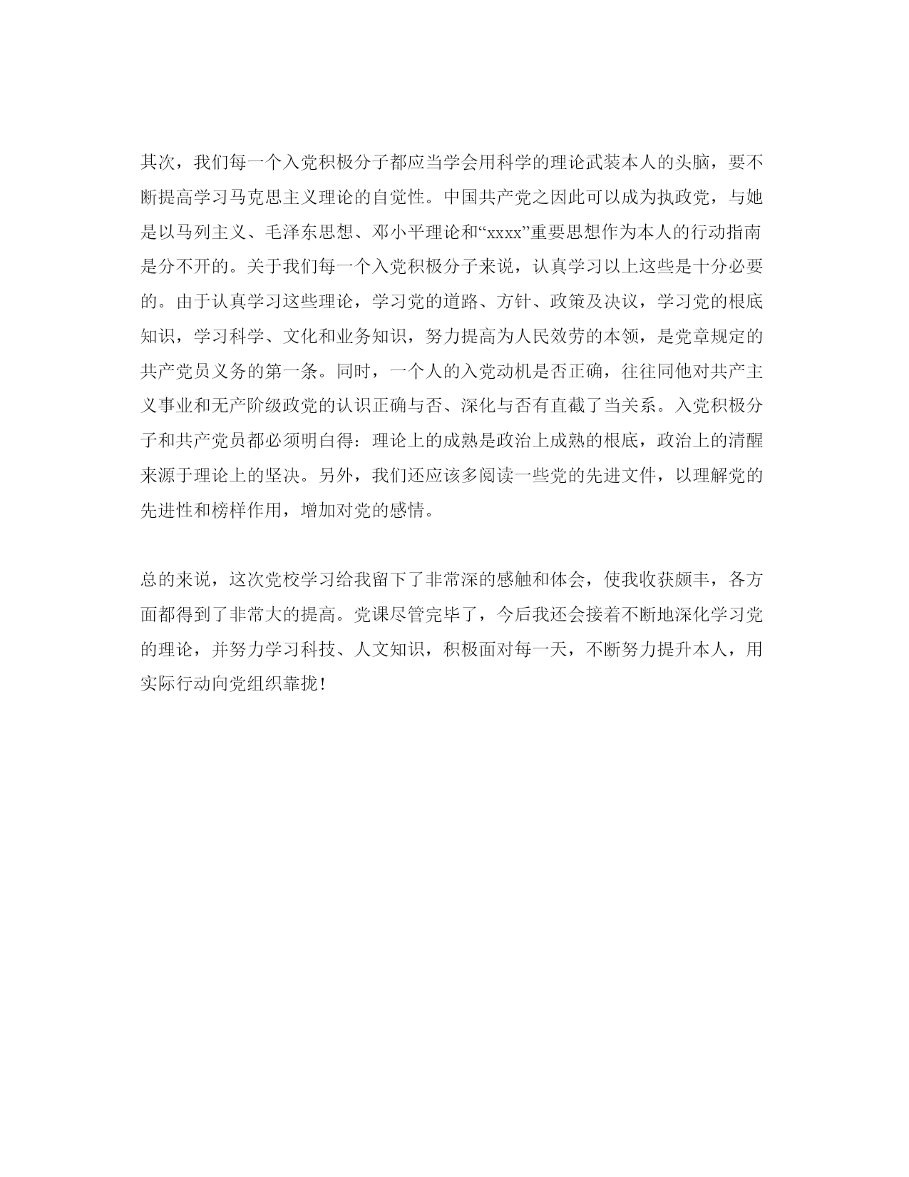党校学习自我参考总结(通用)光阴飞逝。转眼间,我在湖南师范大学第38期党校的学习就要完毕。在这短短一个多月的时间里,通过系统学习,我理解了党的历史、性质、奋斗目的、主旨、组织制度和组织原则等根本知识,提高了对党的认识水平,我更进一步地理解了党的根本道路、方针、政策的真正含义。同时,我还更清晰地认识到了我们的党是一个什么样的党,共产党员应该具备什么条件,如何努力才能真正成为一名合格的共产党员。以下确实是我在党校学习中的几点心得体会:首先,我觉得,每一个入党积极分子都应当端正本人的入党动机。非常早往常,我就梦想着参加中国共产党,成为一名荣耀的共产党员。在我努力向党组织靠拢的过程中,曾有人劝我说在如今这种情势下入党实在没什么意义。但我一直深信我们的党是一个各方面都非常先进、一个全心全意为人民效劳的执政党,她是我要跟随一生的伟大的党。通过这一期的党校学习,我更坚决了本人的信念和入党的决心。入党是一种政治选择。中国有不少的政党,各有各的纲领,但只有中国共产党领导我们走到了今天,她的历史是伟大的、可歌可泣的。尽管她也曾有过错误,但她有勇气正视和改正错误来进一步完善本人。正是由于如此,让我对她有了一份认同感,她是一个值得跟随的党、有生命力的组织。我选择了她,并诚挚地希望她接纳我。在现实生活中,每个要求入党的人,其入党动机并不一样。他们有些是为中华民族的伟大复兴而要求入党,有些是想要更好地实现自我价值而要求入党;同时也有一些是想要在人前夸耀,把可以入党看作是升官发财的手段。面对各种各样的入党动机,我们应当抵抗那些不正确的,努力端正本人的入党动机,坚持在思想上入党。通过这次学习,我的入党动机得到了净化,也更明晰、明确了。其次,我们每一个入党积极分子都应当学会用科学的理论武装本人的头脑,要不断提高学习马克思主义理论的自觉性。中国共产党之因此可以成为执政党,与她是以马列主义、毛泽东思想、邓小平理论和“xxxx”重要思想作为本人的行动指南是分不开的。关于我们每一个入党积极分子来说,认真学习以上这些是十分必要的。由于认真学习这些理论,学习党的道路、方针、政策及决议,学习党的根底知识,学习科学、文化和业务知识,努力提高为人民效劳的本领,是党章规定的共产党员义务的第一条。同时,一个人的入党动机是否正确,往往同他对共产主义事业和无产阶级政党的认识正确与否、深化与否有直截了当关系。入党积极分子和共产党员都必须明白得:理论上的成熟是政治上成熟的根底,政治上的清醒来源于理论上的坚决。另外,我们还应该多阅读一些党的先进文件,以理解党的先进性和榜样作用,增加对党的感情。总的来说,这次党校学习给我留下了非常深的感触和体会,使我收获颇丰,各方面都得到了非常大的提高。党课尽管完毕了,今后我还会接着不断地深化学习党的理论,并努力学习科技、人文知识,积极面对每一天,不断努力提升本人,用实际行动向党组织靠拢!