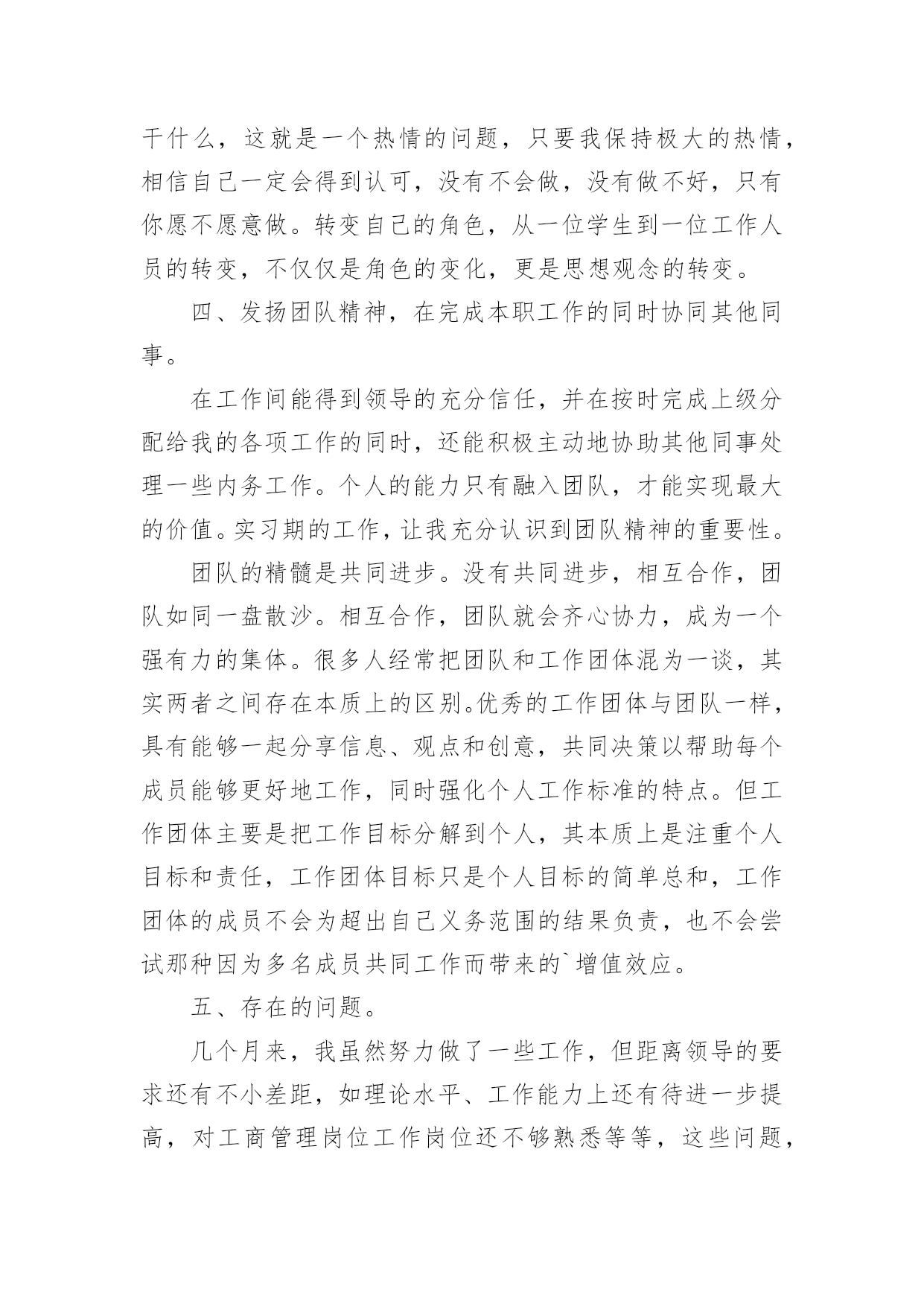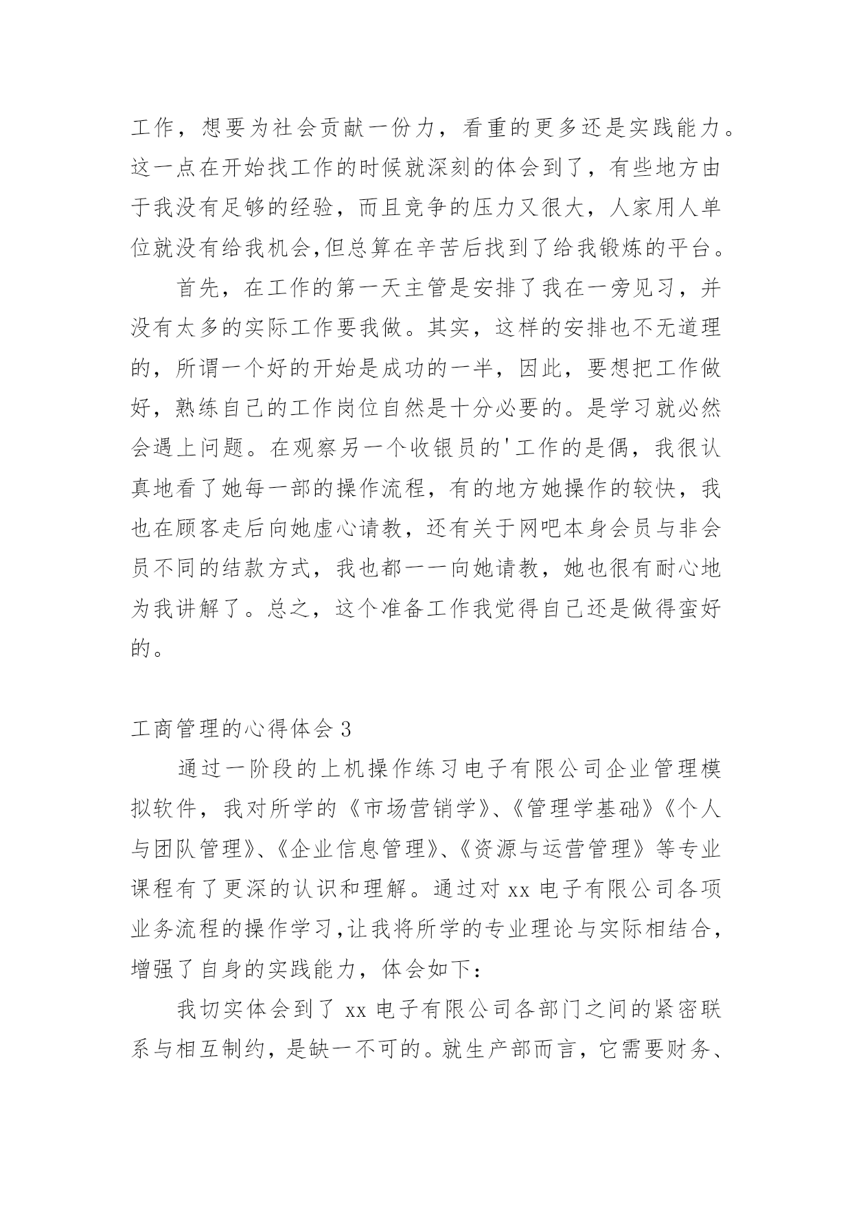 工商管理的心得体会我们得到了一些心得体会以后,不妨将其写成一篇心得体会,让自己铭记于心,如此可以一直更新迭代自己的想法。那么心得体会怎么写才能感染读者呢?以下是小编帮大家整理的工商管理的心得体会,供大家参考借鉴,希望可以帮助到有需要的朋友。工商管理的心得体会1转眼之间,两个月的实习期即将结束,回顾这两个月的实习工作,感触很深,收获颇丰。这两个月,在领导和同事们的悉心关怀和指导下,通过我自身的不懈努力,我学到了人生难得的工作经验和社会见识。我将从以下几个方面总结工商管理岗位工作实习这段时间自己体会和心得:一、努力学习,理论结合实践,不断提高自身工作能力。在工商管理岗位工作的实习过程中,我始终把学习作为获得新知识、掌握方法、提高能力、解决问题的一条重要途径和方法,切实做到用理论武装头脑、指导实践、推动工作。思想上积极进取,积极的把自己现有的知识用于社会实践中,在实践中也才能检验知识的有用性。在这两个月的实习工作中给我最大的感触就是:我们在学校学到了很多的理论知识,但很少用于社会实践中,这样理论和实践就大大的脱节了,以至于在以后的学习和生活中找不到方向,无法学以致用。同时,在工作中不断的学习也是弥补自己的不足的有效方式。信息时代,瞬息万变,社会在变化,人也在变化,所以你一天不学习,你就会落伍。通过这两个月的实习,并结合工商管理岗位工作的实际情况,认真学习的工商管理岗位工作各项政策制度、管理制度和工作条例,使工作中的困难有了最有力地解决武器。通过这些工作条例的学习使我进一步加深了对各项工作的理解,可以求真务实的开展各项工作。二、围绕工作,突出重点,尽心尽力履行职责。在工商管理岗位工作中我都本着认真负责的态度去对待每项工作。虽然开始由于经验不足和认识不够,觉得在工商管理岗位工作中找不到事情做,不能得到锻炼的目的,但我迅速从自身出发寻找原因,和同事交流,认识到自己的不足,以至于迅速的转变自己的角色和工作定位。为使自己尽快熟悉工作,进入角色,我一方面抓紧时间查看相关资料,熟悉自己的工作职责,另一方面我虚心向领导、同事请教使自己对工商管理岗位工作的情况有了一个比较系统、全面的认知和了解。根据工商管理岗位工作的实际情况,结合自身的优势,把握工作的重点和难三、转变角色,以极大的热情投入到工作中。从大学校门跨入到工商管理岗位工作岗位,一开始我难以适应角色的转变,不能发现问题,从而解决问题,认为没有多少事情可以做,我就有一点失望,开始的热情有点消退,完全找不到方向。但我还是尽量保持当初的那份热情,想干有用的事的态度,不断的做好一些杂事,同时也勇于协助同事做好各项工作,慢慢的就找到了自己的角色,明白自己该干什么,这就是一个热情的问题,只要我保持极大的热情,相信自己一定会得到认可,没有不会做,没有做不好,只有你愿不愿意做。转变自己的角色,从一位学生到一位工作人员的转变,不仅仅是角色的变化,更是思想观念的转变。四、发扬团队精神,在完成本职工作的同时协同其他同事。在工作间能得到领导的充分信任,并在按时完成上级分配给我的各项工作的同时,还能积极主动地协助其他同事处理一些内务工作。个人的能力只有融入团队,才能实现最大的价值。实习期的工作,让我充分认识到团队精神的重要性。团队的精髓是共同进步。没有共同进步,相互合作,团队如同一盘散沙。相互合作,团队就会齐心协力,成为一个强有力的集体。很多人经常把团队和工作团体混为一谈,其实两者之间存在本质上的区别。优秀的工作团体与团队一样,具有能够一起分享信息、观点和创意,共同决策以帮助每个成员能够更好地工作,同时强化个人工作标准的特点。但工作团体主要是把工作目标分解到个人,其本质上是注重个人目标和责任,工作团体目标只是个人目标的简单总和,工作团体的成员不会为超出自己义务范围的结果负责,也不会尝试那种因为多名成员共同工作而带来的`增值效应。五、存在的问题。几个月来,我虽然努力做了一些工作,但距离领导的要求还有不小差距,如理论水平、工作能力上还有待进一步提高,对工商管理岗位工作岗位还不够熟悉等等,这些问题,我决心实习报告在今后的工作和学习中努力加以改进和解决,使自己更好地做好本职工作。针对实习期工作存在的不足和问题,在以后的工作中我打算做好以下几点1、做好实习期工作计划,继续加强对工商管理岗位工作岗位各种制度和业务的学习,做到全面深入的了解各种制度和业务。2、以实践带学习全方位提高自己的工作能力。在注重学习的同时狠抓实践,在实践中利用所学知识用知识指导实践全方位的提高自己的工作能力和工作水平。3、踏实做好本职工作。在以后的工作和学习中,我将以更加积极的工作态度更加热情的工作作风把自己的本职工作做好。在工作中任劳任怨力争“没有最好只有更好”。4、继续在做好本职工作的同时,为单位做一些力所能及的工作,为单位做出自己应有的贡献。工商管