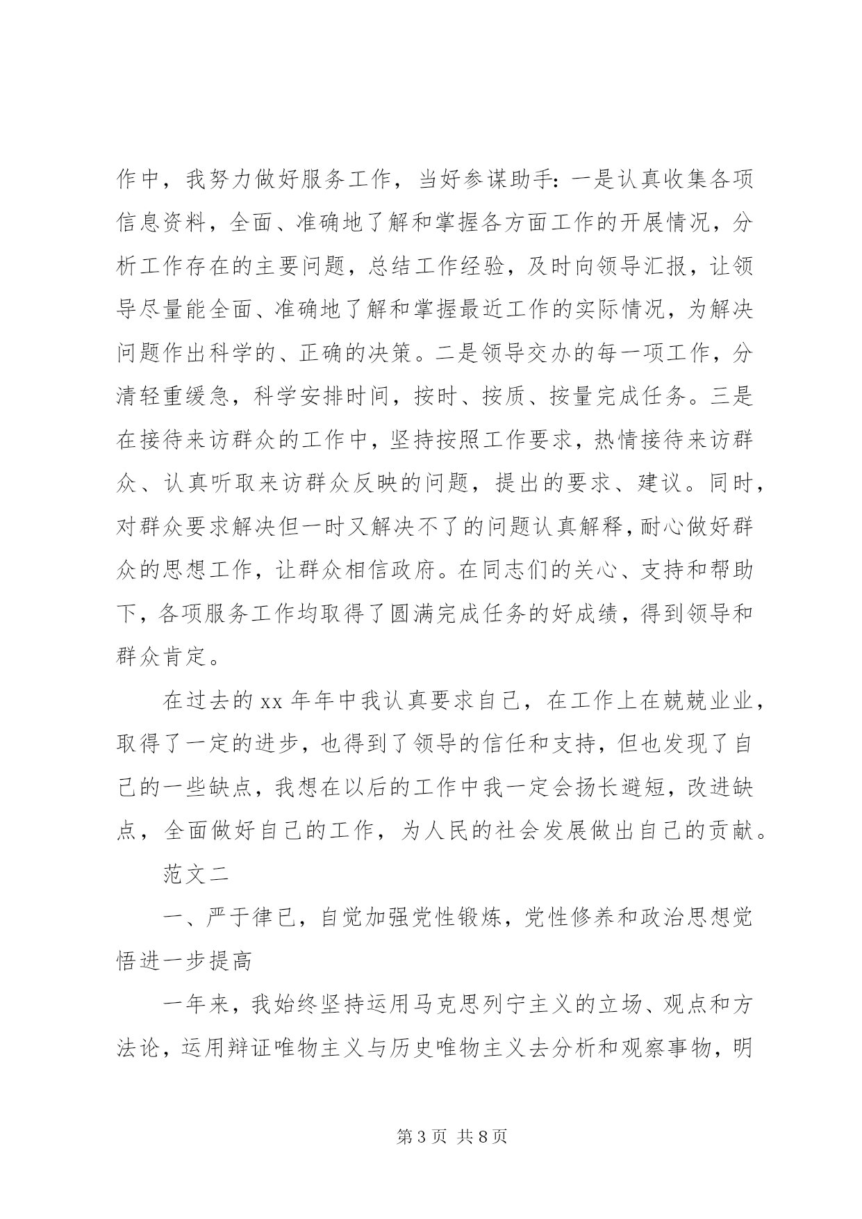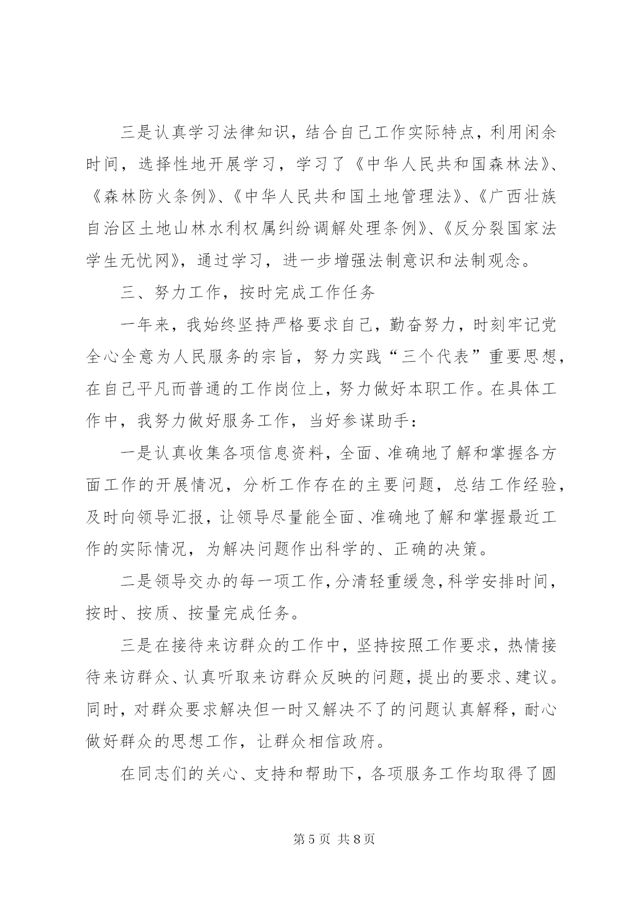 第PAGE\*Arabic\*MERGEFORMAT8页共NUMPAGES\*MERGEFORMAT8页公务员年终工作总结范文三篇又是一年总结时。以下是小编为大家整理的公务员年终工作总结范文,请大家参阅范文一20xx年,本人坚持以邓小平理论,“三个代表”和十八大重要思想为指导,自觉加强理论学习,认真学习党的十八大报告,刻苦钻研业务知识,努力提高理论知识和业务工作水平。遵纪守法,努力工作,认真完成领导交办的各项工作任务,在同志们的关心、支持和帮助下,思想、学习和工作等方面取得了新的进步。现将个人工作总结如下:一、自觉学习党的精神,用先进政治思想武装自己的头脑这一年来,我始终坚持运用马克思列宁主义的立场、观点和方法论,运用辩证唯物主义与历史唯物主义去分析和观察事物,明辨是非,坚持真理,坚持正确的世界观、人生观、价值观,用正确的世界观、人生观、价值观指导自己的学习、工作和生活实践,在思想上积极构筑抵御资产阶级民主和自由化、拜金主义、自由主义等一切腐朽思想侵蚀的坚固防线。热爱祖国,热爱中国共产党,热爱社会主义,拥护中国共产党的领导,拥护改革开放,坚信社会主义最终必然战胜资本主义,对社会主义充满必胜的信心。认真贯彻执行党的路线、方针、政策,为加快社会主义建设事业认真做好本职工作。工作积极主动,勤奋努力,不畏艰难,尽职尽责,在平凡的工作岗位上作出力所能及的贡献。二、强化理论和业务学习,不断提高自身综合素质我重视加强理论和业务知识学习,在工作中,坚持一边工作一边学习,不断提高自身综合素质水平。一是认真学习“三个代表”重要思想,深刻领会“三个代表”重要思想的科学内涵,增强自己实践“三个代表”重要思想的自觉性和坚定性;认真学习党的十六大报告及十六届三中、四中全会精神,自觉坚持以党的十六大为指导,为进一步加快完善社会主义市场经济体制,全面建设小康社会作出自己的努力。二是认真学习工作业务知识,重点学习公文写作及公文处理和电脑知识。在学习方法上做到在重点中找重点,抓住重点,并结合自己在公文写作及公文处理、电脑知识方面存在哪些不足之处,有针对性地进行学习,不断提高自己的办公室业务工作能力.三是认真学习法律知识,结合自己工作实际特点,利用闲余时间,选择性地开展学习,学习了《中华人民共和国森林法》、《森林防火条例》、《中华人民共和国土地管理法》、《xxxx区土地山林水利权属纠纷调解处理条例》、《反分裂国家法》,通过学习,进一步增强法制意识和法制观念。三、努力工作,按时完成工作任务一年来,我始终坚持严格要求自己,勤奋努力,时刻牢记党全心全意为人民服务的宗旨,努力实践“三个代表”重要思想,在自己平凡而普通的工作岗位上,努力做好本职工作。在具体工作中,我努力做好服务工作,当好参谋助手:一是认真收集各项信息资料,全面、准确地了解和掌握各方面工作的开展情况,分析工作存在的主要问题,总结工作经验,及时向领导汇报,让领导尽量能全面、准确地了解和掌握最近工作的实际情况,为解决问题作出科学的、正确的决策。二是领导交办的每一项工作,分清轻重缓急,科学安排时间,按时、按质、按量完成任务。三是在接待来访群众的工作中,坚持按照工作要求,热情接待来访群众、认真听取来访群众反映的问题,提出的要求、建议。同时,对群众要求解决但一时又解决不了的问题认真解释,耐心做好群众的思想工作,让群众相信政府。在同志们的关心、支持和帮助下,各项服务工作均取得了圆满完成任务的好成绩,得到领导和群众肯定。在过去的xx年年中我认真要求自己,在工作上在兢兢业业,取得了一定的进步,也得到了领导的信任和支持,但也发现了自己的一些缺点,我想在以后的工作中我一定会扬长避短,改进缺点,全面做好自己的工作,为人民的社会发展做出自己的贡献。范文二一、严于律已,自觉加强党性锻炼,党性修养和政治思想觉悟进一步提高一年来,我始终坚持运用马克思列宁主义的立场、观点和方法论,运用辩证唯物主义与历史唯物主义去分析和观察事物,明辨是非,坚持真理,坚持正确的世界观、人生观、价值观,用正确的世界观、人生观、价值观指导自己的学习、工作和生活实践,在思想上积极构筑抵御资产阶级民主和自由化、拜金主义、自由主义等一切腐朽思想侵蚀的坚固防线。热爱祖国,热爱中国共产党,热爱社会主义,拥护中国共产党的领导,拥护改革开放,坚信社会主义最终必然战胜资本主义,对社会主义充满必胜的信心。认真贯彻执行党的路线、方针、政策,为加快社会主义建设事业认真做好本职工作。工作积极主动,勤奋努力,不畏艰难,尽职尽责,在平凡的工作岗位上作出力所能及的贡献。二、强化理论和业务学习,不断提高自身综合素质我重视加强理论和业务知识学习,在工作中,坚持一边工作一边学习,不断提高自身综合素质水平。一是认真学习“三个代表”重要思想,深刻领会“三个代表”重要思想的科学内