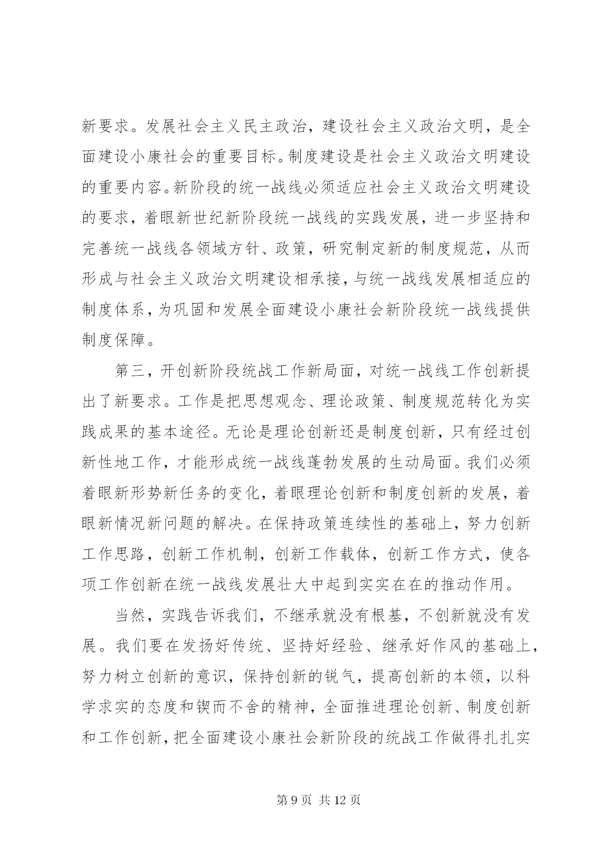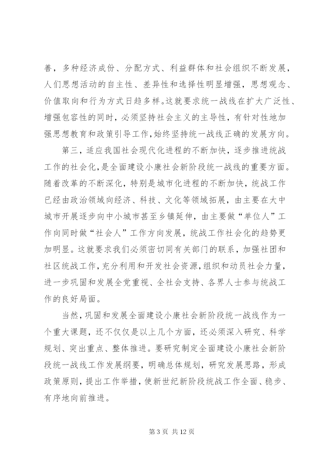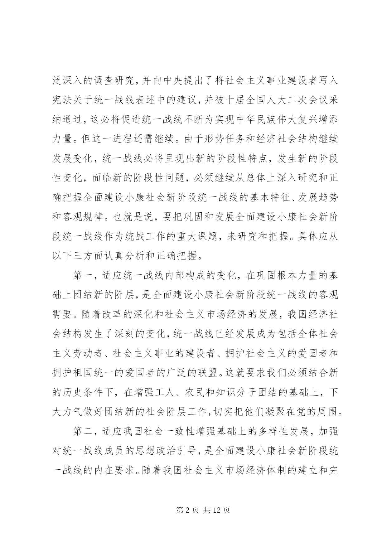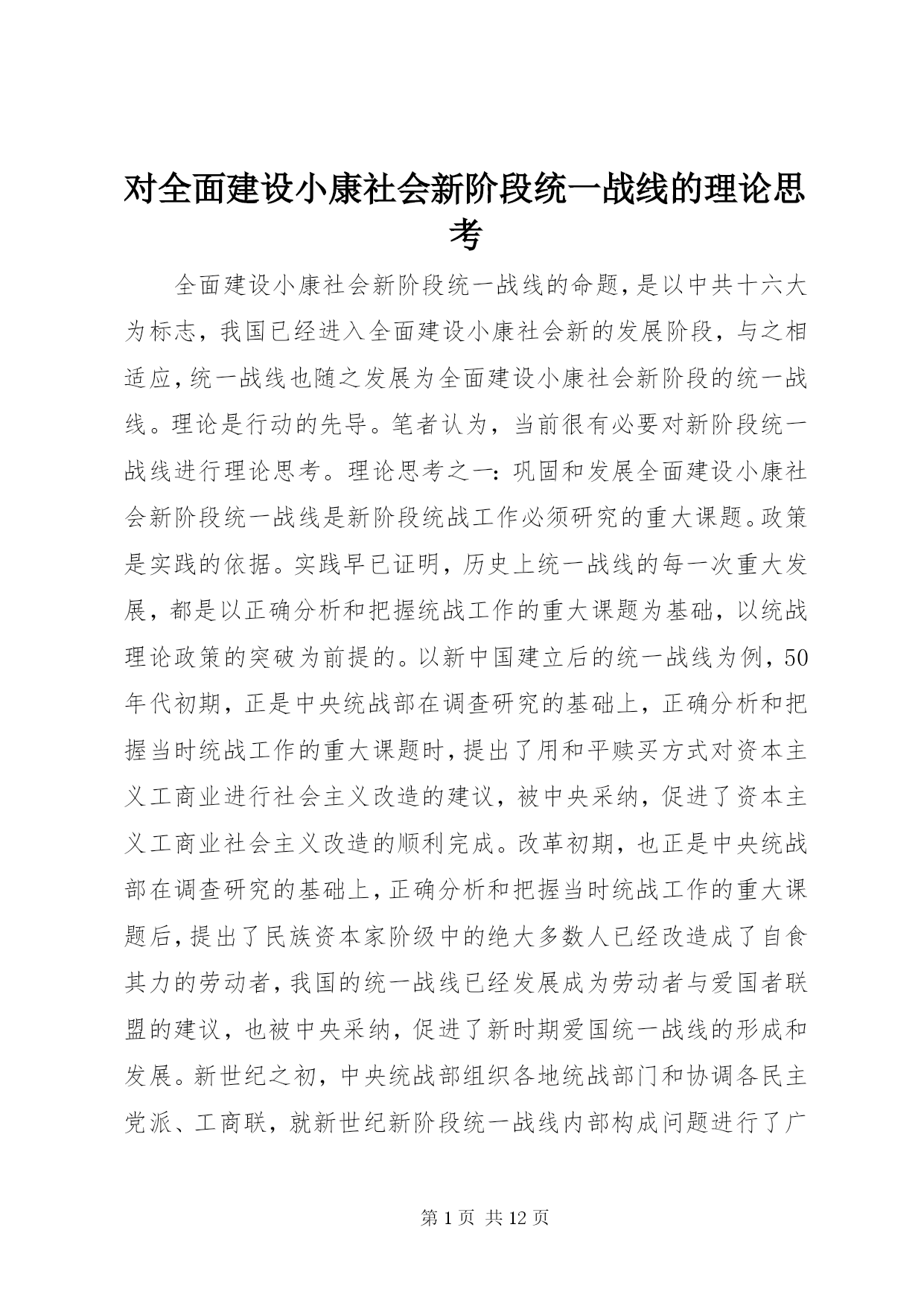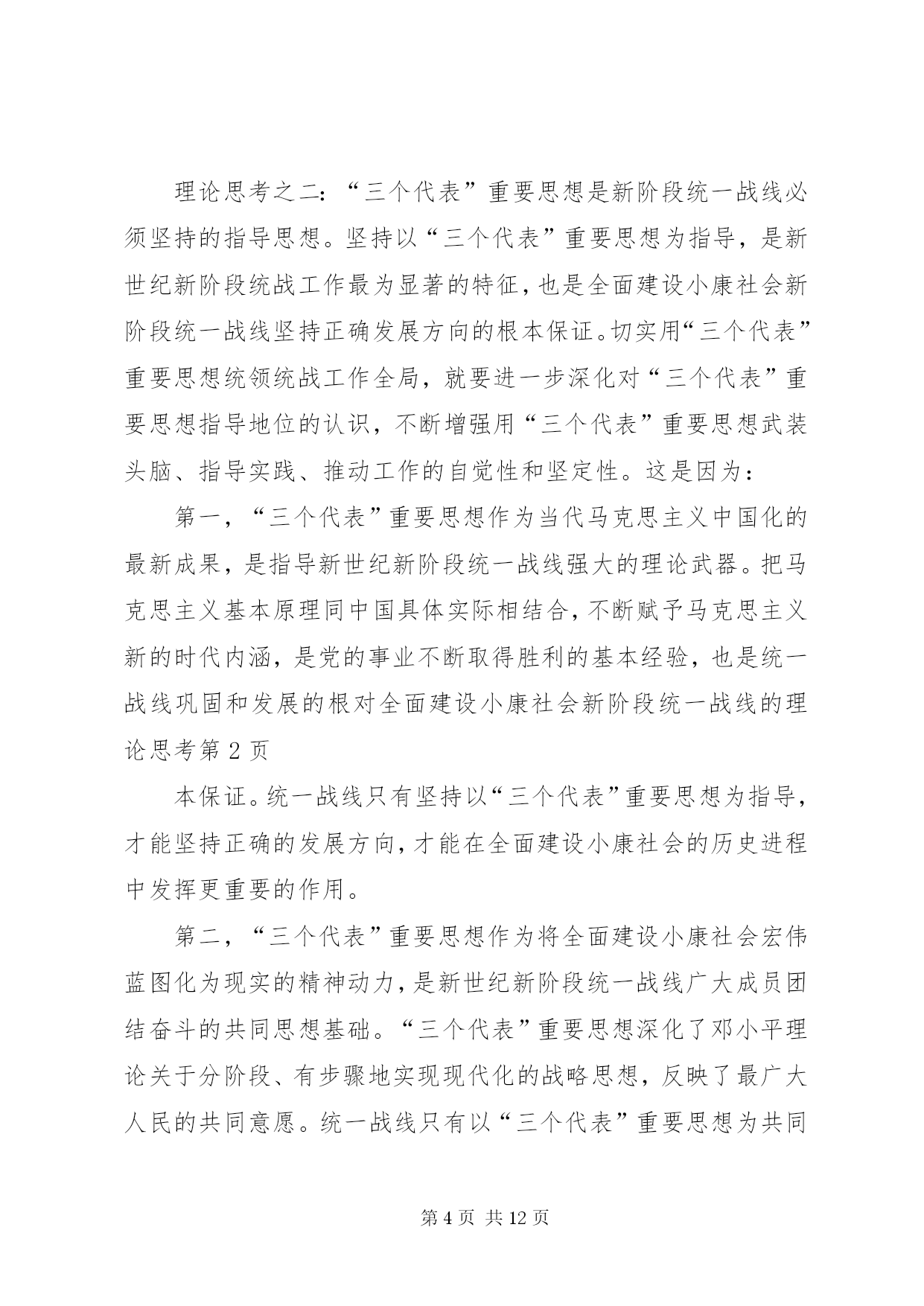 对全面建设小康社会新阶段统一战线的理论思考.docx