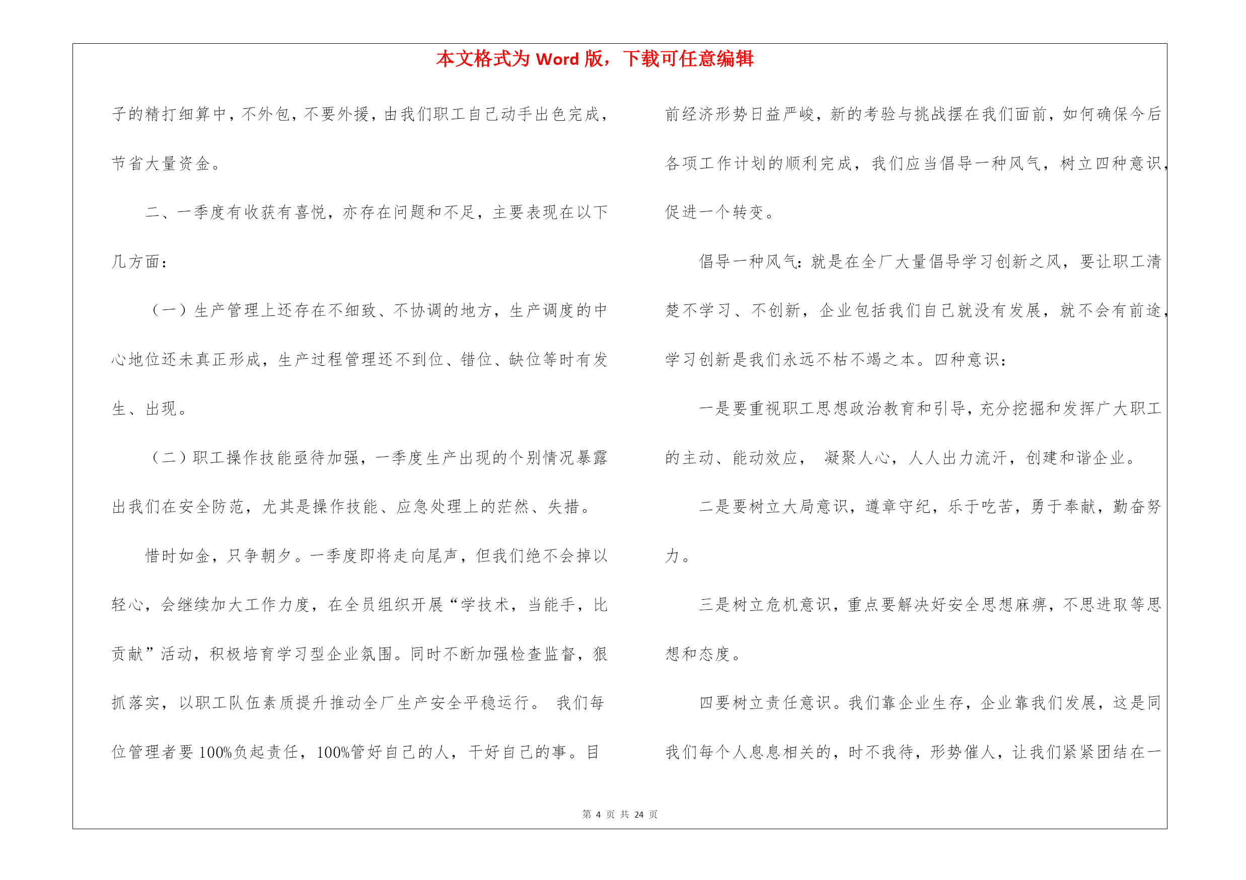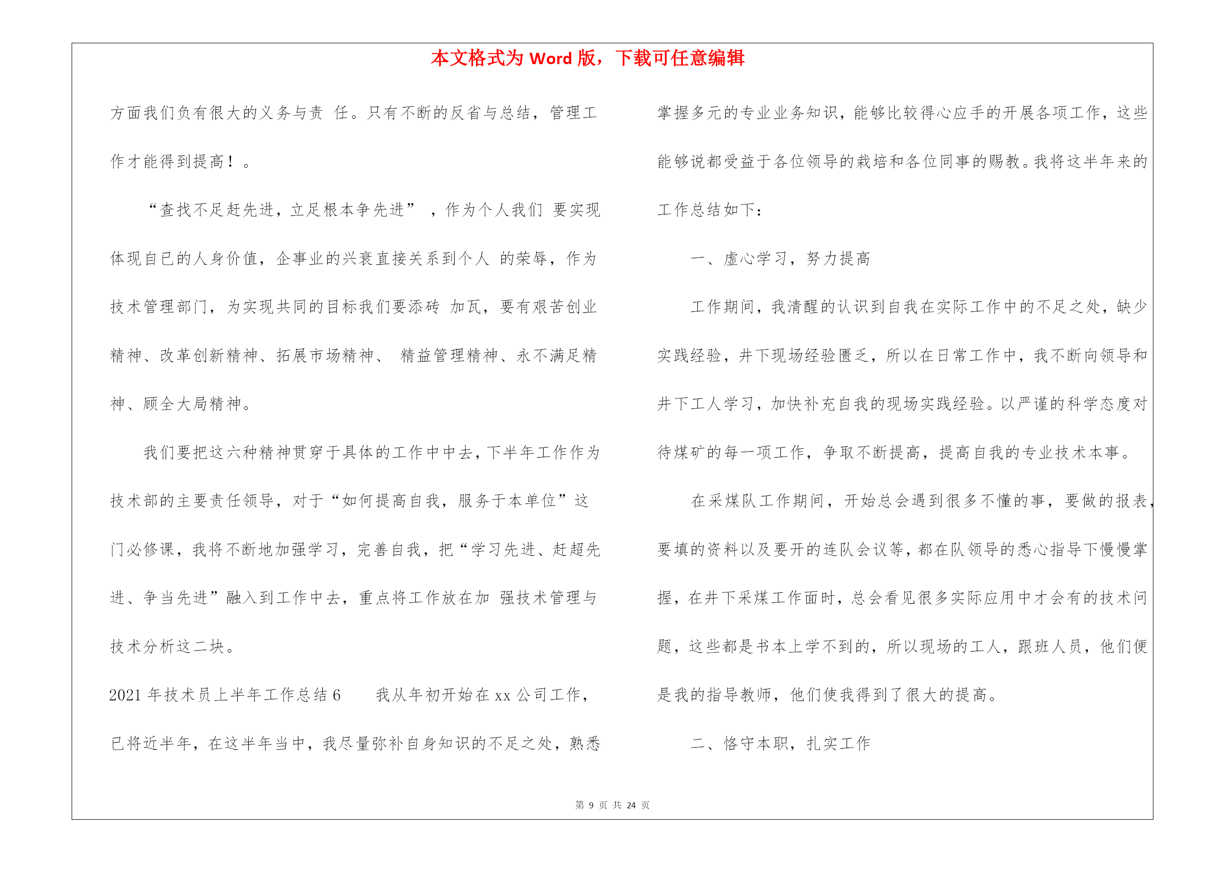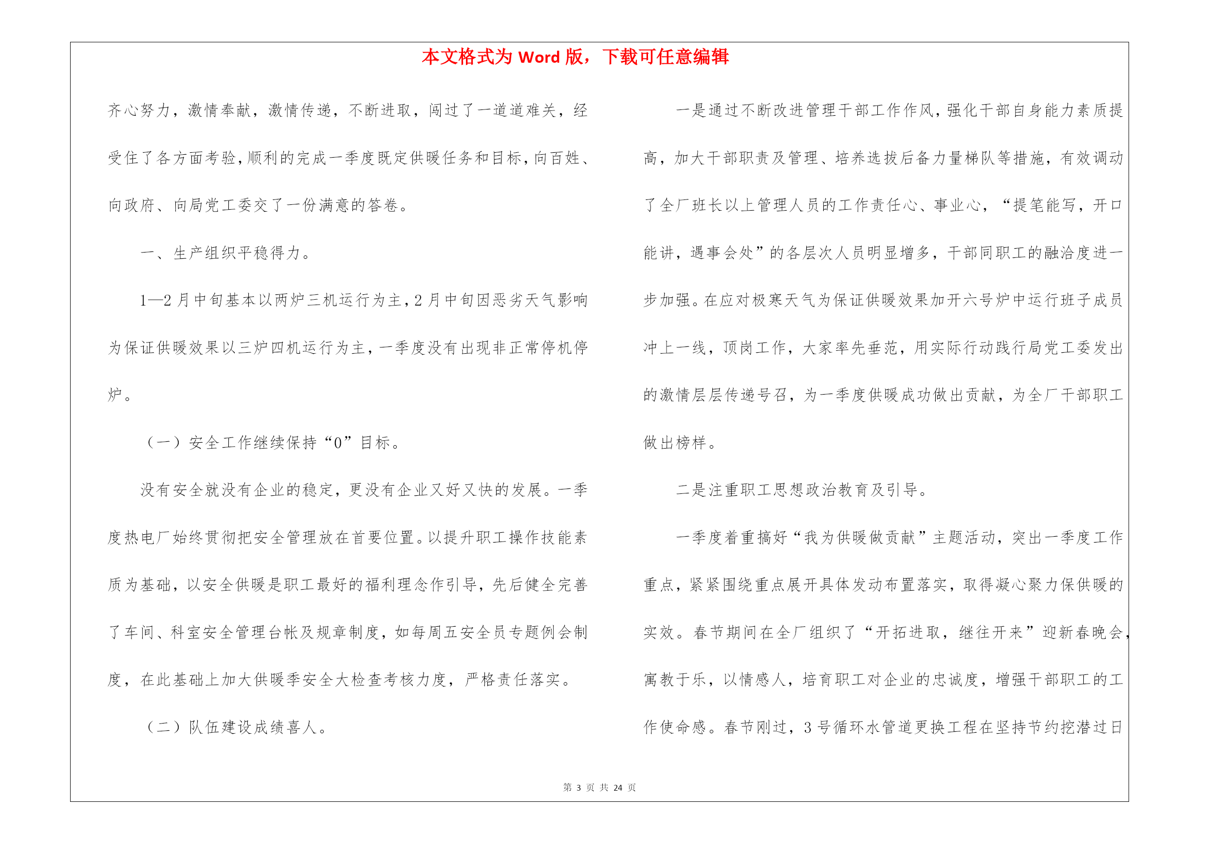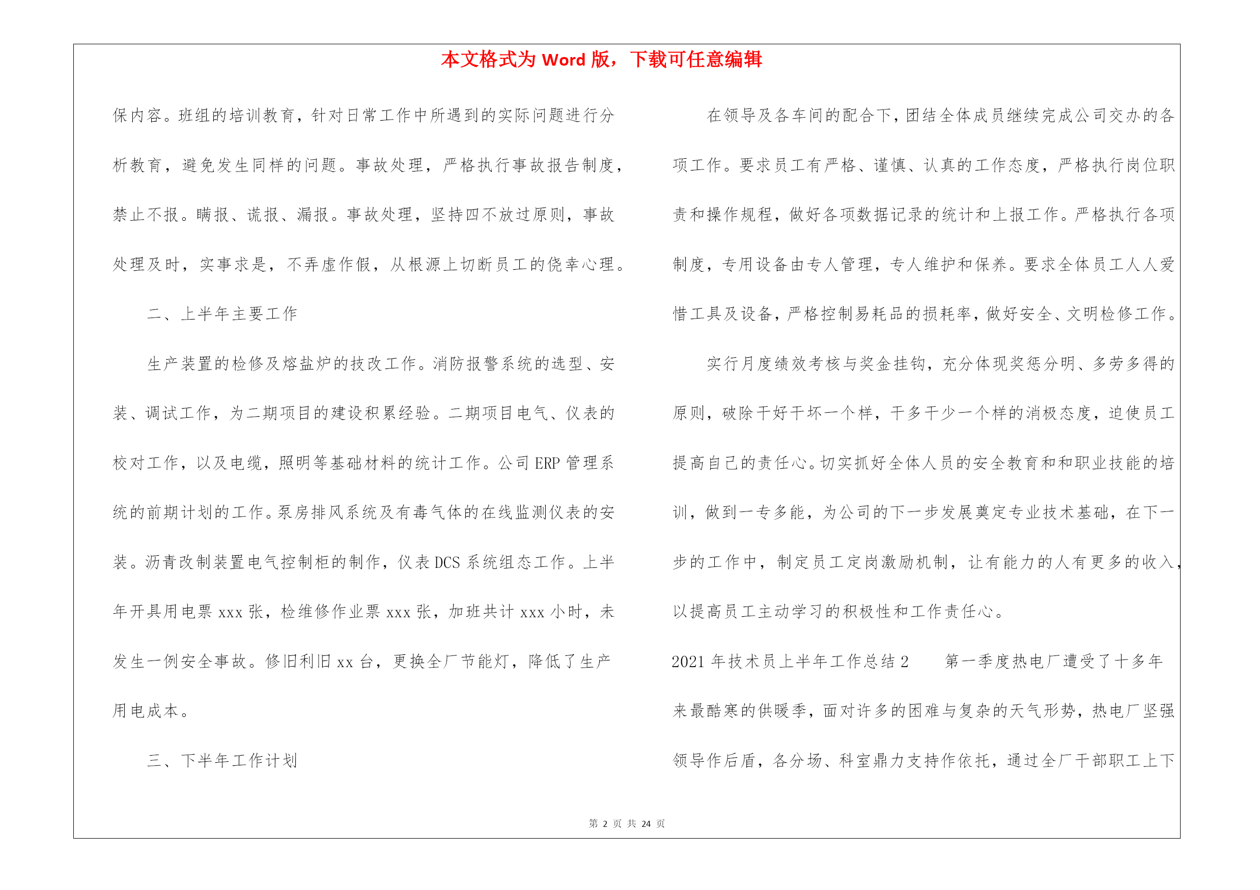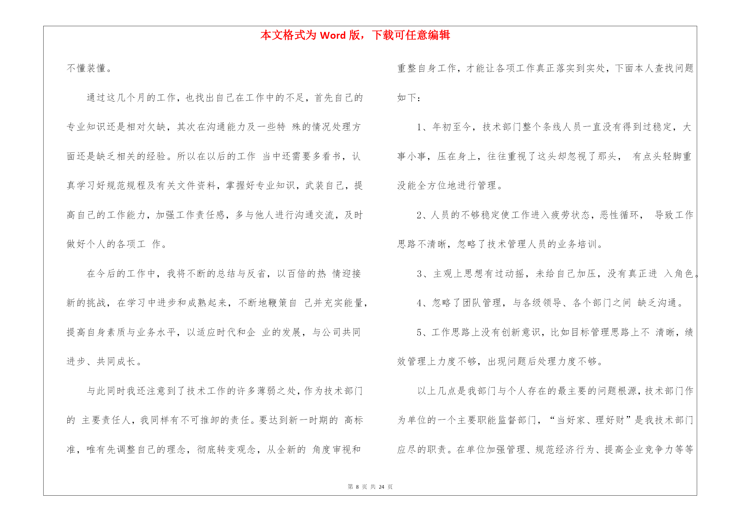 本文格式为Word版,下载可任意编辑第PAGE\*MERGEFORMAT24页共NUMPAGES\*MERGEFORMAT24页2021年技术员上半年工作总结2021年技术员上半年工作总结总结就是把一个时间段取得的成绩、存在的问题及得到的经验和教训进行一次全面系统的总结的书面材料,他能够提升我们的书面表达能力,因此十分有必须要写一份总结哦。但是总结有什么要求呢?下面是我精心整理的2021年技术员上半年工作总结,希望能够帮助到大家。2021年技术员上半年工作总结1经过半年的努力,公司对各职能部门行了整合整顿,使得xx更具活力和市场竞争力;我车间在公司正确领导、信任、同事的帮助、配合,下属的支持及自己的努力下做好车间的工作,为使下半年里更好的开展维修保养工作,在此总结上半年工作中的经验、教训,以便更好的完成新的挑战。现将工作做简要的总结:针对我车间在维修过程中,多数设备及介质具有易燃、易爆、有毒、腐蚀性强,高温、高压操作,工艺条件复杂,若安全措施处理不到位,稍有不慎极易发生火灾、爆炸、人员伤亡等事故,我车间努力在保证安全生产的前提开展检维修工作。一、机修、电气、仪表的日常工作认真传达公司的各项规章制度及文件精神,做到全员学习,思想认识上与公司同步,心往一处想劲往一处使。车间完善组织机构,明确岗位职责,增强在安全生产方面的管理与培训。坚持车间早交接班会议制度,对公司早调度会的内容做到上传下达,及时安排,及时解决,做到大事不过天,小事不过班,提高全员责任心。参与公司生产装置及储运罐区的各项技改工作。对所属的动静设备实行隐患排查整改日报制度,对存在问题做到汇报有记录,整改有计划。公司历次的安全环保隐患排查整改检查中,对存在问题落实到人,按期整改。班组交接班要进行安全环保喊话,交接班日志突出安全环保内容。班组的培训教育,针对日常工作中所遇到的实际问题进行分析教育,避免发生同样的问题。事故处理,严格执行事故报告制度,禁止不报。瞒报、谎报、漏报。事故处理,坚持四不放过原则,事故处理及时,实事求是,不弄虚作假,从根源上切断员工的侥幸心理。二、上半年主要工作生产装置的检修及熔盐炉的技改工作。消防报警系统的选型、安装、调试工作,为二期项目的建设积累经验。二期项目电气、仪表的校对工作,以及电缆,照明等基础材料的统计工作。公司ERP管理系统的前期计划的工作。泵房排风系统及有毒气体的在线监测仪表的安装。沥青改制装置电气控制柜的制作,仪表DCS系统组态工作。上半年开具用电票xxx张,检维修作业票xxx张,加班共计xxx小时,未发生一例安全事故。修旧利旧xx台,更换全厂节能灯,降低了生产用电成本。三、下半年工作计划在领导及各车间的配合下,团结全体成员继续完成公司交办的各项工作。要求员工有严格、谨慎、认真的工作态度,严格执行岗位职责和操作规程,做好各项数据记录的统计和上报工作。严格执行各项制度,专用设备由专人管理,专人维护和保养。要求全体员工人人爱惜工具及设备,严格控制易耗品的损耗率,做好安全、文明检修工作。实行月度绩效考核与奖金挂钩,充分体现奖惩分明、多劳多得的原则,破除干好干坏一个样,干多干少一个样的消极态度,迫使员工提高自己的责任心。切实抓好全体人员的安全教育和和职业技能的培训,做到一专多能,为公司的下一步发展奠定专业技术基础,在下一步的工作中,制定员工定岗激励机制,让有能力的人有更多的收入,以提高员工主动学习的积极性和工作责任心。2021年技术员上半年工作总结2第一季度热电厂遭受了十多年来最酷寒的供暖季,面对许多的困难与复杂的天气形势,热电厂坚强领导作后盾,各分场、科室鼎力支持作依托,通过全厂干部职工上下齐心努力,激情奉献,激情传递,不断进取,闯过了一道道难关,经受住了各方面考验,顺利的完成一季度既定供暖任务和目标,向百姓、向政府、向局党工委交了一份满意的答卷。一、生产组织平稳得力。1—2月中旬基本以两炉三机运行为主,2月中旬因恶劣天气影响为保证供暖效果以三炉四机运行为主,一季度没有出现非正常停机停炉。(一)安全工作继续保持“0”目标。没有安全就没有企业的稳定,更没有企业又好又快的发展。一季度热电厂始终贯彻把安全管理放在首要位置。以提升职工操作技能素质为基础,以安全供暖是职工最好的福利理念作引导,先后健全完善了车间、科室安全管理台帐及规章制度,如每周五安全员专题例会制度,在此基础上加大供暖季安全大检查考核力度,严格责任落实。(二)队伍建设成绩喜人。一是通过不断改进管理干部工作作风,强化干部自身能力素质提高,加大干部职责及管理、培养选拔后备力量梯队等措施,有效调动了全厂班长以上管理人员的工作责任心、事业心,“提笔能写,开口能讲,遇事会处”的各层次人员明显增多,干部同职工的融洽度进一步加强。在应对极寒天气为保证供暖效果加开六号炉中运行班