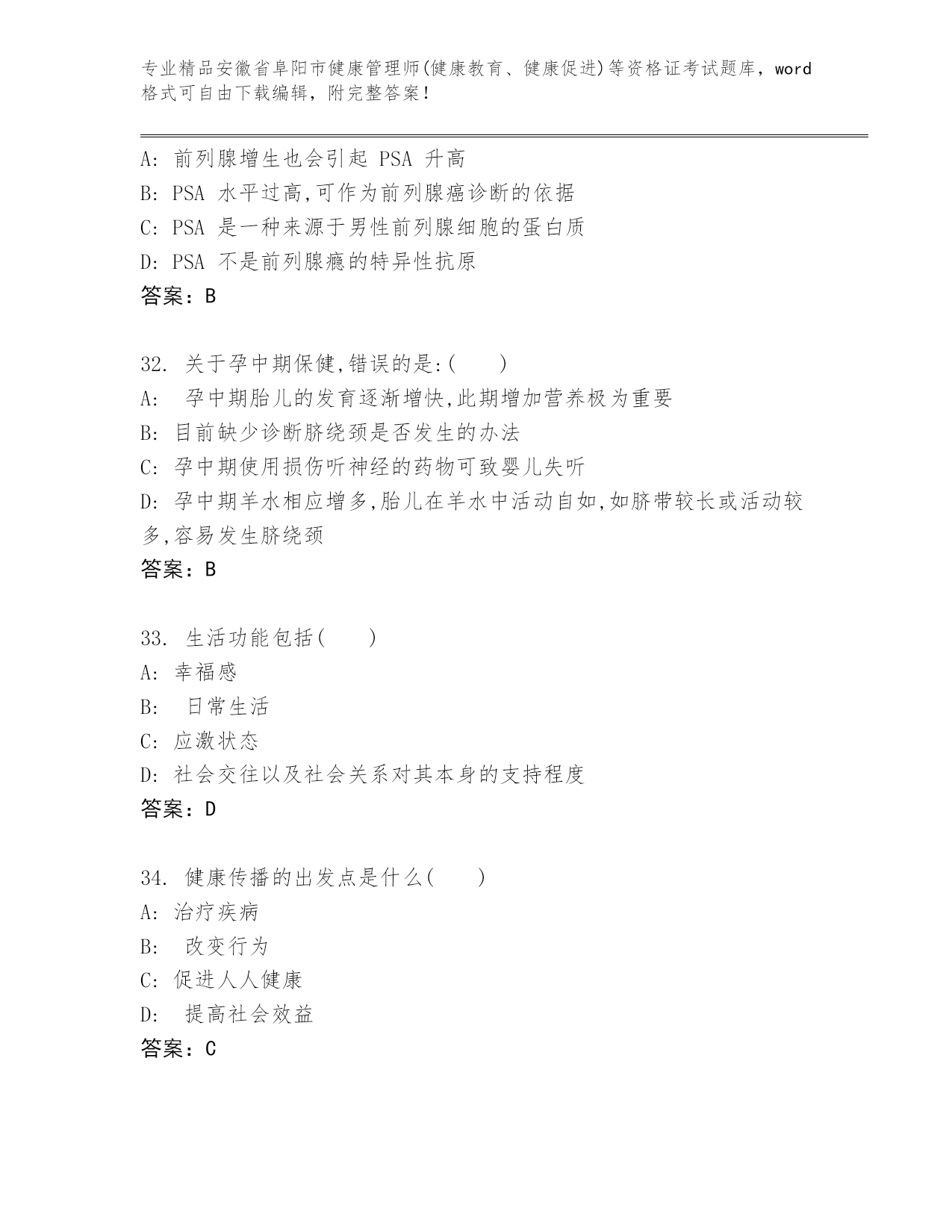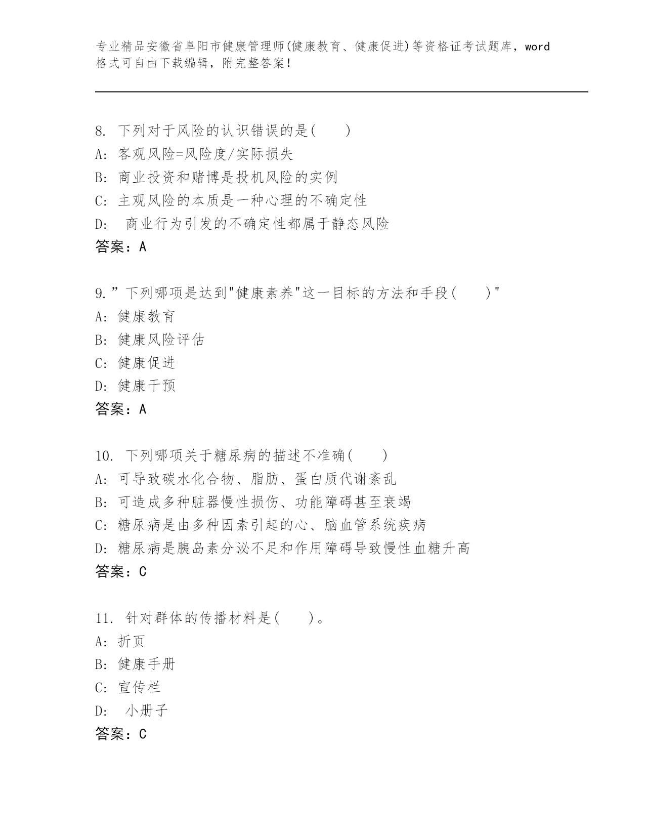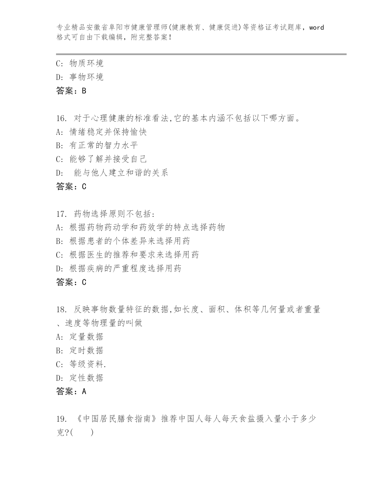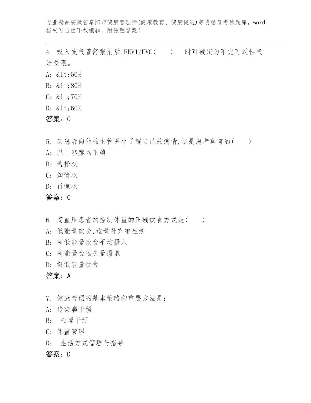 历年安徽省阜阳市健康管理师(健康教育、健康促进)等资格证考试真题及答案(夺冠)