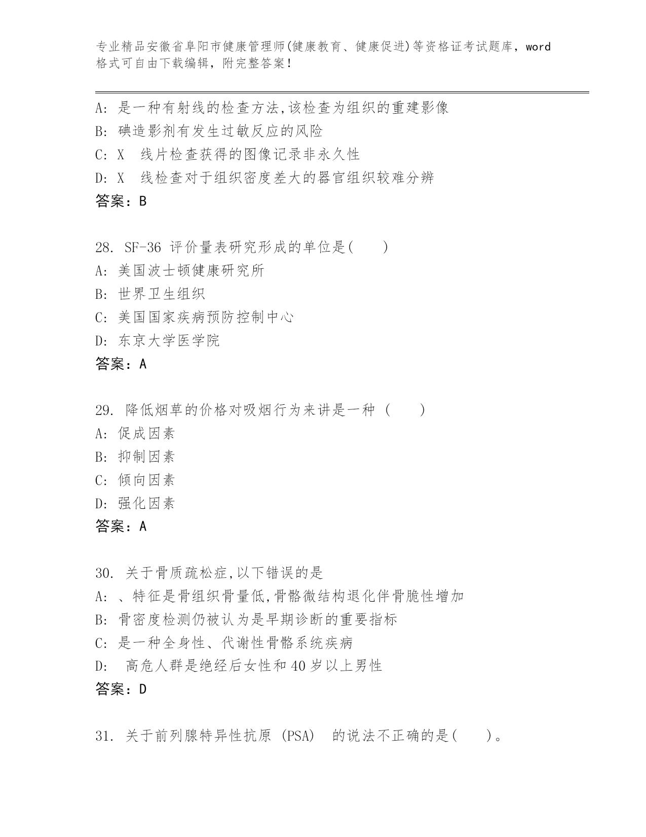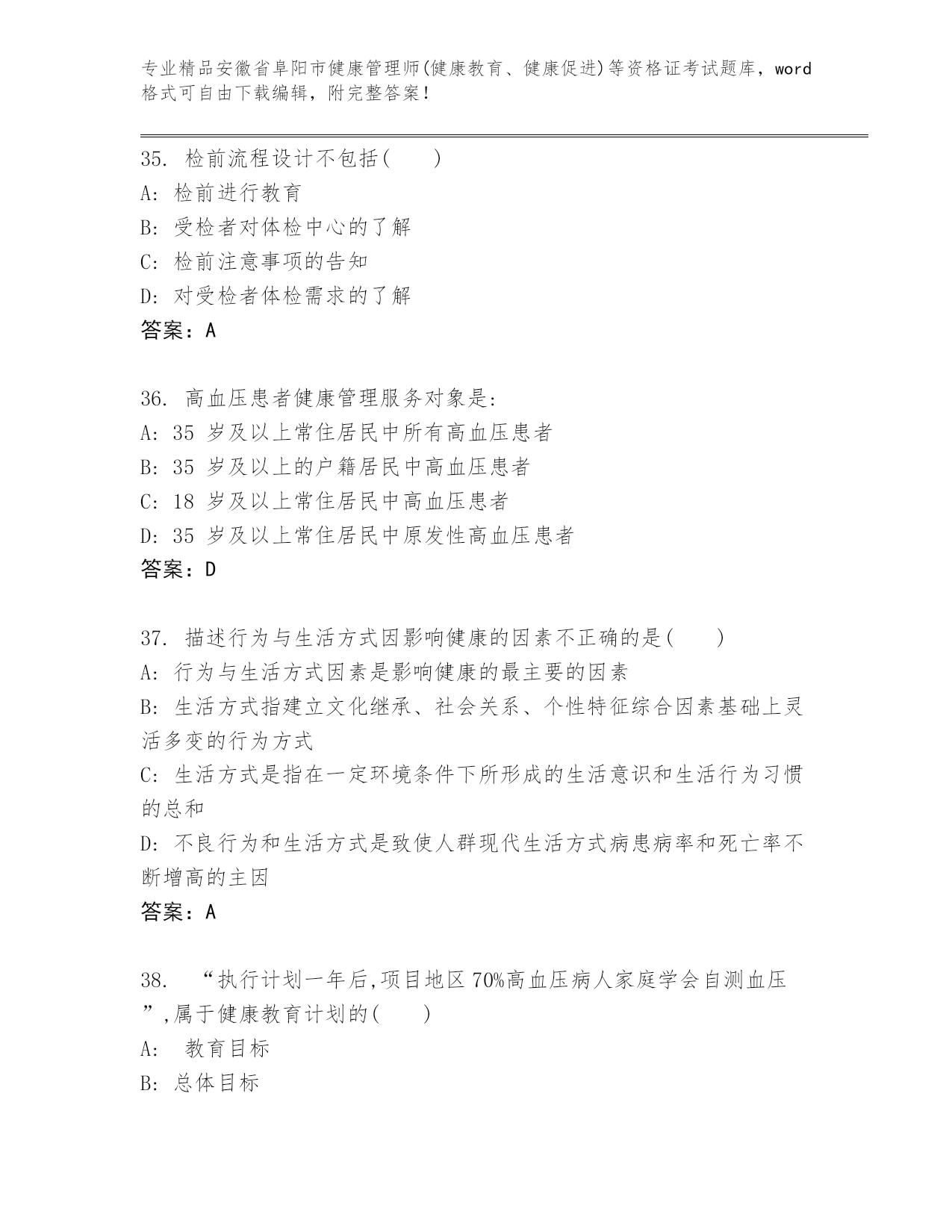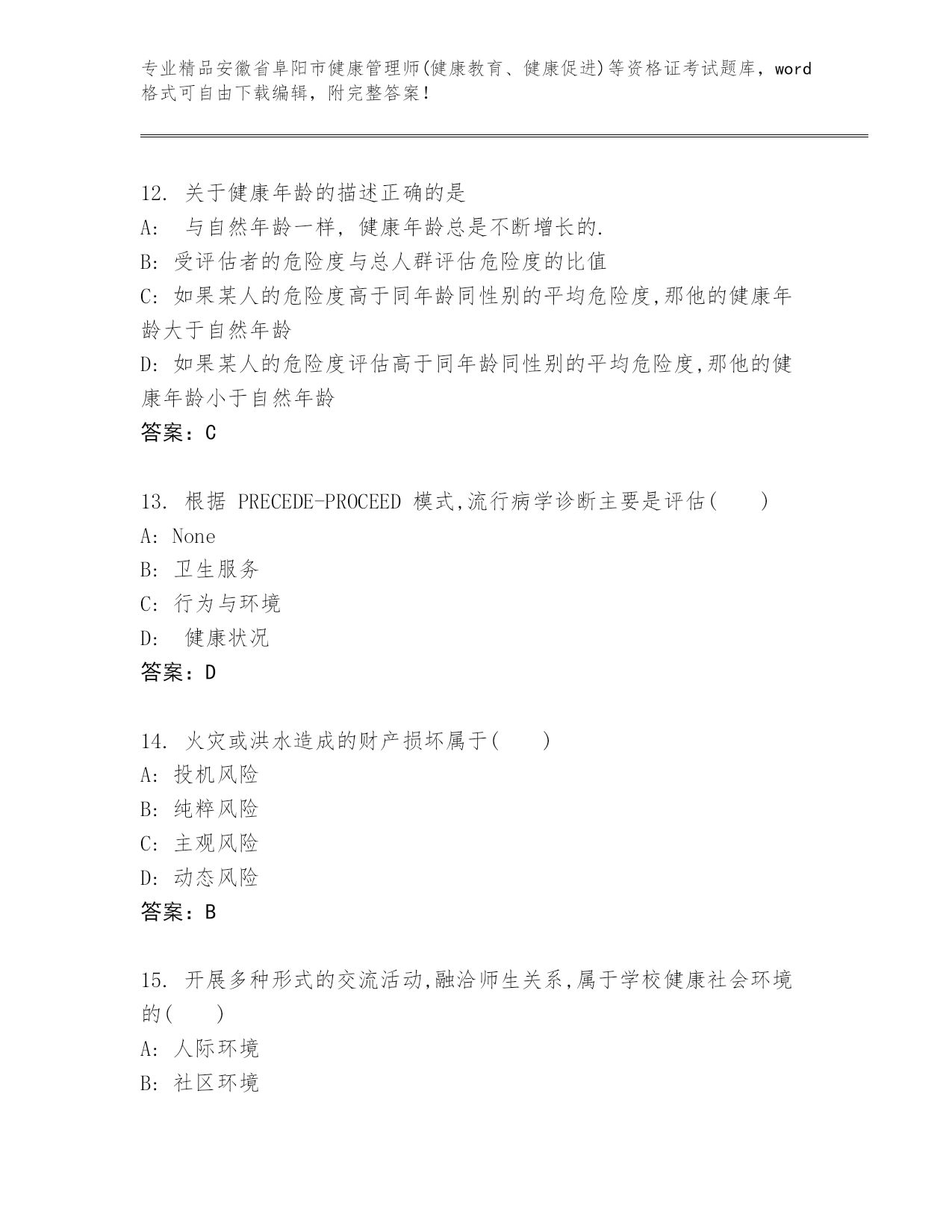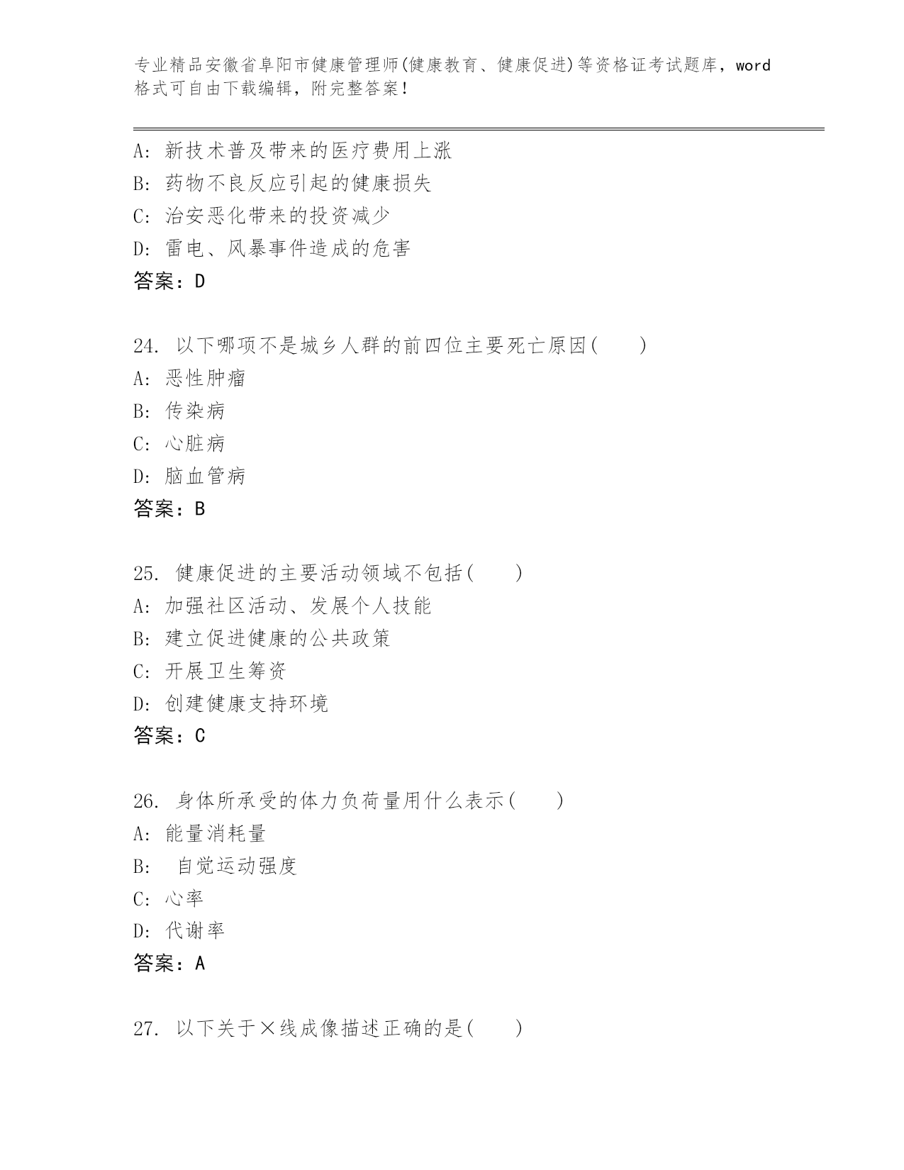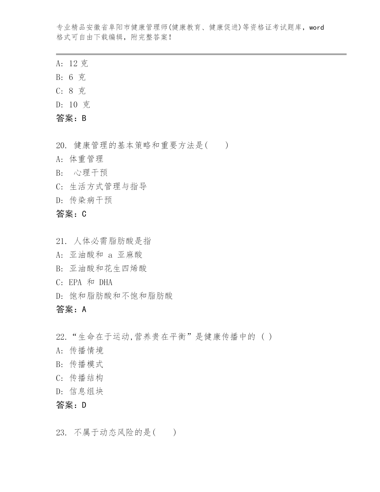 历年安徽省阜阳市健康管理师(健康教育、健康促进)等资格证考试真题及答案(夺冠)