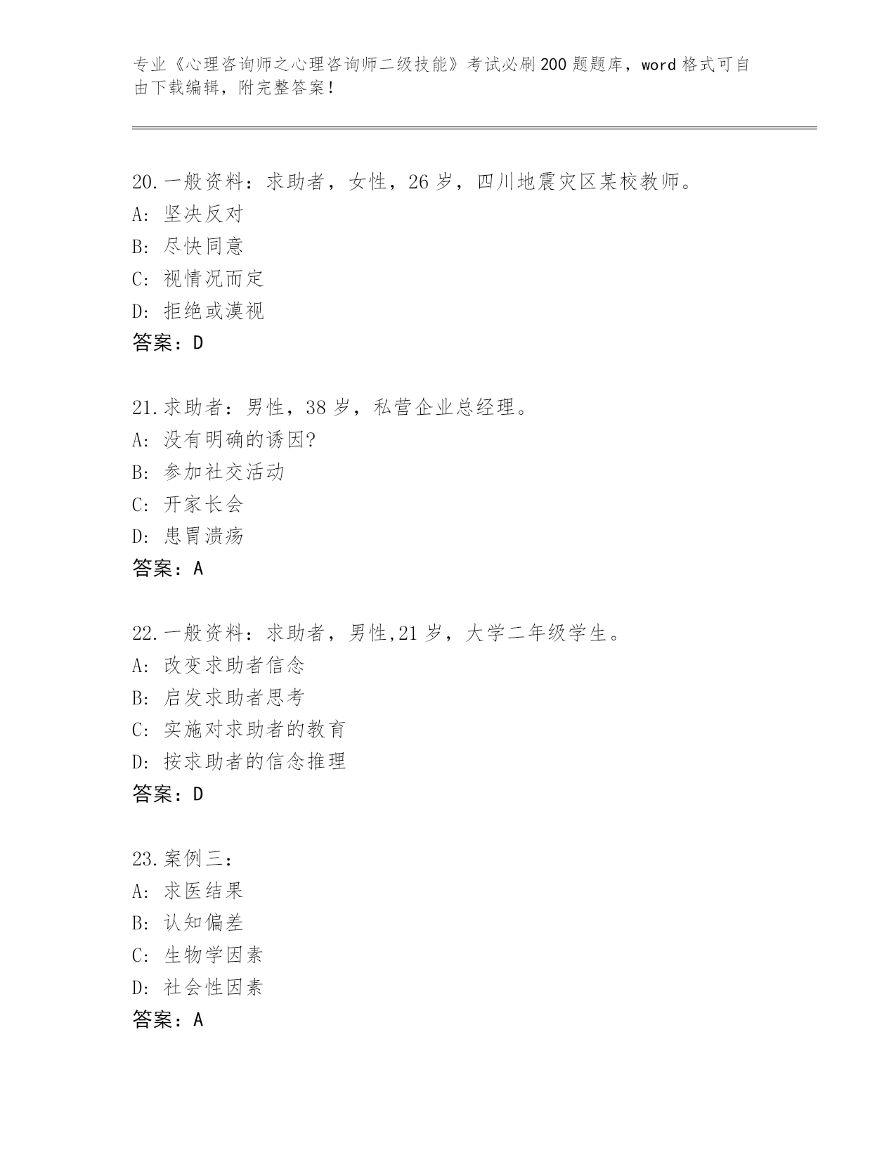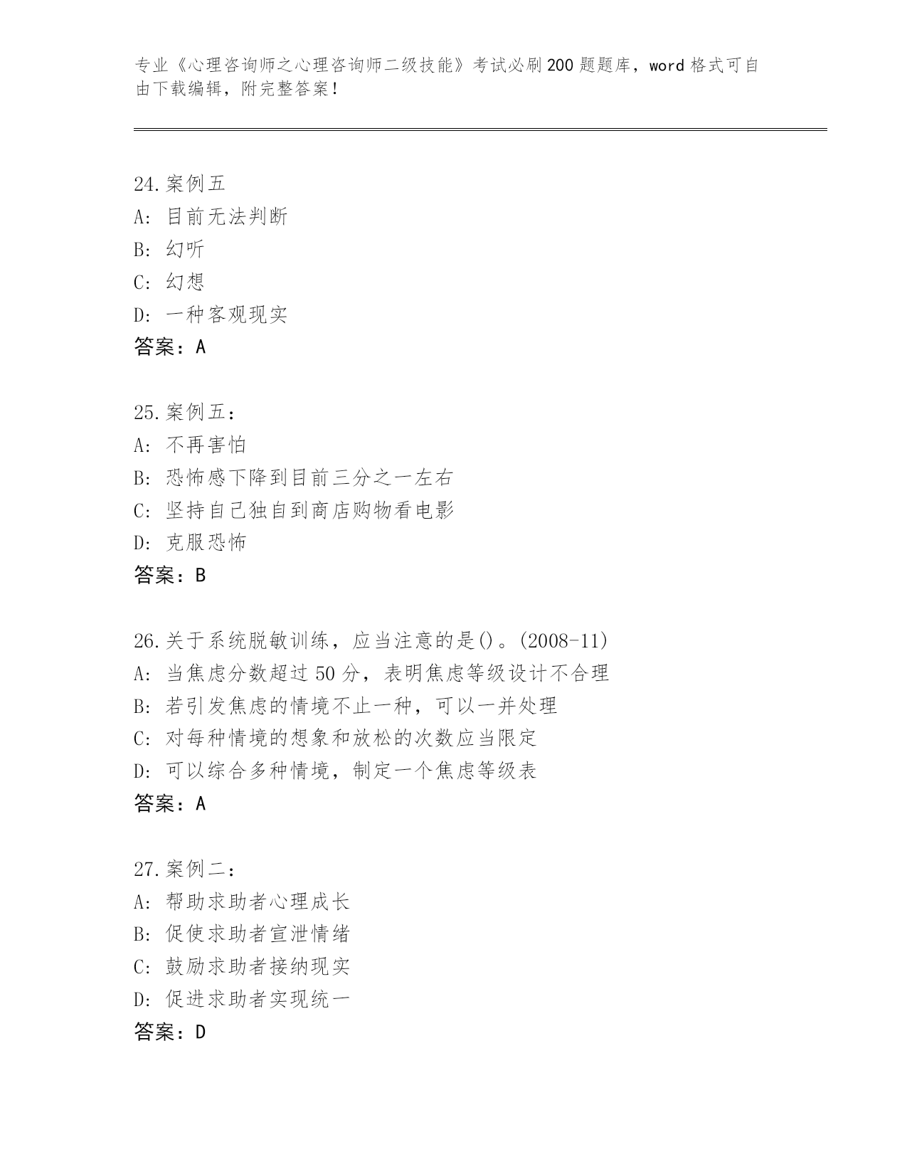 湖北省2024《心理咨询师之心理咨询师二级技能》考试必刷200题真题及答案下载