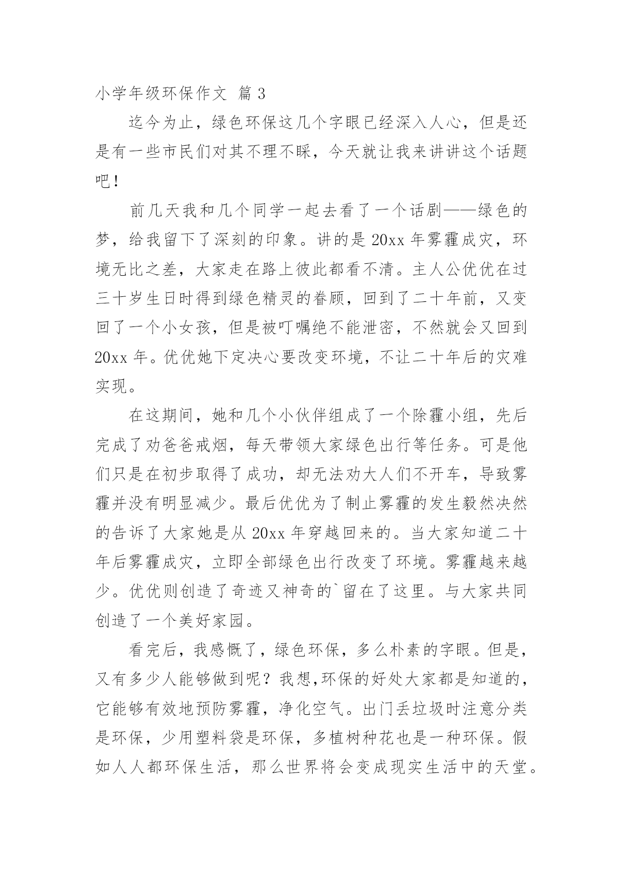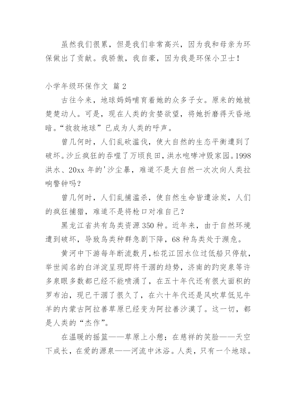 小学年级环保作文小学年级环保作文3篇【合集】无论是身处学校还是步入社会,大家都经常看到作文的身影吧,根据写作命题的特点,作文可以分为命题作文和非命题作文。如何写一篇有思想、有文采的作文呢?下面是小编为大家整理的小学年级环保作文3篇,希望对大家有所帮助。小学年级环保作文篇1一个星期天,母亲带我去白河边玩,以前听大人们说:“白河山清水秀,是一个不错的景点。”可真正到了白河边,却让我大跌眼镜。河里很脏,而且还散发着一股臭味,白河边的树上缠绕着塑料袋。我感到非常奇怪,就问母亲:“母亲,白河不是山清水秀的吗?怎么成了这副模样?”母亲说:“是的,以前白河是山清水秀的,可是现在人们乱扔垃圾,这严重的影响了白河的生态环境。”我对母亲说:“我要保护白河的环境。”母亲说:“好,儿子,母亲支持你。”有了母亲的.支持,我信心大增。我首先找来了一个大牌子,然后在上面写上:请勿乱扔垃圾。最后把它插在醒目的地方。接下来,我和母亲就开始捡垃圾了。虽然我和母亲捡的腰酸背痛,但看着我和母亲捡干净了一大片地,我就又继续捡了起来。虽然我们很累,但是我们非常高兴,因为我和母亲为环保做出了贡献。我骄傲,我自豪,因为我是环保小卫士!小学年级环保作文篇2古往今来,地球妈妈哺育着她的众多子女。原来的她被楚楚动人。可是,现在人类的贪婪欲望,将她折磨得天昏地暗。“救救地球”已成为人类的呼声。曾几何时,人们乱砍滥伐,使大自然的生态平衡遭到了破坏。沙丘疯狂的吞噬了万顷良田,洪水咆哮冲毁家园。1998洪水、20xx年的'沙尘暴,难道不是大自然一次次向人类拉响警钟吗?曾几何时,人们乱捕滥杀,使自然生命皆遭涂炭,人们的疯狂捕猎,难道不是将枪口对准自己?黑龙江省共有鸟类资源350种。近年来,由于自然环境遭到破坏,导致鸟类种群急剧下降,68种鸟类处于濒危。黄河中下游每年断流数月,松花江因水位过低船只停航,举世闻名的白洋淀呈现即将干涸的趋势,济南的趵突泉等许多泉眼多数都已经不能喷涌了,在五十年代还有很大面积的罗布泊,现已干涸了很久了,在六十年代还是风吹草低见牛羊的内蒙古阿拉善草原已经变为阿拉善沙漠了。这一切,都是人类的“杰作”。在温暖的摇篮——草原上小憩;在慈祥的笑脸——天空下成长,在爱的源泉——河流中沐浴。人类,只有一个地球。小学年级环保作文篇3迄今为止,绿色环保这几个字眼已经深入人心,但是还是有一些市民们对其不理不睬,今天就让我来讲讲这个话题吧!前几天我和几个同学一起去看了一个话剧——绿色的梦,给我留下了深刻的印象。讲的是20xx年雾霾成灾,环境无比之差,大家走在路上彼此都看不清。主人公优优在过三十岁生日时得到绿色精灵的眷顾,回到了二十年前,又变回了一个小女孩,但是被叮嘱绝不能泄密,不然就会又回到20xx年。优优她下定决心要改变环境,不让二十年后的灾难实现。在这期间,她和几个小伙伴组成了一个除霾小组,先后完成了劝爸爸戒烟,每天带领大家绿色出行等任务。可是他们只是在初步取得了成功,却无法劝大人们不开车,导致雾霾并没有明显减少。最后优优为了制止雾霾的发生毅然决然的告诉了大家她是从20xx年穿越回来的。当大家知道二十年后雾霾成灾,立即全部绿色出行改变了环境。雾霾越来越少。优优则创造了奇迹又神奇的`留在了这里。与大家共同创造了一个美好家园。看完后,我感慨了,绿色环保,多么朴素的字眼。但是,又有多少人能够做到呢?我想,环保的好处大家都是知道的,它能够有效地预防雾霾,净化空气。出门丢垃圾时注意分类是环保,少用塑料袋是环保,多植树种花也是一种环保。假如人人都环保生活,那么世界将会变成现实生活中的天堂。啊!同学们,让我们为做到环保,共同努力吧!