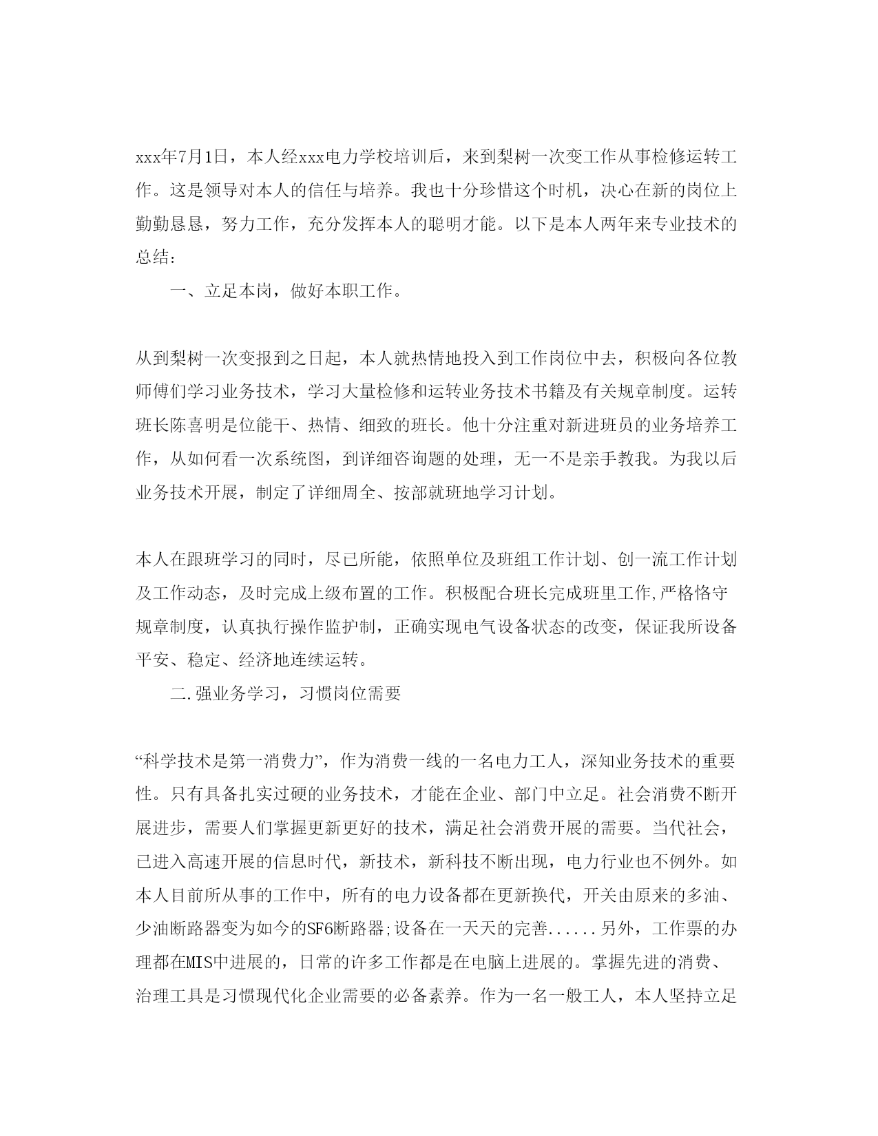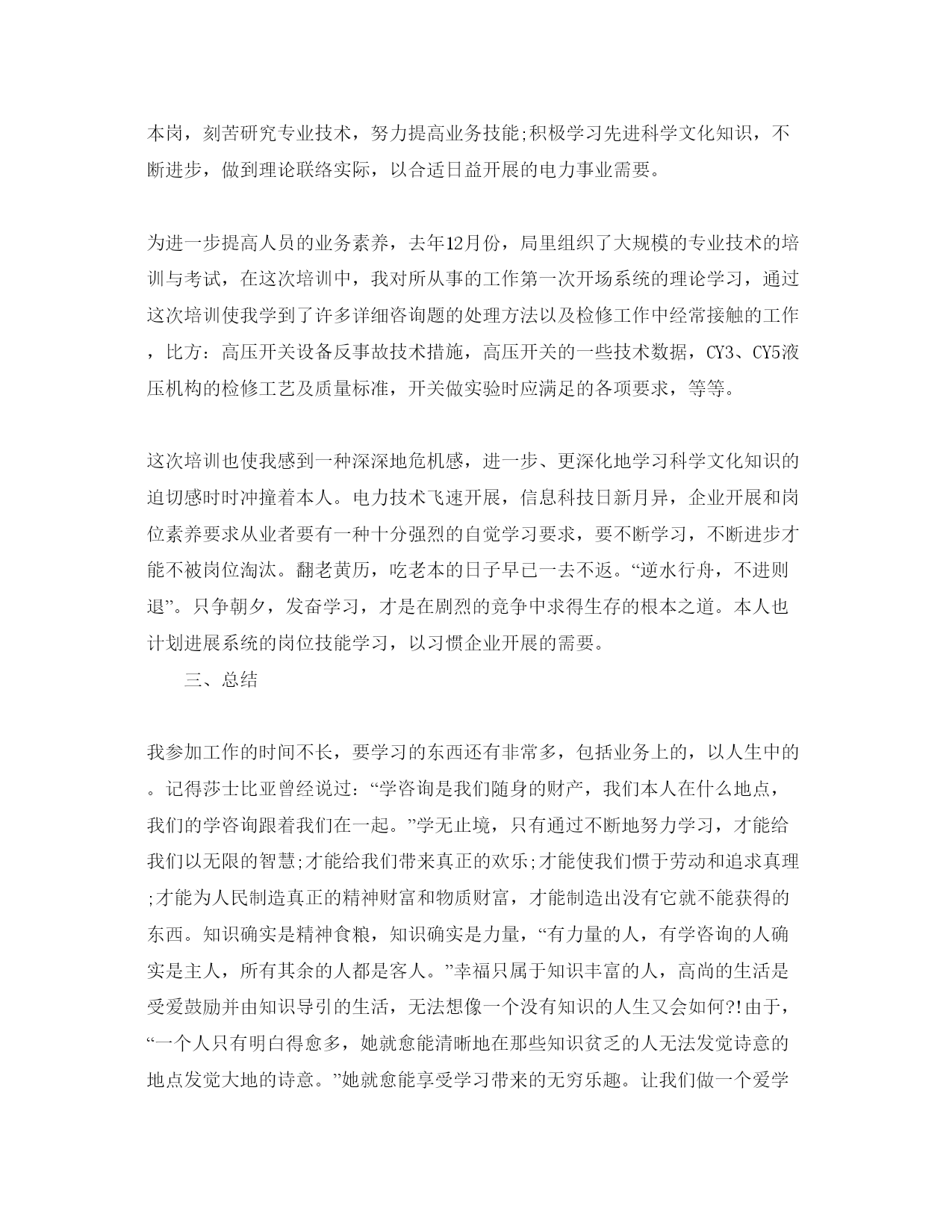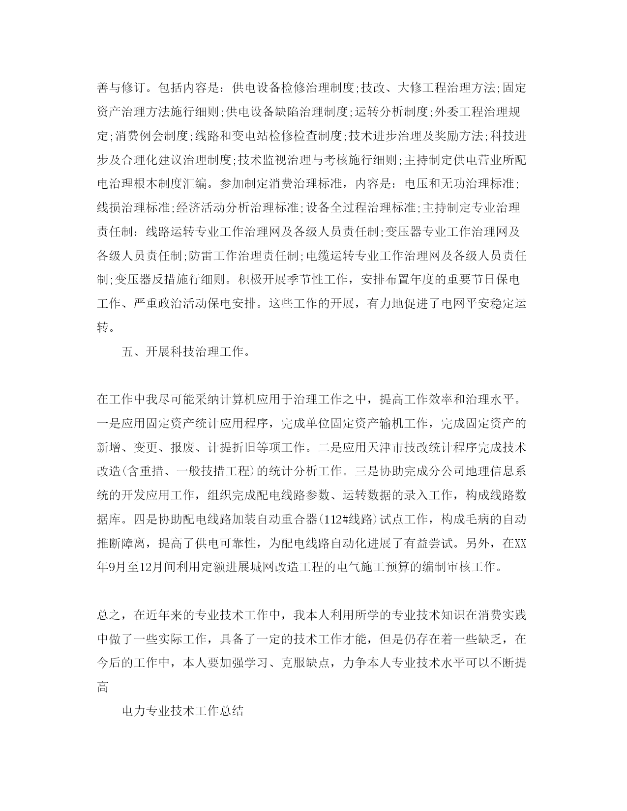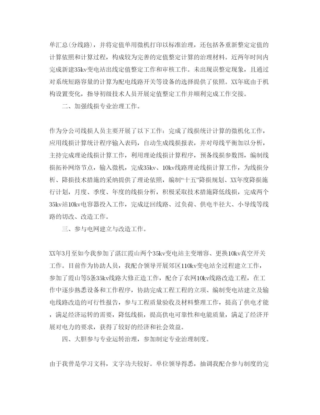 2022电力专业技术工作参考总结(个人)