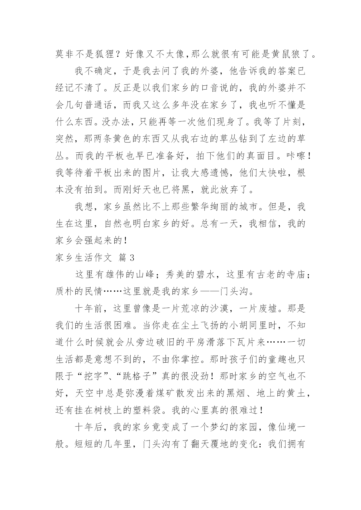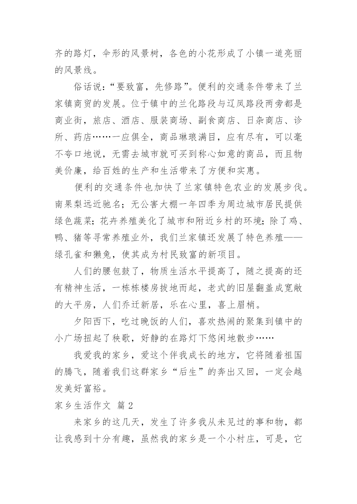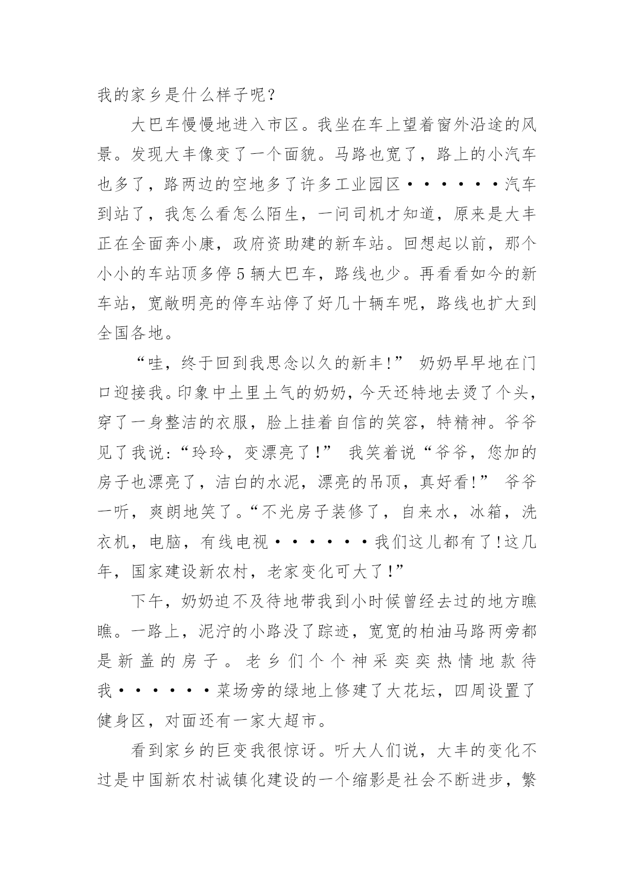 家乡生活作文关于家乡生活作文7篇在学习、工作或生活中,大家都有写作文的经历,对作文很是熟悉吧,作文是由文字组成,经过人的思想考虑,通过语言组织来表达一个主题意义的文体。相信许多人会觉得作文很难写吧,下面是小编为大家收集的家乡生活作文7篇,希望能够帮助到大家。家乡生活作文篇1提起我的家乡——兰家镇,我会很自豪地向大家介绍:它在辽阳县小有名气,优越的地理位置、便利的交通条件、现代化的商贸服务、特色的农业发展、整齐的村容镇貌、纯朴的民俗民风……使这座乡村小镇成为周边城里人悠闲的好去处。说它地理位置优越,是因为它位于古城——辽阳南5公里,全国炼油基地——辽化西3公里,辽阳县政府——首山东4公里。受城市建设氛围的熏陶,不用我说,你也一定会想象出这里是一派现代化新农村的气象。走进兰家镇,你会发现宽阔的辽凤公路与兰化路交汇于镇中的兰家桥。“本辽辽”高速公路在此修建了出口,又一条宽阔的柏油马路从镇东穿过,再加上今年即将修建的辽化通向鞍山的公路,将会有四条公路从镇中穿过,从空中俯瞰,这四条公路在镇中书写出一个壮观的“井”字。公路两旁整齐的路灯,伞形的风景树,各色的小花形成了小镇一道亮丽的风景线。俗话说:“要致富,先修路”。便利的交通条件带来了兰家镇商贸的发展。位于镇中的兰化路段与辽凤路段两旁都是商业街,旅店、酒店、服装商场、副食商店、日杂商店、诊所、药店……一应俱全,商品琳琅满目,应有尽有,可以毫不夸口地说,无需去城市就可买到称心如意的商品,而且物美价廉,给百姓的生产和生活带来了方便和实惠。便利的交通条件也加快了兰家镇特色农业的发展步伐。南果梨远近驰名;无公害大棚一年四季为周边城市居民提供绿色蔬菜;花卉养殖美化了城市和附近乡村的环境;除了鸡、鸭、猪等寻常养殖业外,我们兰家镇还发展了特色养殖——绿孔雀和獭兔,使其成为村民致富的新项目。人们的腰包鼓了,物质生活水平提高了,随之提高的还有精神生活,一栋栋楼房拔地而起,老式的旧屋翻盖成宽敞的大平房,人们乔迁新居,乐在心里,喜上眉梢。夕阳西下,吃过晚饭的人们,喜欢热闹的聚集到镇中的小广场扭起了秧歌,好静的在路灯下悠闲地散步……我爱我的家乡,爱这个伴我成长的地方,它将随着祖国的腾飞,随着我们这群家乡“后生”的奔出又回,一定会越发美好富裕。家乡生活作文篇2来家乡的这几天,发生了许多我从未见过的事和物,都让我感到十分有趣,虽然我的家乡是一个小村庄,可是,它却给我带来了无限的快乐……在城市里住了这么久,来家乡呼吸呼吸大自然散发的新鲜空气倒也挺舒服的。我的家乡依然那么美,一望无边的农田,杂草丛生却又不少有趣的池塘边,还有我外婆家前的那几棵高大而又挺拔的树,一切都是那么富有生机。虽然这里并不繁华,并不富裕,但在我心中,这里的景色永远是美的,食物永远是香而又新鲜的,人永远是善良的,高级酒店什么的,其实也都无所谓了。我还记得,在上个暑假,在我外婆家后面有很大一块田地(大概有20机架飞机那么吧)全部都被挖成了河。但从这个暑假一回来,中间部分又被填了上来,又种农作物,只在边缘留了几米宽的河流,听说是用来养小龙虾的。我还发现了一个秘密,那就是在河的边缘会刮起很大的风,比其它地方都要凉快很多。相对于空调房,这里带来的更多的是舒适。你完全可以带着把小椅子,坐在坡上,尽情感受风带来的凉爽,就像母亲抚摸着你的脸。当然,还有一点,可要小心别一头栽进河里了,在那之后我都非常喜欢那个土坡,总喜欢待在那。有一天下午时,我又坐在河边上吹着凉风。天气依然那么晴朗,小鸟依然那么活跃,我享受在风之中。我拿出平板准备拍几张照,回头向外婆家的后院看去,我傻了眼。田地中居然有几条黄色的东西,他们悠闲地移动着。我在旁边呆呆地看。突然!他们像是闪电一般钻入了草丛,无影无踪。我思考着,这两条黄色的动物,黄黄的,瘦瘦的,长长的,莫非不是狐狸?好像又不太像,那么就很有可能是黄鼠狼了。我不确定,于是我去问了我的外婆,他告诉我的答案已经记不清了。反正是以我们家乡的口音说的,我的外婆并不会几句普通话,而我又这么多年没在家乡了,我也听不懂是什么东西。没办法,只能再等一次他们现身了。我等了片刻,突然,那两条黄色的东西又从我右边的草丛钻到了左边的草丛。而我的平板也早已准备好,拍下他们的真面目。咔嚓!我等待着平板出来的图片,让我大感遗憾,他们太快啦,根本没有拍到。而刚好天也已将黑,就此放弃了。我想,家乡虽然比不上那些繁华绚丽的城市。但是,我生在这里,自然也明白家乡的好。总有一天,我相信,我的家乡会强起来的!家乡生活作文篇3这里有雄伟的山峰;秀美的碧水,这里有古老的寺庙;质朴的民情……这里就是我的家乡——门头沟。十年前,这里曾像是一片荒凉的沙漠,一片废墟。那是我们的生活很困难。当你走在尘土飞扬的小胡同里时,不知道什么时候就会从旁边破旧的平房滑落下瓦片来……一切生活都是意想不到的