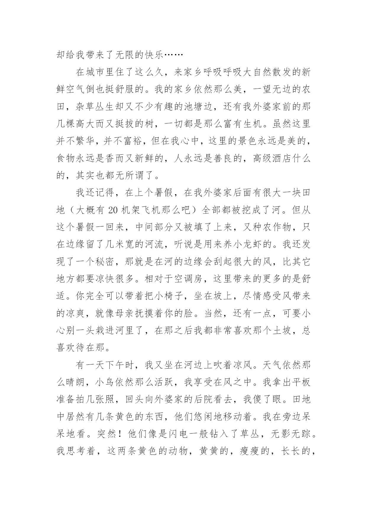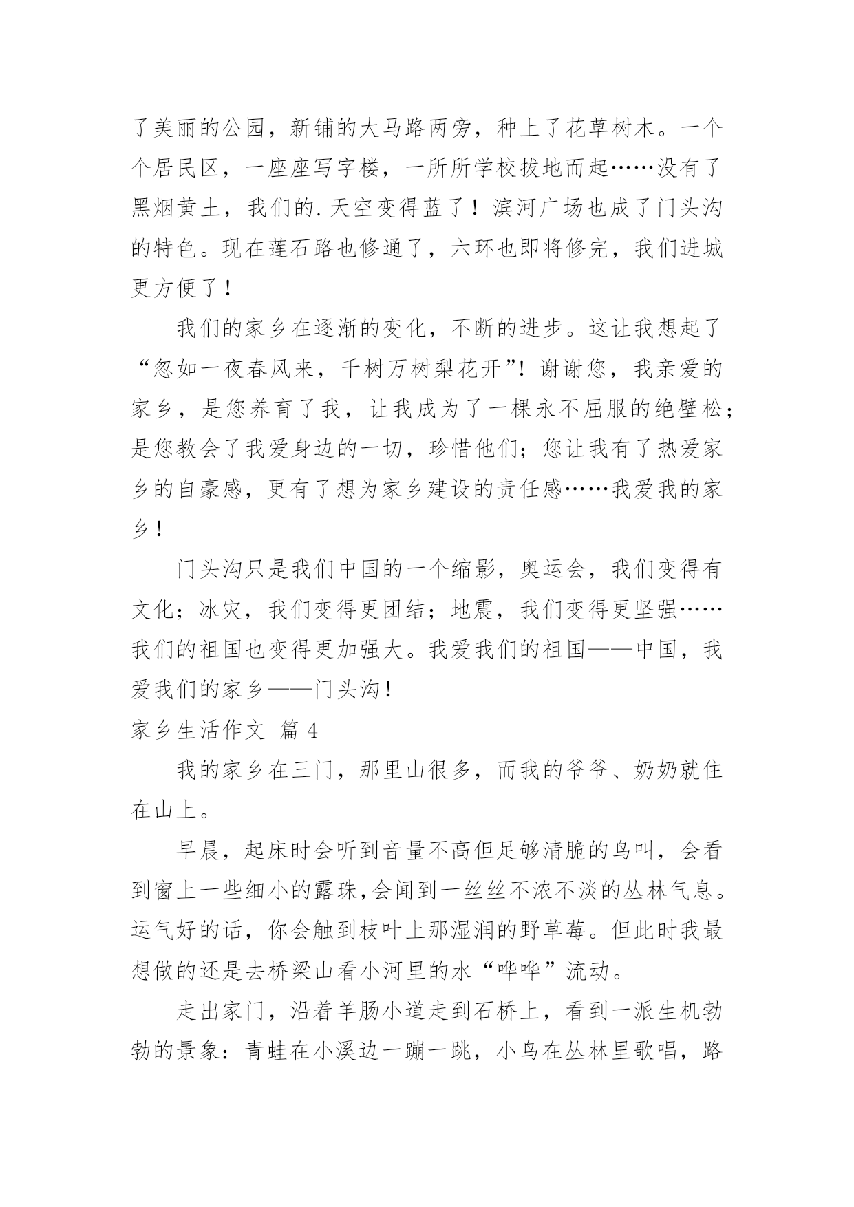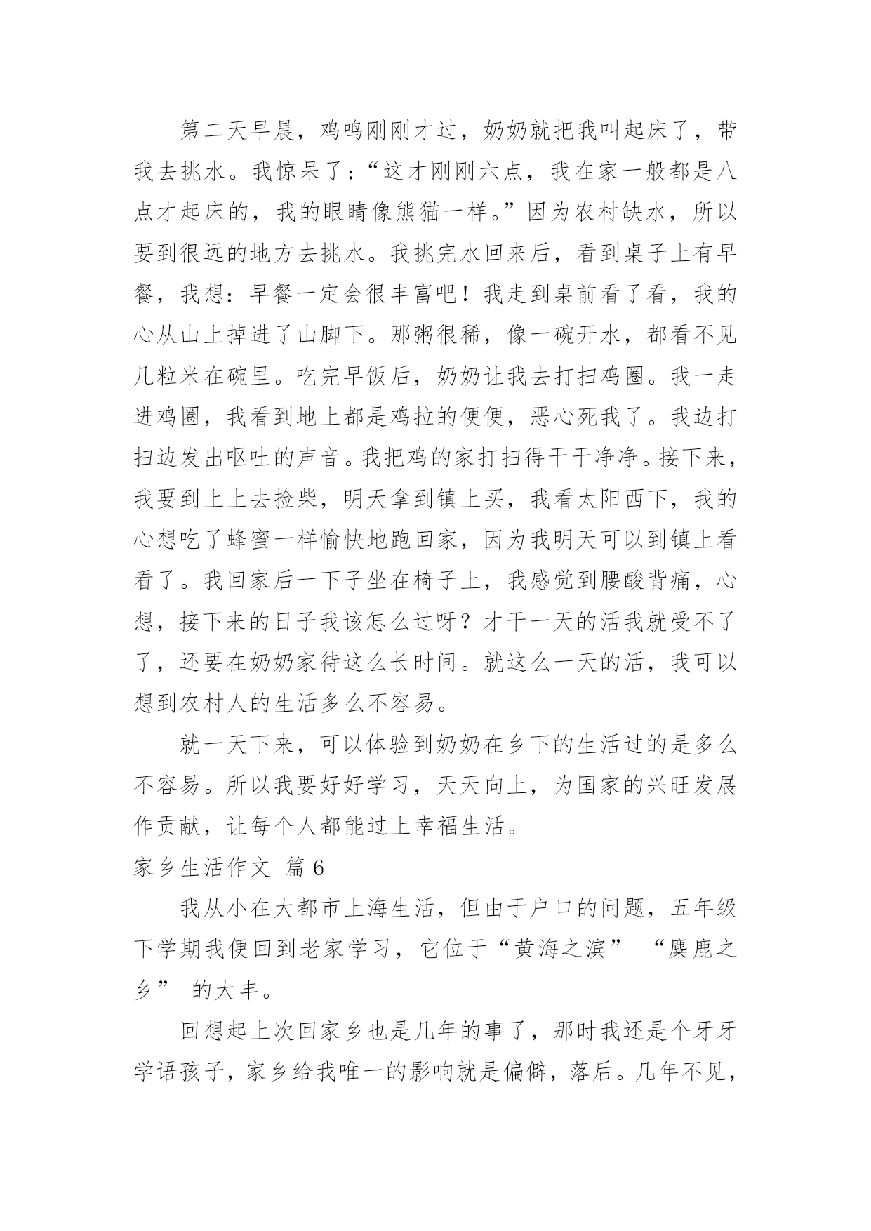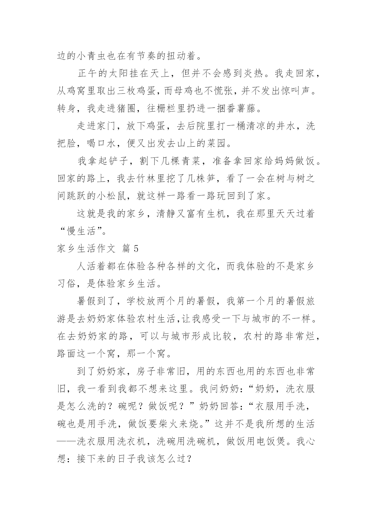 家乡生活作文关于家乡生活作文7篇在学习、工作或生活中,大家都有写作文的经历,对作文很是熟悉吧,作文是由文字组成,经过人的思想考虑,通过语言组织来表达一个主题意义的文体。相信许多人会觉得作文很难写吧,下面是小编为大家收集的家乡生活作文7篇,希望能够帮助到大家。家乡生活作文篇1提起我的家乡——兰家镇,我会很自豪地向大家介绍:它在辽阳县小有名气,优越的地理位置、便利的交通条件、现代化的商贸服务、特色的农业发展、整齐的村容镇貌、纯朴的民俗民风……使这座乡村小镇成为周边城里人悠闲的好去处。说它地理位置优越,是因为它位于古城——辽阳南5公里,全国炼油基地——辽化西3公里,辽阳县政府——首山东4公里。受城市建设氛围的熏陶,不用我说,你也一定会想象出这里是一派现代化新农村的气象。走进兰家镇,你会发现宽阔的辽凤公路与兰化路交汇于镇中的兰家桥。“本辽辽”高速公路在此修建了出口,又一条宽阔的柏油马路从镇东穿过,再加上今年即将修建的辽化通向鞍山的公路,将会有四条公路从镇中穿过,从空中俯瞰,这四条公路在镇中书写出一个壮观的“井”字。公路两旁整齐的路灯,伞形的风景树,各色的小花形成了小镇一道亮丽的风景线。俗话说:“要致富,先修路”。便利的交通条件带来了兰家镇商贸的发展。位于镇中的兰化路段与辽凤路段两旁都是商业街,旅店、酒店、服装商场、副食商店、日杂商店、诊所、药店……一应俱全,商品琳琅满目,应有尽有,可以毫不夸口地说,无需去城市就可买到称心如意的商品,而且物美价廉,给百姓的生产和生活带来了方便和实惠。便利的交通条件也加快了兰家镇特色农业的发展步伐。南果梨远近驰名;无公害大棚一年四季为周边城市居民提供绿色蔬菜;花卉养殖美化了城市和附近乡村的环境;除了鸡、鸭、猪等寻常养殖业外,我们兰家镇还发展了特色养殖——绿孔雀和獭兔,使其成为村民致富的新项目。人们的腰包鼓了,物质生活水平提高了,随之提高的还有精神生活,一栋栋楼房拔地而起,老式的旧屋翻盖成宽敞的大平房,人们乔迁新居,乐在心里,喜上眉梢。夕阳西下,吃过晚饭的人们,喜欢热闹的聚集到镇中的小广场扭起了秧歌,好静的在路灯下悠闲地散步……我爱我的家乡,爱这个伴我成长的地方,它将随着祖国的腾飞,随着我们这群家乡“后生”的奔出又回,一定会越发美好富裕。家乡生活作文篇2来家乡的这几天,发生了许多我从未见过的事和物,都让我感到十分有趣,虽然我的家乡是一个小村庄,可是,它却给我带来了无限的快乐……在城市里住了这么久,来家乡呼吸呼吸大自然散发的新鲜空气倒也挺舒服的。我的家乡依然那么美,一望无边的农田,杂草丛生却又不少有趣的池塘边,还有我外婆家前的那几棵高大而又挺拔的树,一切都是那么富有生机。虽然这里并不繁华,并不富裕,但在我心中,这里的景色永远是美的,食物永远是香而又新鲜的,人永远是善良的,高级酒店什么的,其实也都无所谓了。我还记得,在上个暑假,在我外婆家后面有很大一块田地(大概有20机架飞机那么吧)全部都被挖成了河。但从这个暑假一回来,中间部分又被填了上来,又种农作物,只在边缘留了几米宽的河流,听说是用来养小龙虾的。我还发现了一个秘密,那就是在河的边缘会刮起很大的风,比其它地方都要凉快很多。相对于空调房,这里带来的更多的是舒适。你完全可以带着把小椅子,坐在坡上,尽情感受风带来的凉爽,就像母亲抚摸着你的脸。当然,还有一点,可要小心别一头栽进河里了,在那之后我都非常喜欢那个土坡,总喜欢待在那。有一天下午时,我又坐在河边上吹着凉风。天气依然那么晴朗,小鸟依然那么活跃,我享受在风之中。我拿出平板准备拍几张照,回头向外婆家的后院看去,我傻了眼。田地中居然有几条黄色的东西,他们悠闲地移动着。我在旁边呆呆地看。突然!他们像是闪电一般钻入了草丛,无影无踪。我思考着,这两条黄色的动物,黄黄的,瘦瘦的,长长的,莫非不是狐狸?好像又不太像,那么就很有可能是黄鼠狼了。我不确定,于是我去问了我的外婆,他告诉我的答案已经记不清了。反正是以我们家乡的口音说的,我的外婆并不会几句普通话,而我又这么多年没在家乡了,我也听不懂是什么东西。没办法,只能再等一次他们现身了。我等了片刻,突然,那两条黄色的东西又从我右边的草丛钻到了左边的草丛。而我的平板也早已准备好,拍下他们的真面目。咔嚓!我等待着平板出来的图片,让我大感遗憾,他们太快啦,根本没有拍到。而刚好天也已将黑,就此放弃了。我想,家乡虽然比不上那些繁华绚丽的城市。但是,我生在这里,自然也明白家乡的好。总有一天,我相信,我的家乡会强起来的!家乡生活作文篇3这里有雄伟的山峰;秀美的碧水,这里有古老的寺庙;质朴的民情……这里就是我的家乡——门头沟。十年前,这里曾像是一片荒凉的沙漠,一片废墟。那是我们的生活很困难。当你走在尘土飞扬的小胡同里时,不知道什么时候就会从旁边破旧的平房滑落下瓦片来……一切生活都是意想不到的