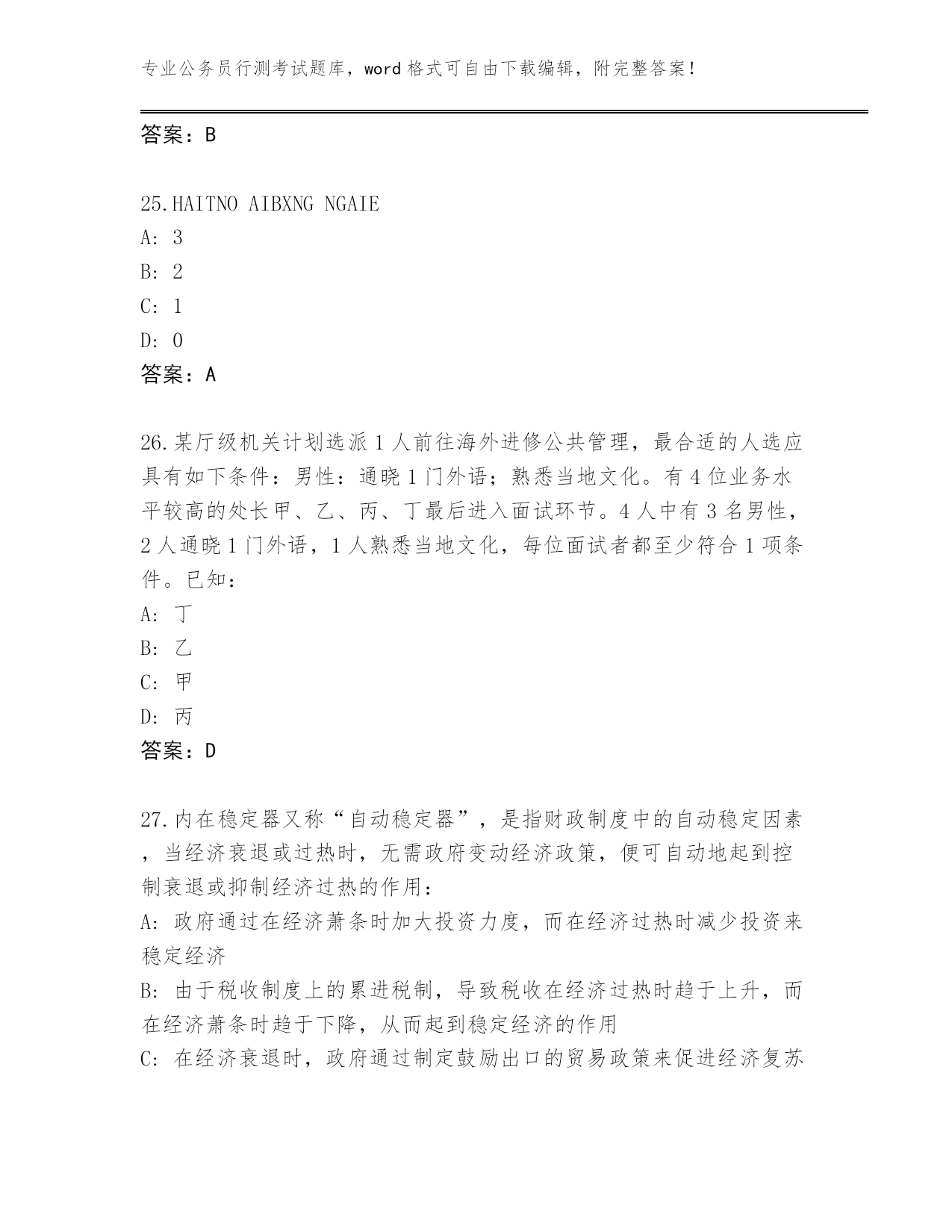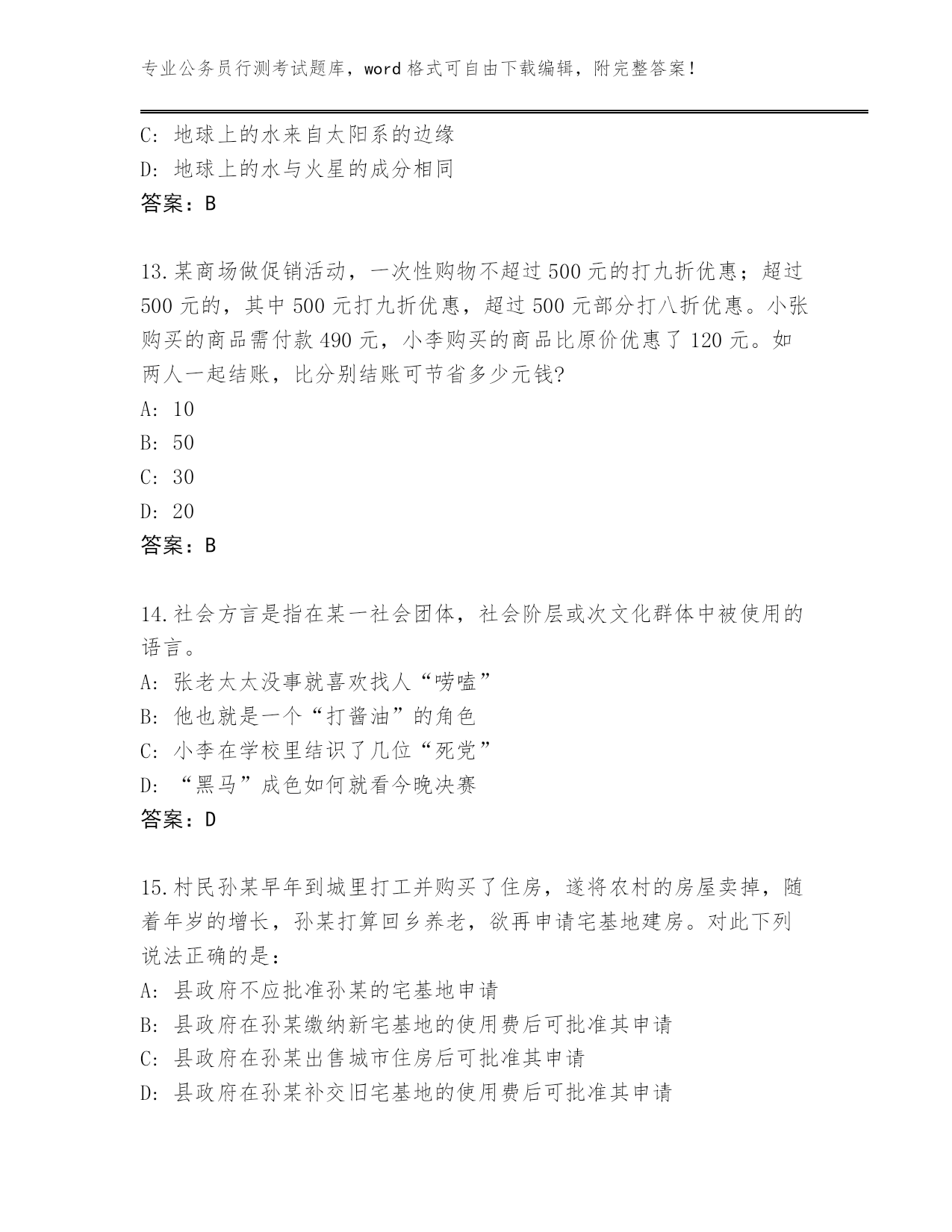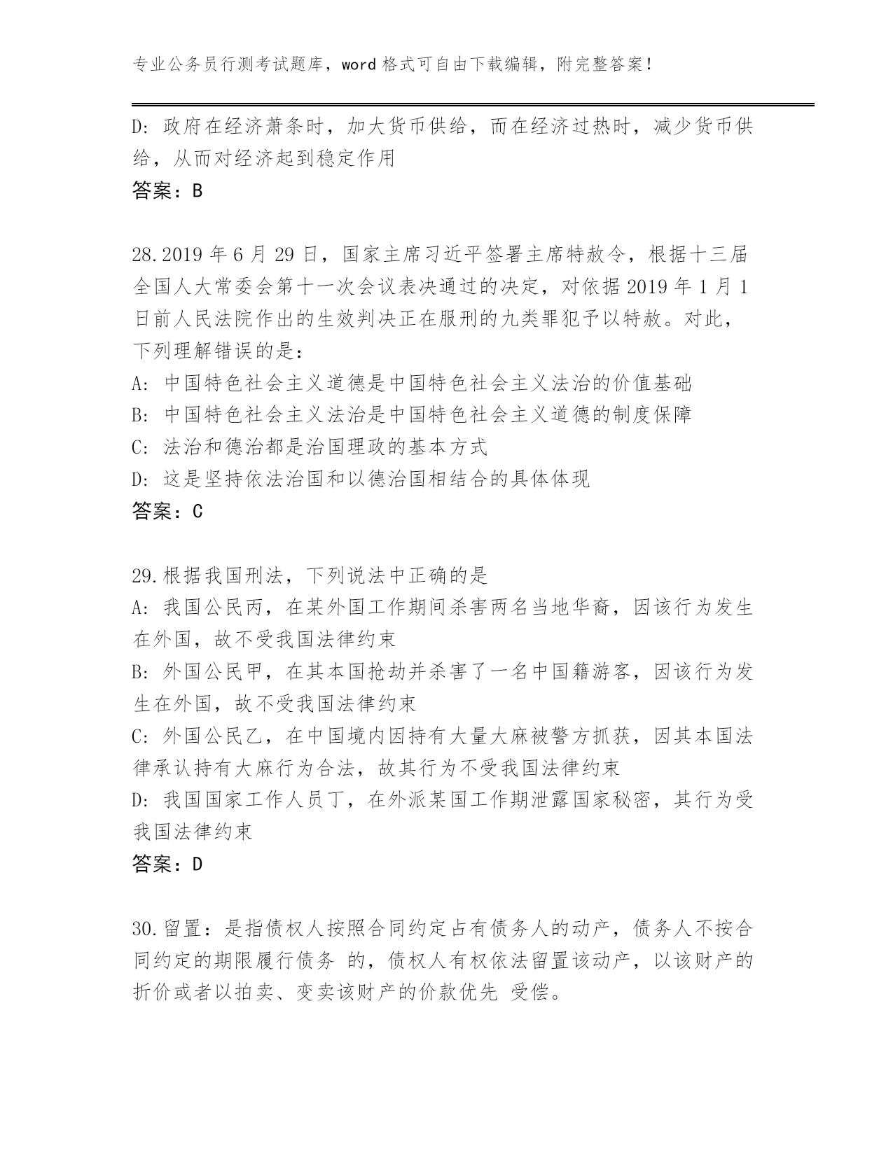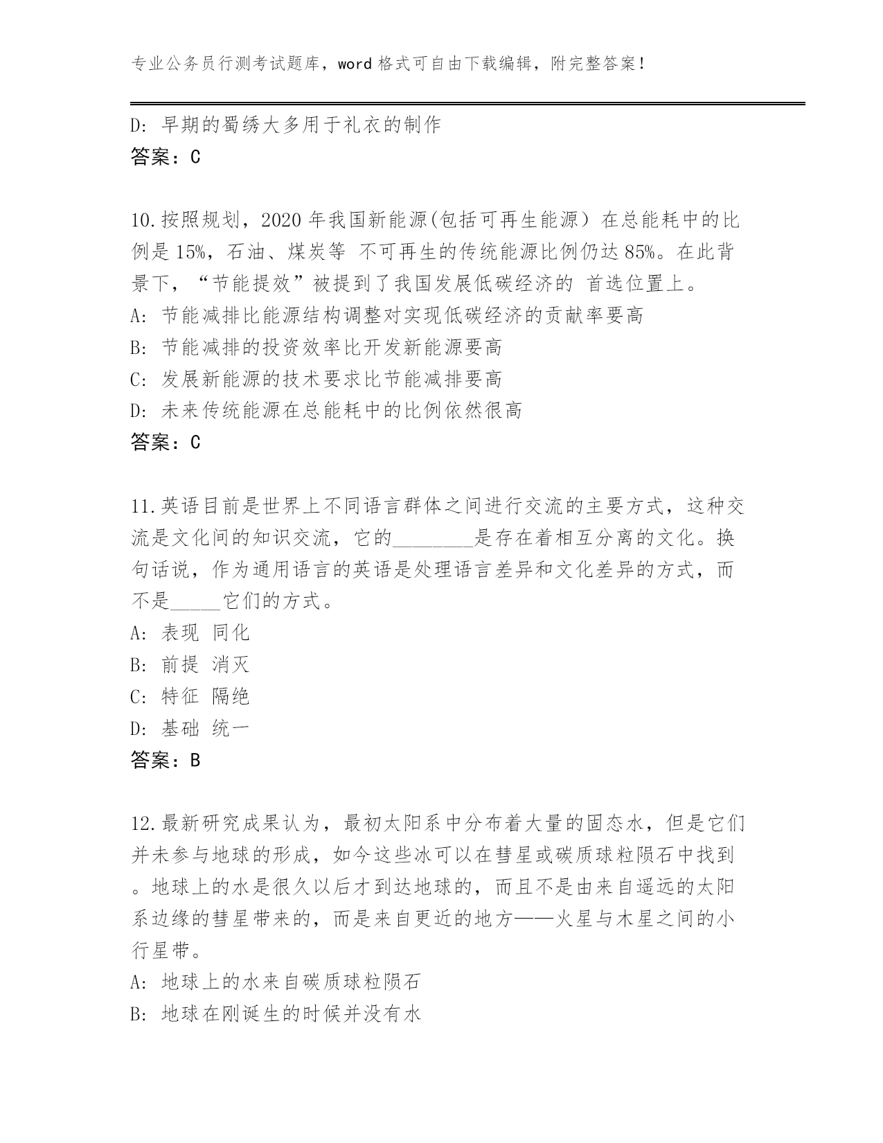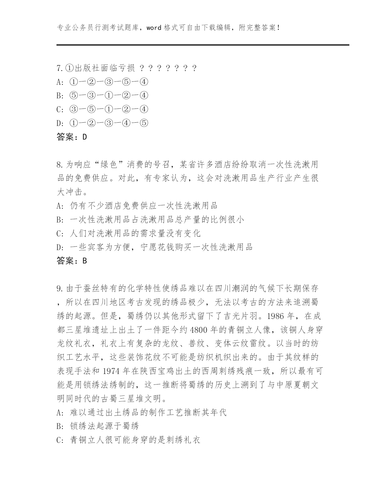 辽宁省内部使用公务员行测考试题库往年题考