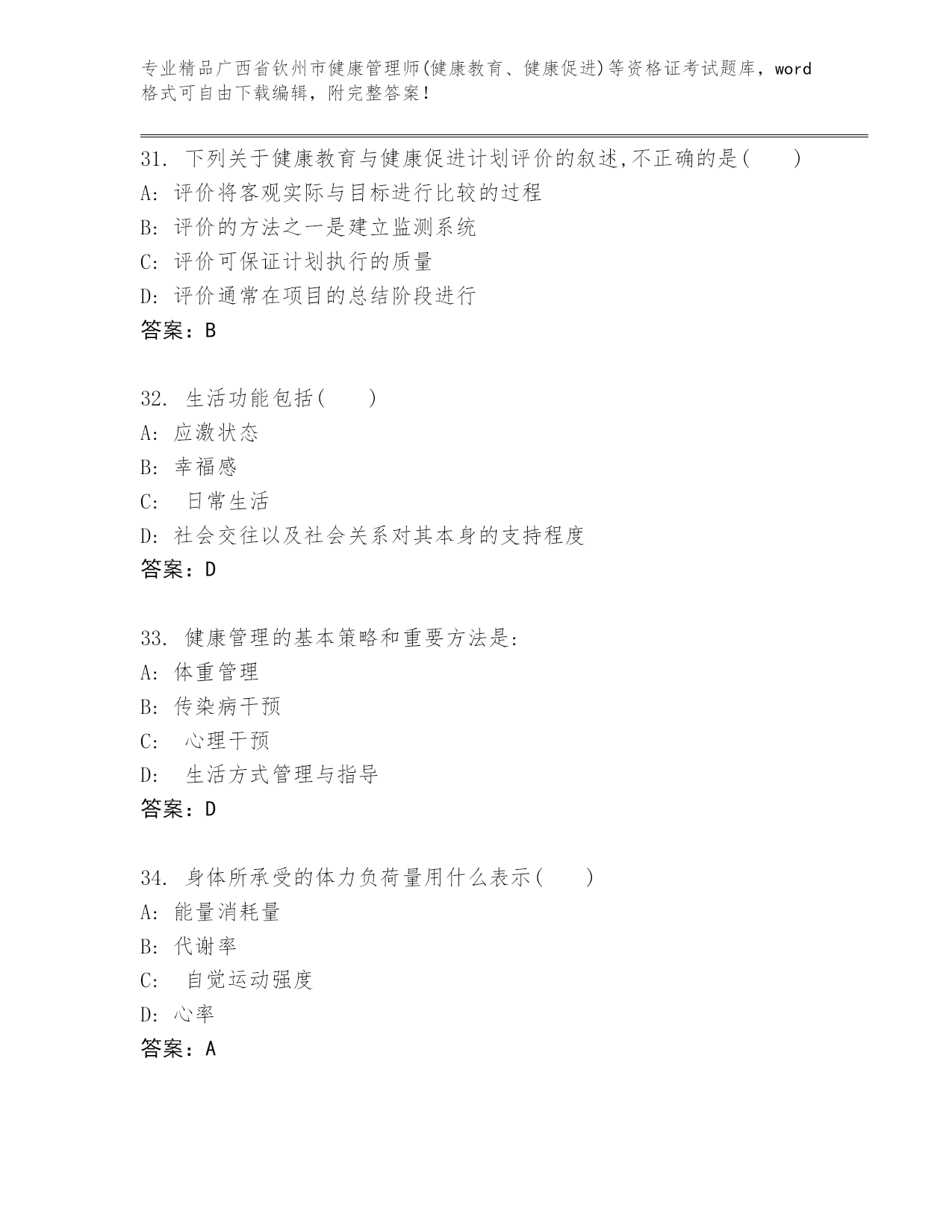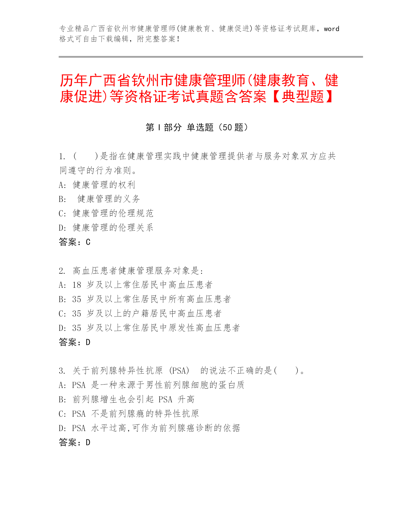 历年广西省钦州市健康管理师(健康教育、健康促进)等资格证考试真题含答案【典型题】