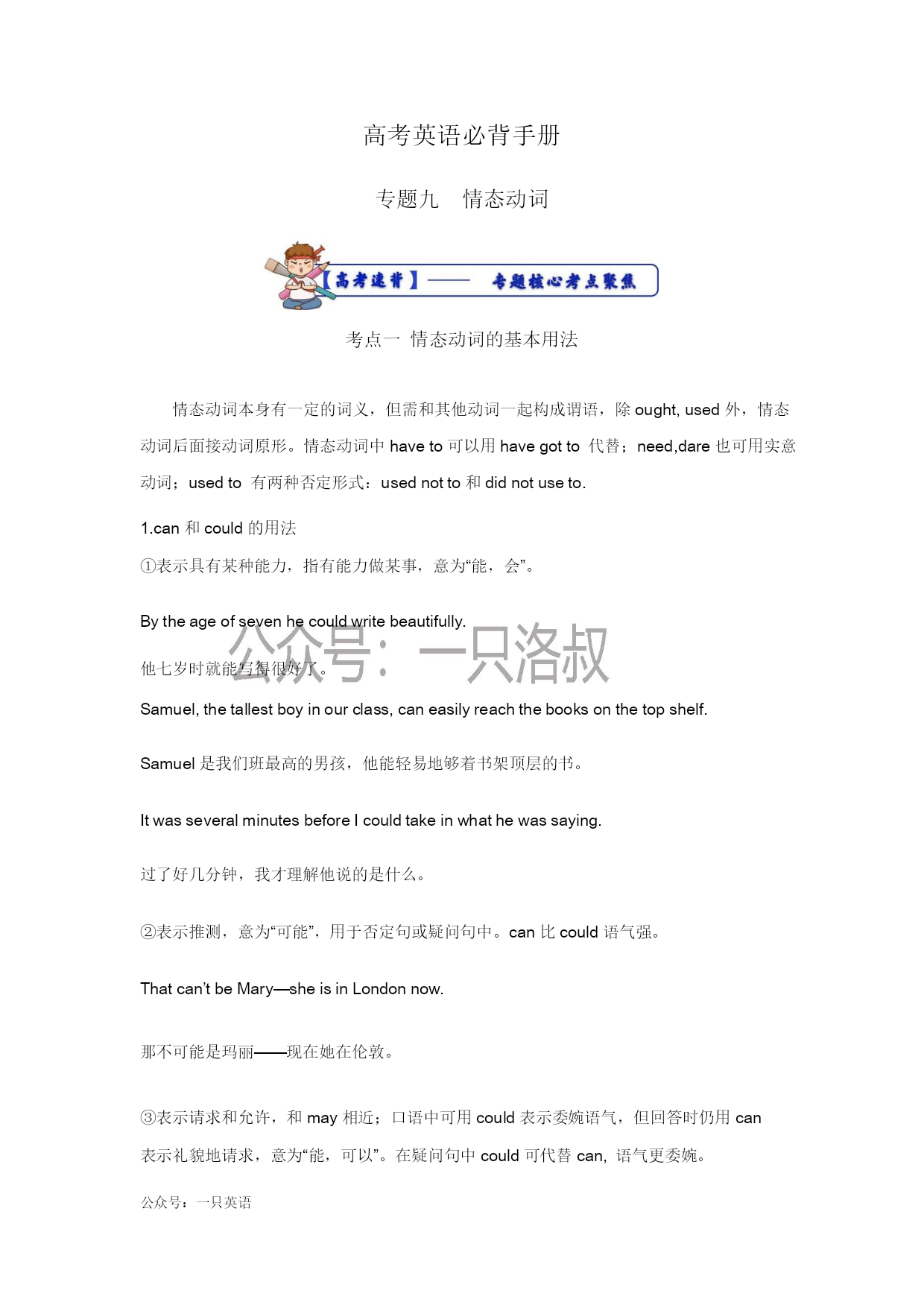 专题 09 高考英语语法【情态动词】核心考点聚焦 -高考英语必背手册
