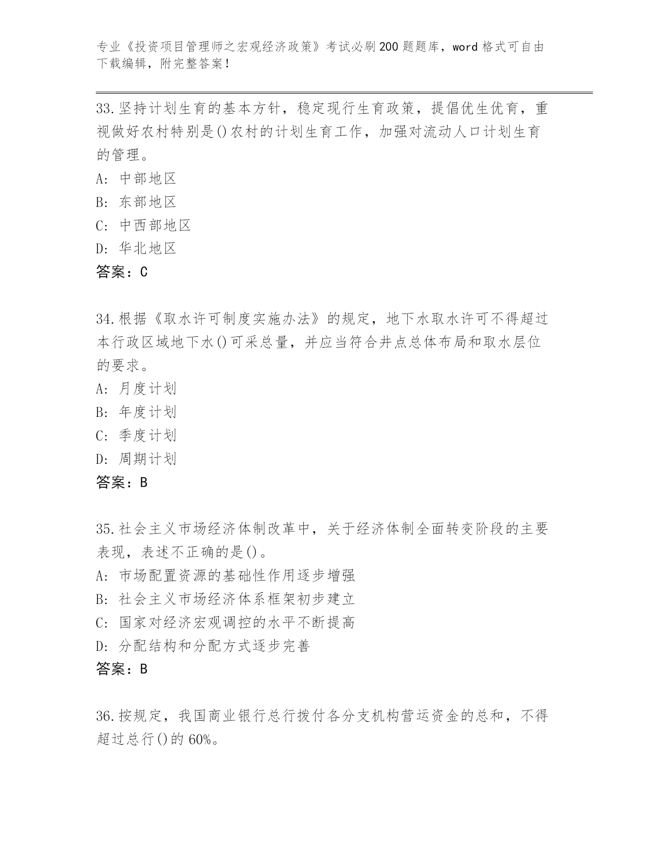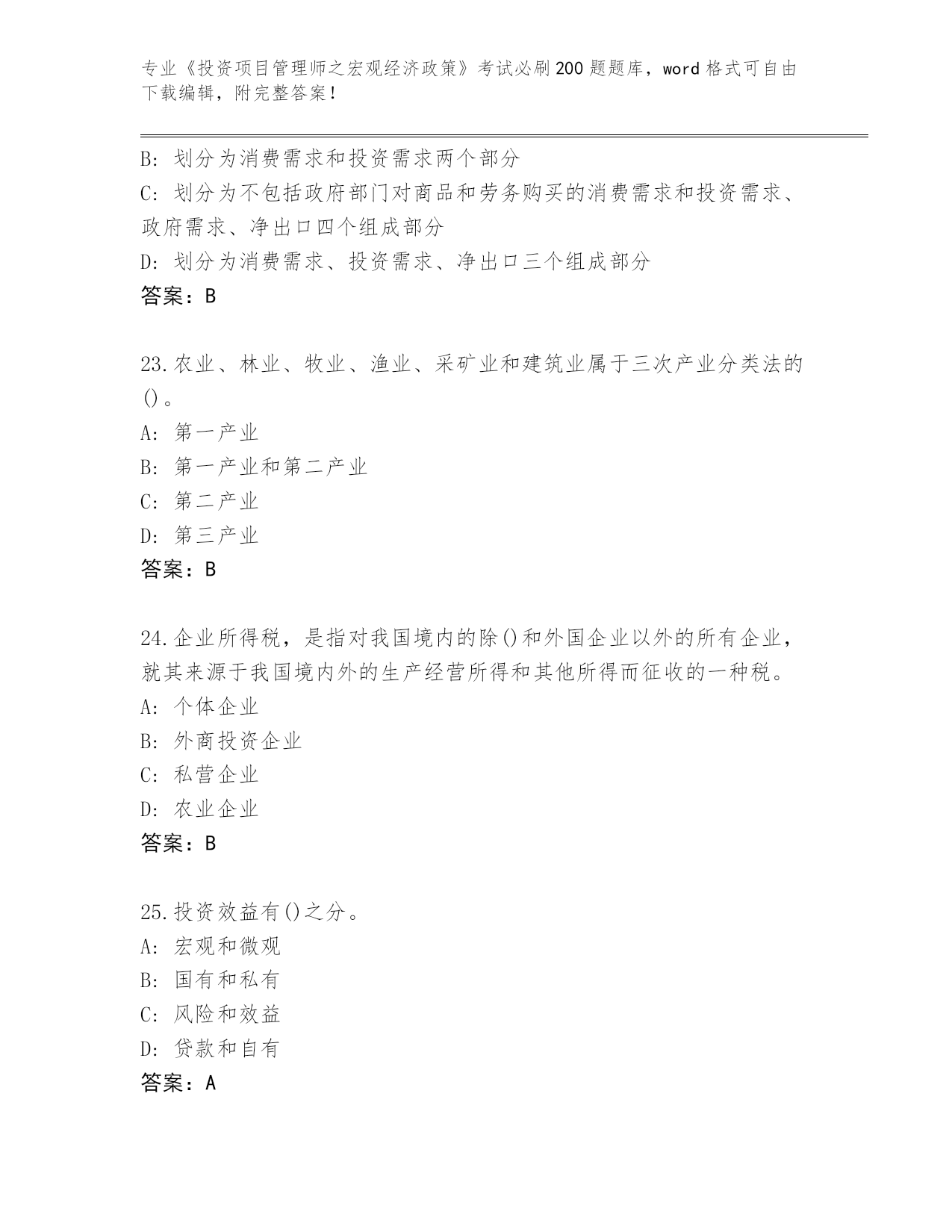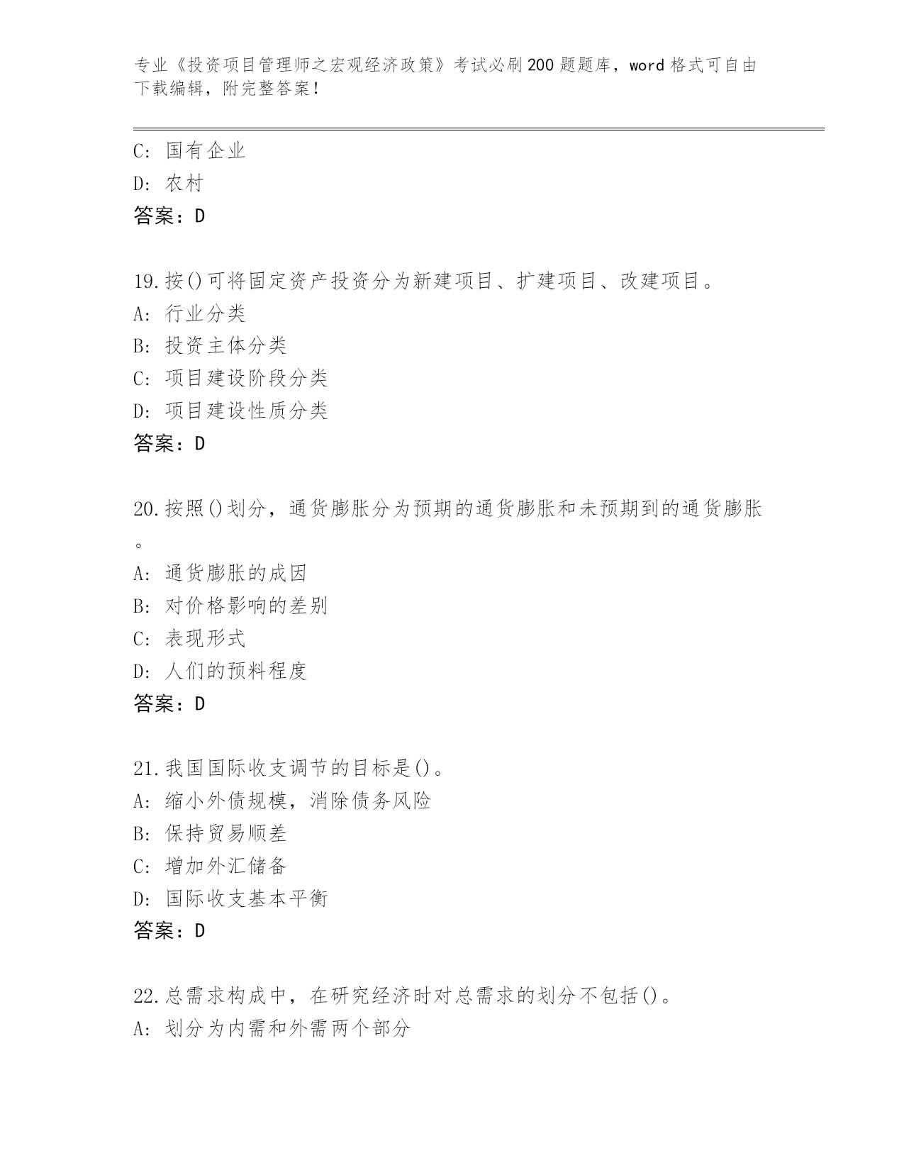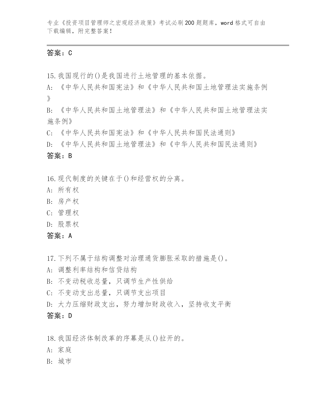 2023-24年甘肃省泾川县《投资项目管理师之宏观经济政策》考试必刷200题题库及答案【新】