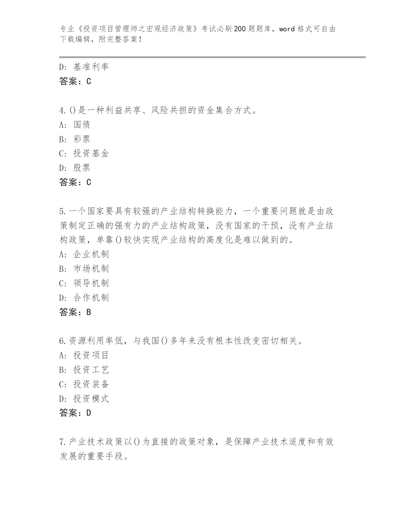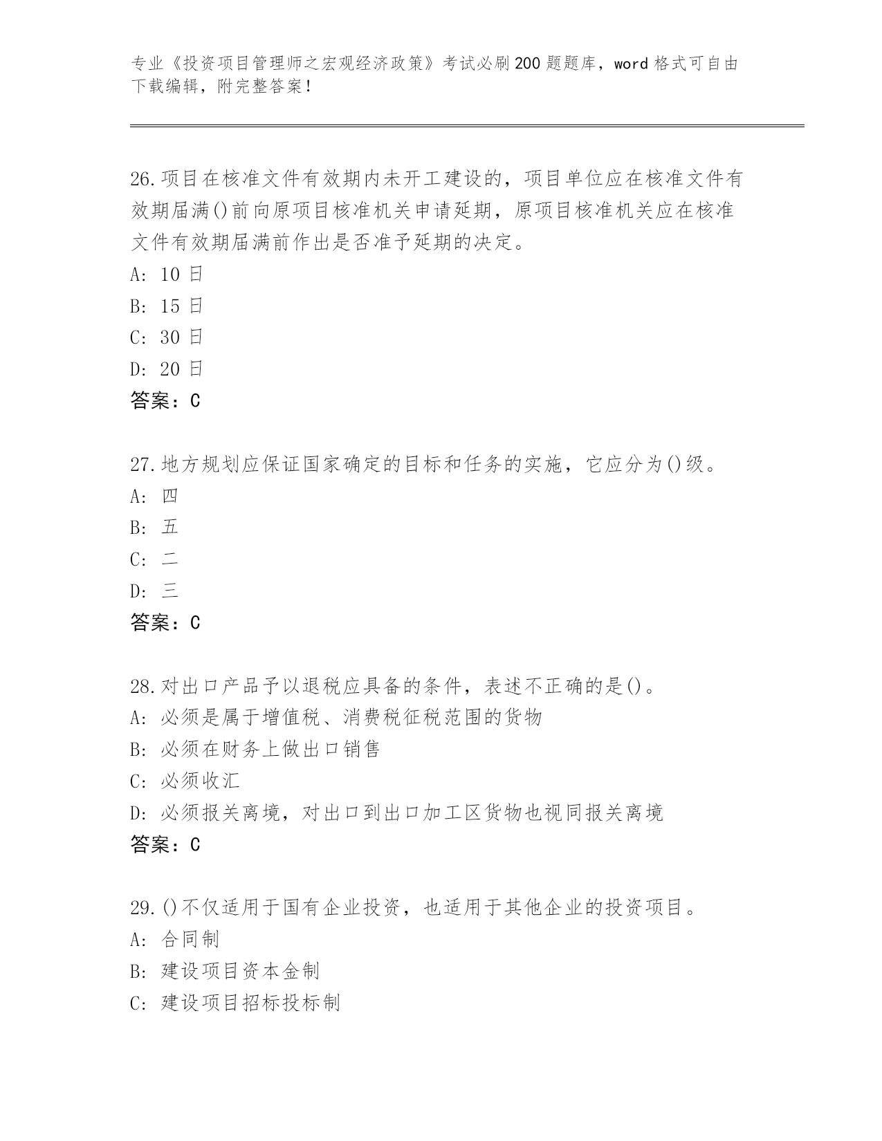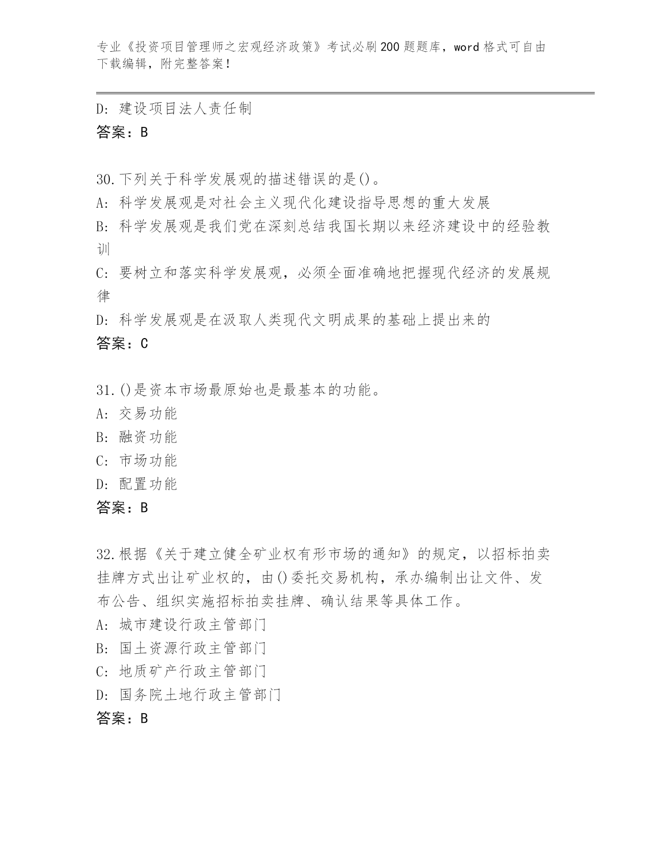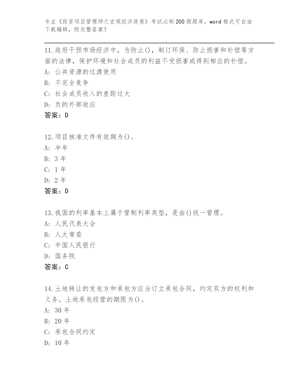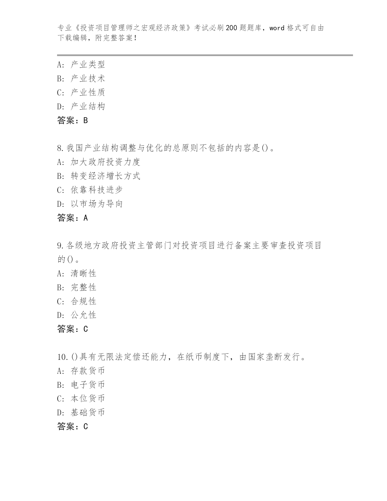 2023-24年甘肃省泾川县《投资项目管理师之宏观经济政策》考试必刷200题题库及答案【新】