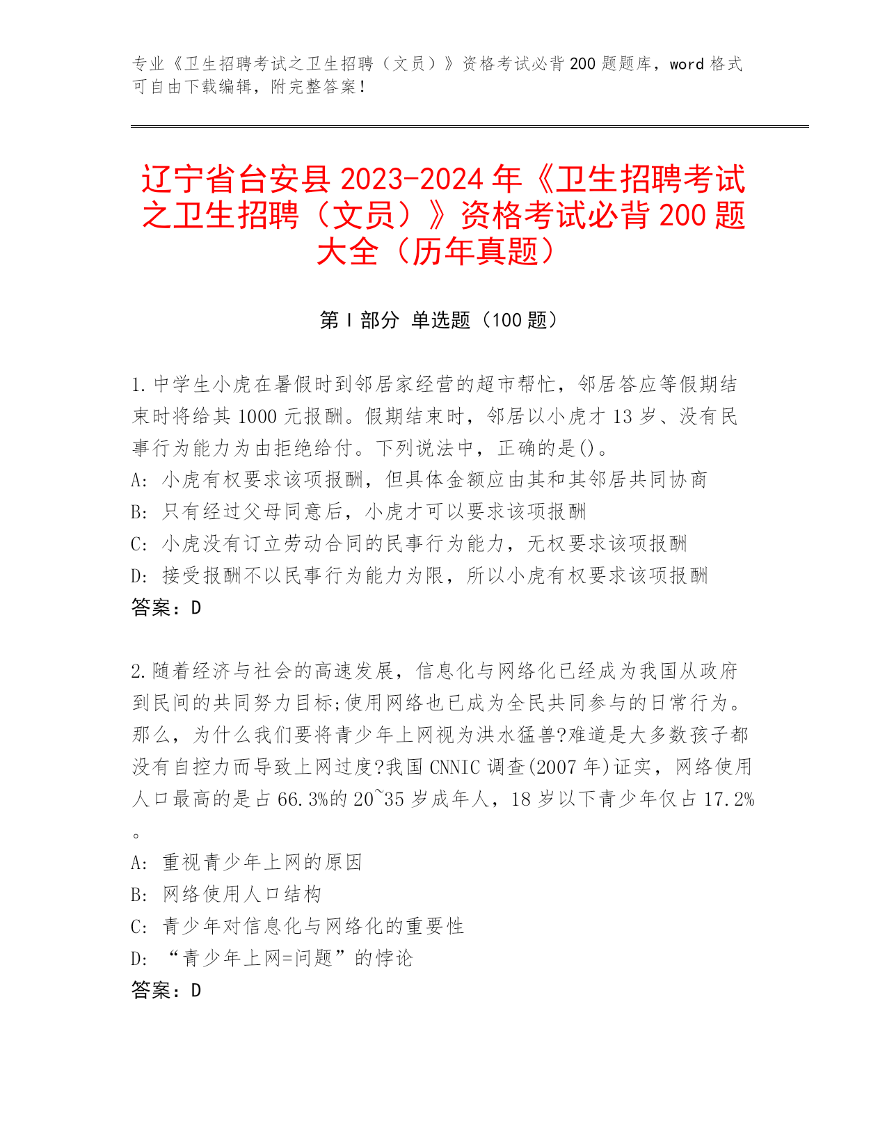 辽宁省台安县2023-2024年《卫生招聘考试之卫生招聘(文员)》资格考试必背200题大全(历年真题)