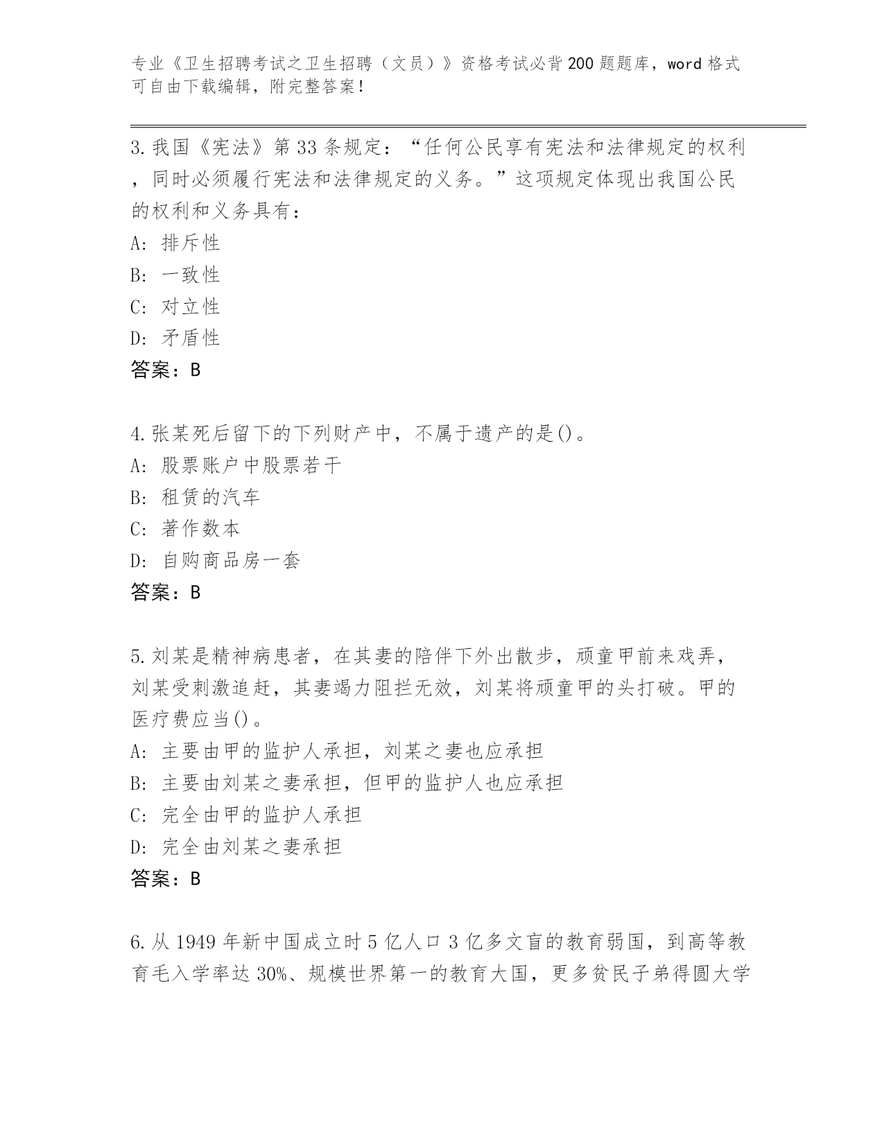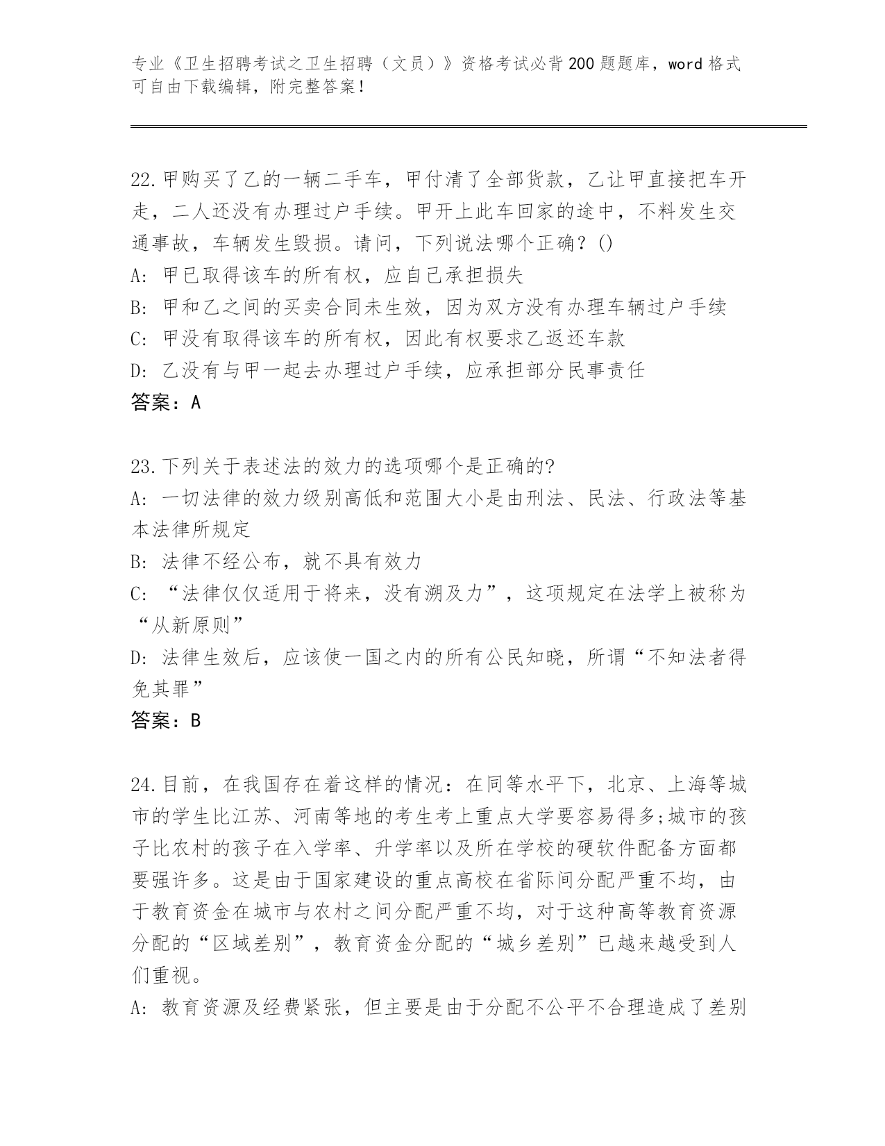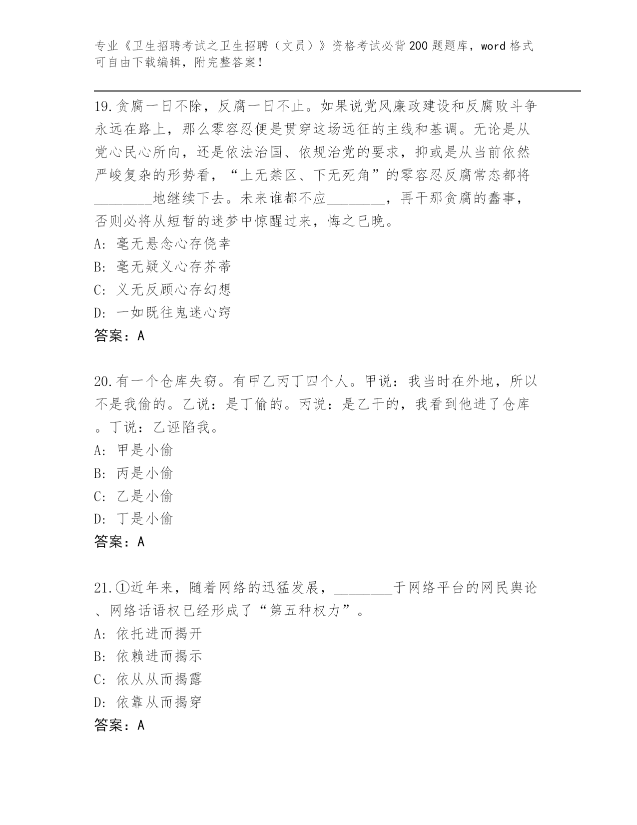 2024年河南省《卫生招聘考试之卫生招聘(文员)》资格考试必背200题大全(历年真题)