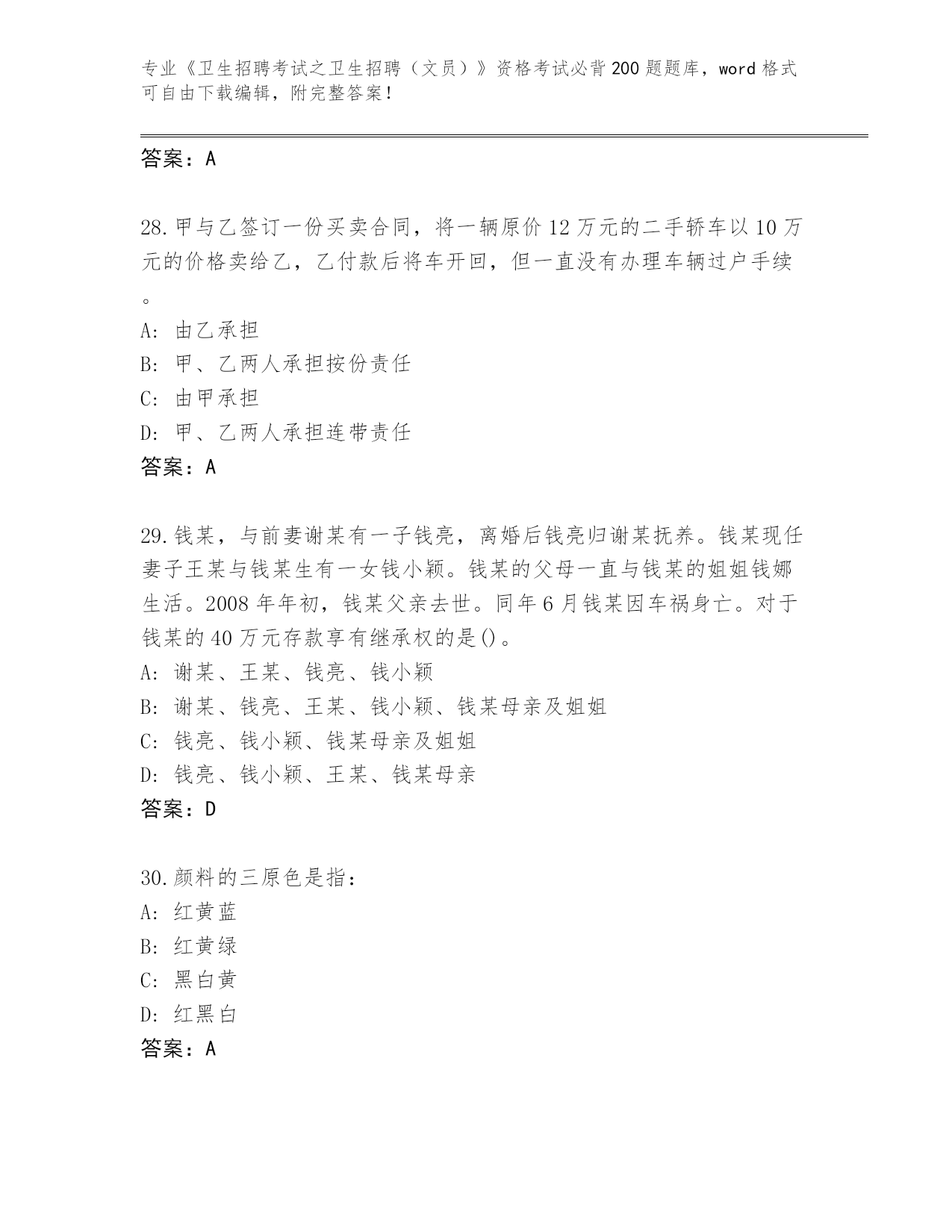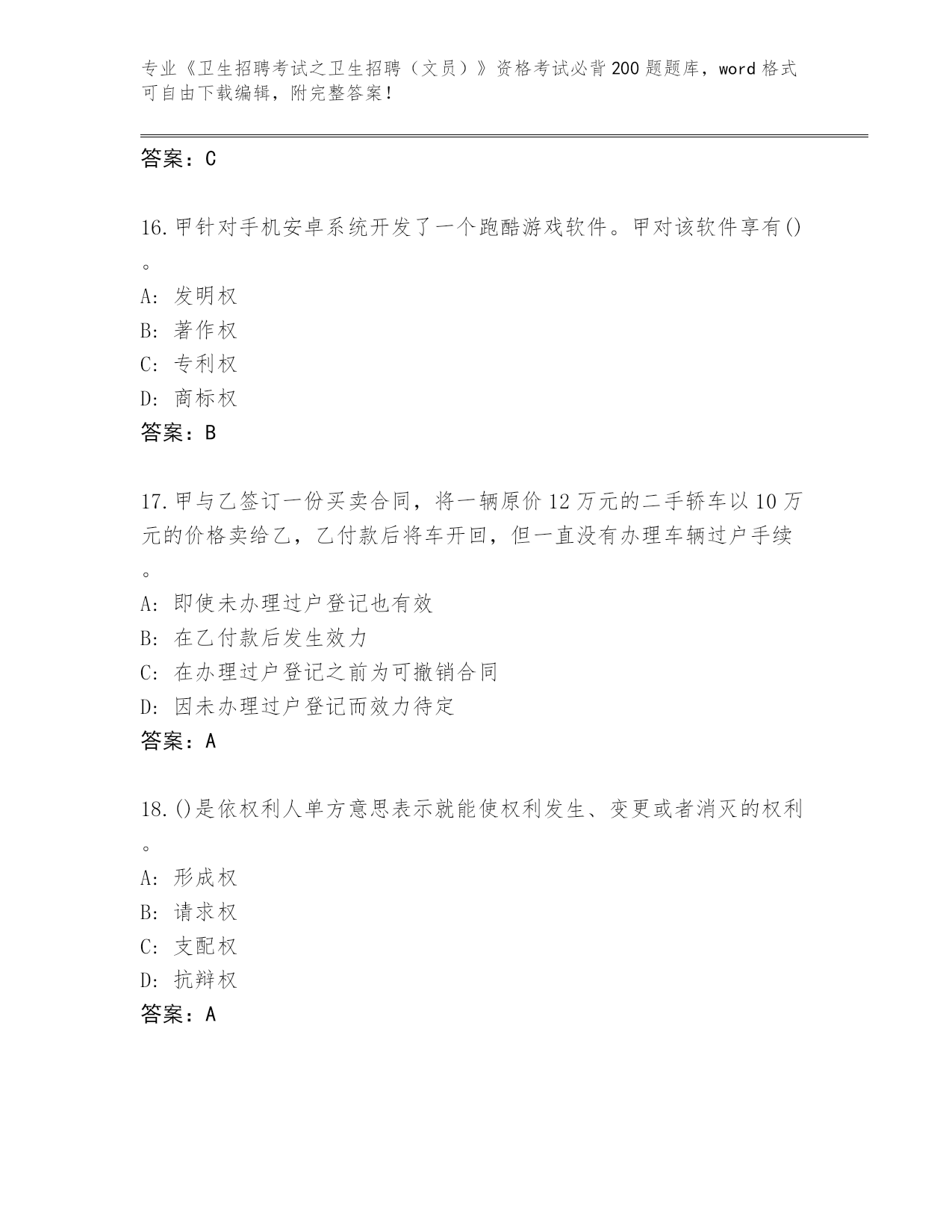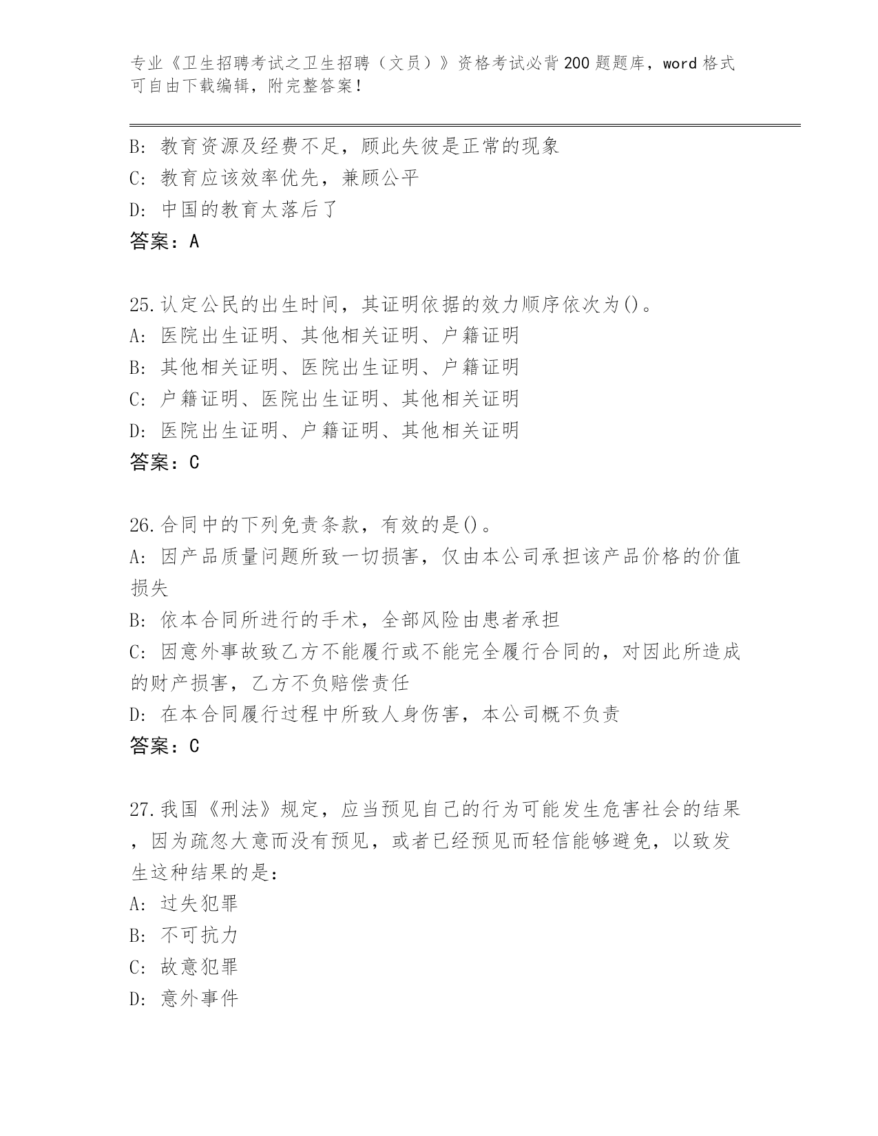 2024年河南省《卫生招聘考试之卫生招聘(文员)》资格考试必背200题大全(历年真题)
