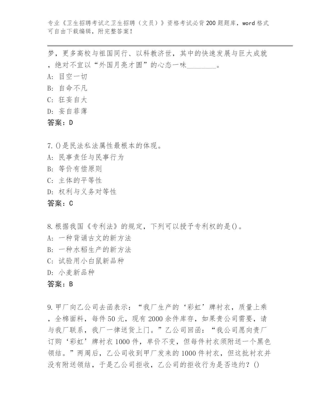 辽宁省新抚区2024年《卫生招聘考试之卫生招聘(文员)》资格考试必背200题题库大全及答案【历年真题】