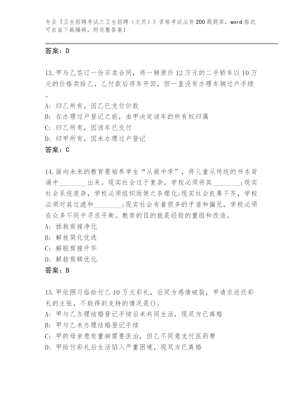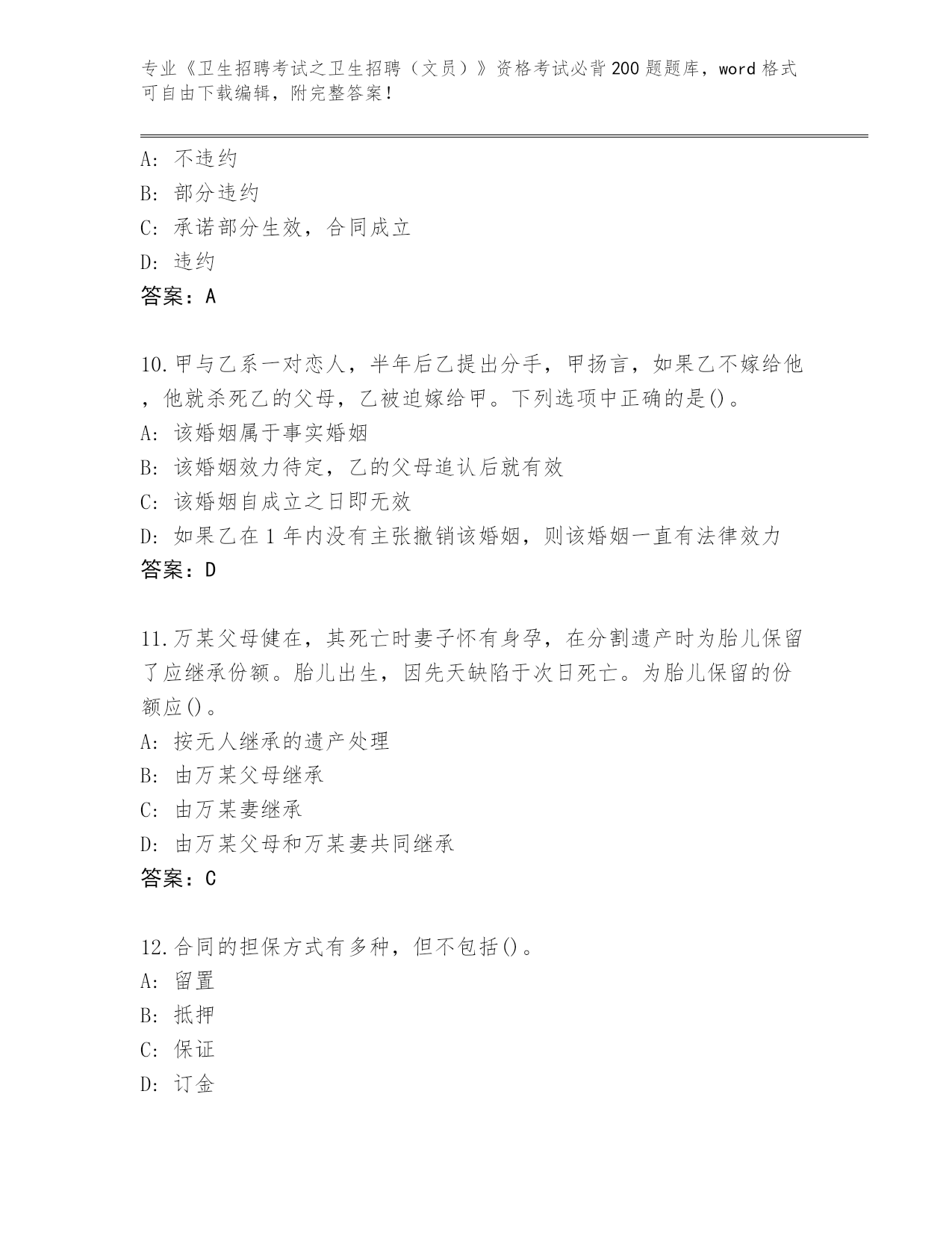 辽宁省内部使用《卫生招聘考试之卫生招聘(文员)》资格考试必背200题题库及答案【历年真题】