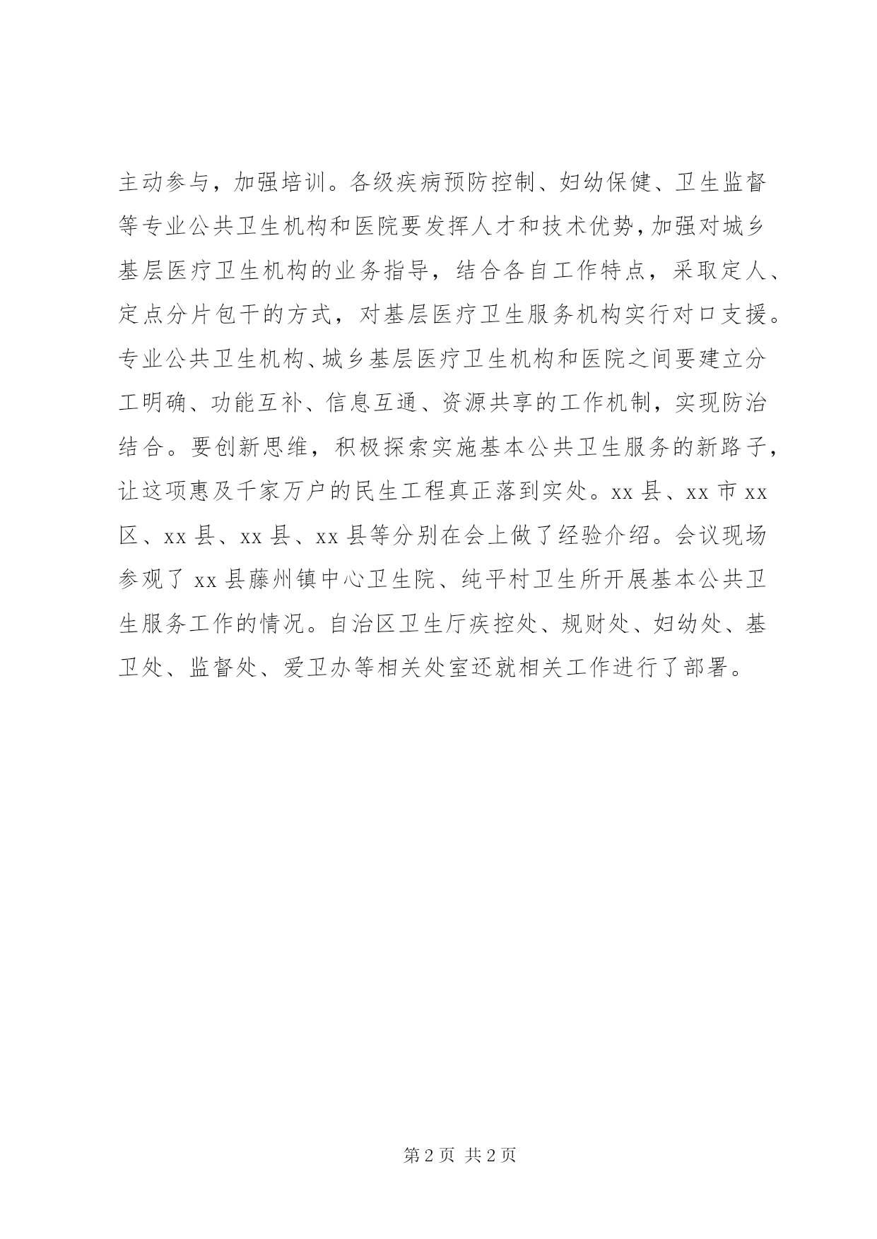 第PAGE\*Arabic\*MERGEFORMAT2页共NUMPAGES\*MERGEFORMAT2页社区公共卫生服务工作简报20**年8月28日至29日,自治区卫生厅在xx县召开全区基本公共卫生服务工作现场会,总结交流基本公共卫生服务工作经验,分析存在问题和面临困难,研究部署下一步工作。自治区卫生厅副厅长夏宁出席会议并做重要讲话。各市卫生局负责基本公共卫生服务项目协调工作的科室负责人,各县(市、区)卫生局局长、基本公共卫生服务管理办公室主任等300多人参加了会议。夏宁副厅长指出,促进基本公共卫生服务均等化,为城乡居民免费提供基本公共卫生服务,是坚持以人为本、落实预防为主卫生工作方针的具体体现,也是我国公共卫生领域的一项长期的、基础性的制度安排。自治区人民政府十分重视这项工作,把它纳入了自治区为民办实事专项考评和设区市绩效考评指标体系。近三年来,卫生部门积极加强与其他部门的联系和协作,共同努力,攻坚克难,扎实推进基本公共卫生服务工作取得较好的成效。但目前我区基本公共卫生工作还存在不少的薄弱环节,依然面临许多困难。夏宁副厅长要求,各级卫生行政部门要充分发挥组织协调和管理作用,强化内部配合和协作。要进一步加强对基本公共卫生工作的领导,调整和充实基本公共卫生服务管理力量,明确卫生行政职能部门内部分工,落实责任制,建立主要领导亲自抓、分管领导具体抓、职能部门合力抓、技术指导单位配合抓的工作机制。各级专业公共卫生机构和医院要充分发挥技术指导作用,主动参与,加强培训。各级疾病预防控制、妇幼保健、卫生监督等专业公共卫生机构和医院要发挥人才和技术优势,加强对城乡基层医疗卫生机构的业务指导,结合各自工作特点,采取定人、定点分片包干的方式,对基层医疗卫生服务机构实行对口支援。专业公共卫生机构、城乡基层医疗卫生机构和医院之间要建立分工明确、功能互补、信息互通、资源共享的工作机制,实现防治结合。要创新思维,积极探索实施基本公共卫生服务的新路子,让这项惠及千家万户的民生工程真正落到实处。xx县、xx市xx区、xx县、xx县、xx县等分别在会上做了经验介绍。会议现场参观了xx县藤州镇中心卫生院、纯平村卫生所开展基本公共卫生服务工作的情况。自治区卫生厅疾控处、规财处、妇幼处、基卫处、监督处、爱卫办等相关处室还就相关工作进行了部署。