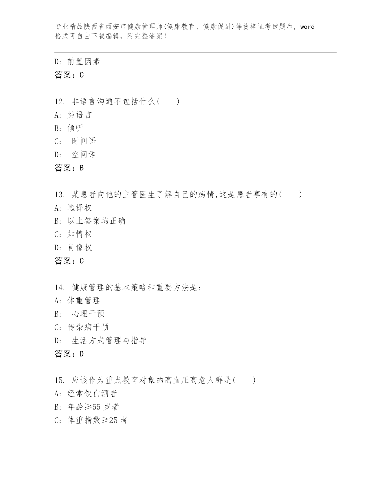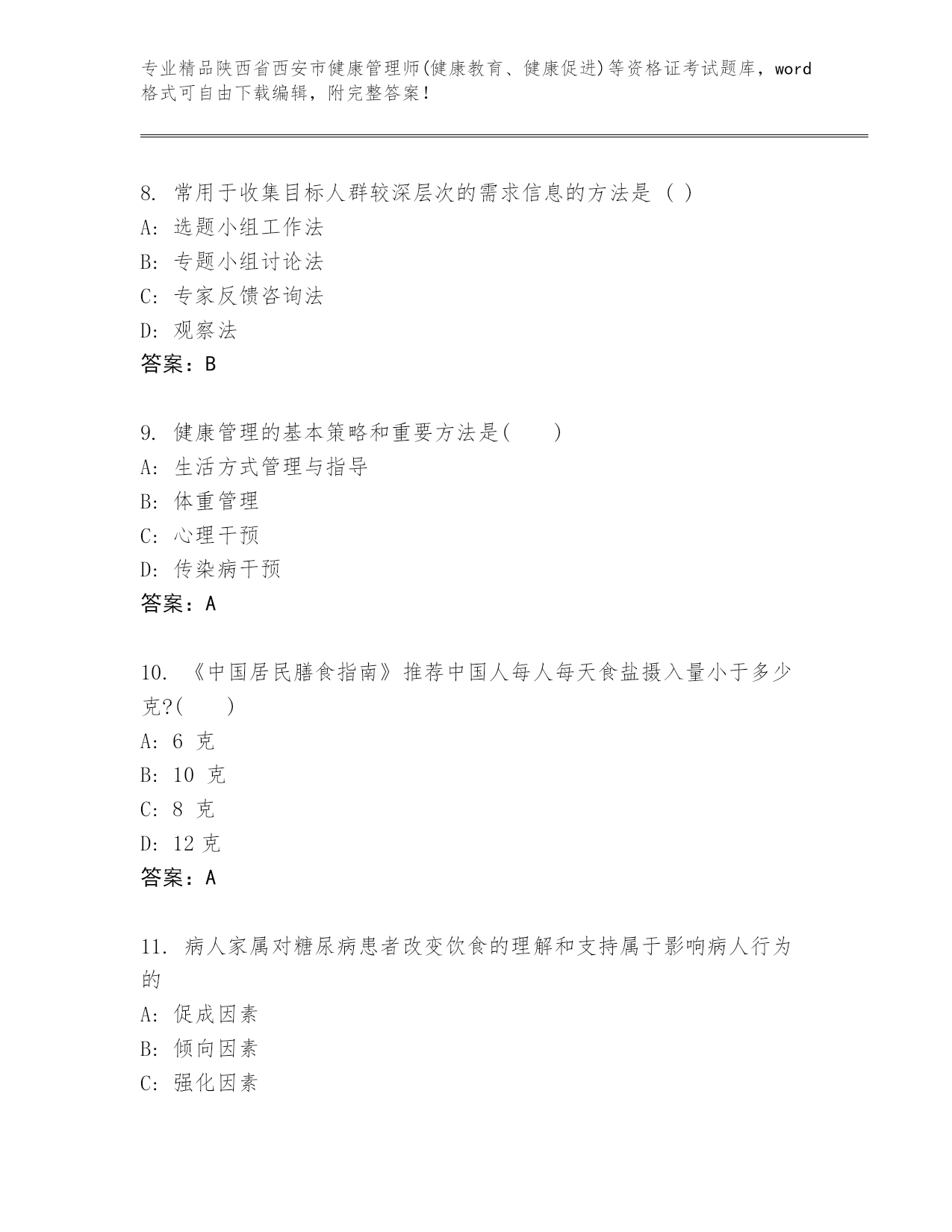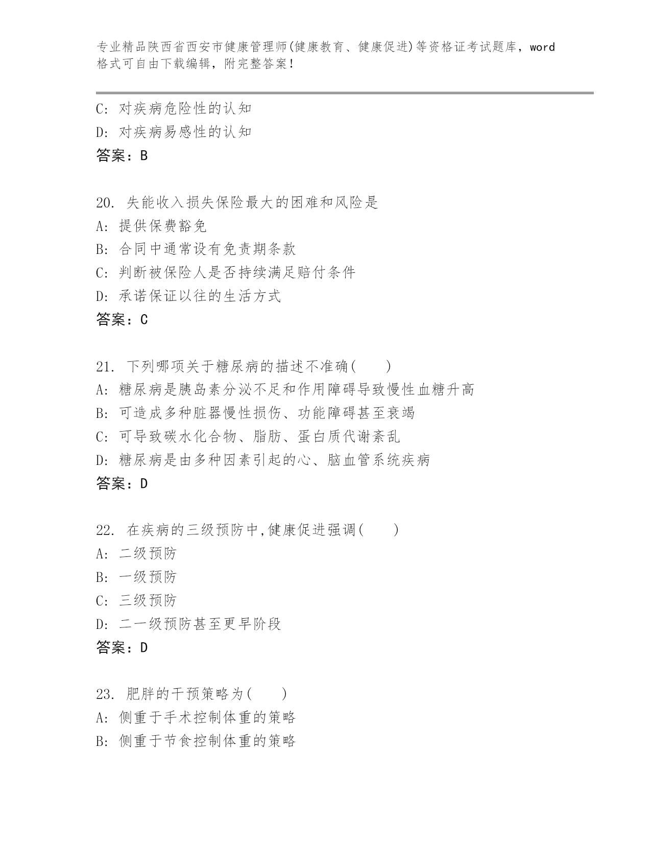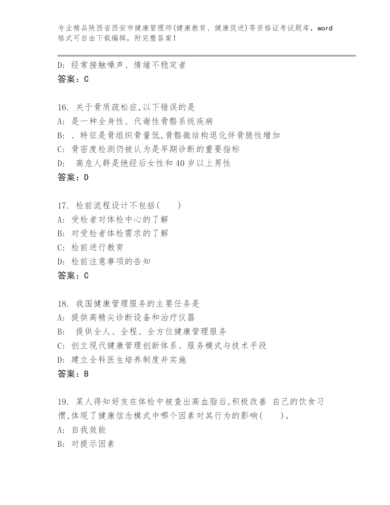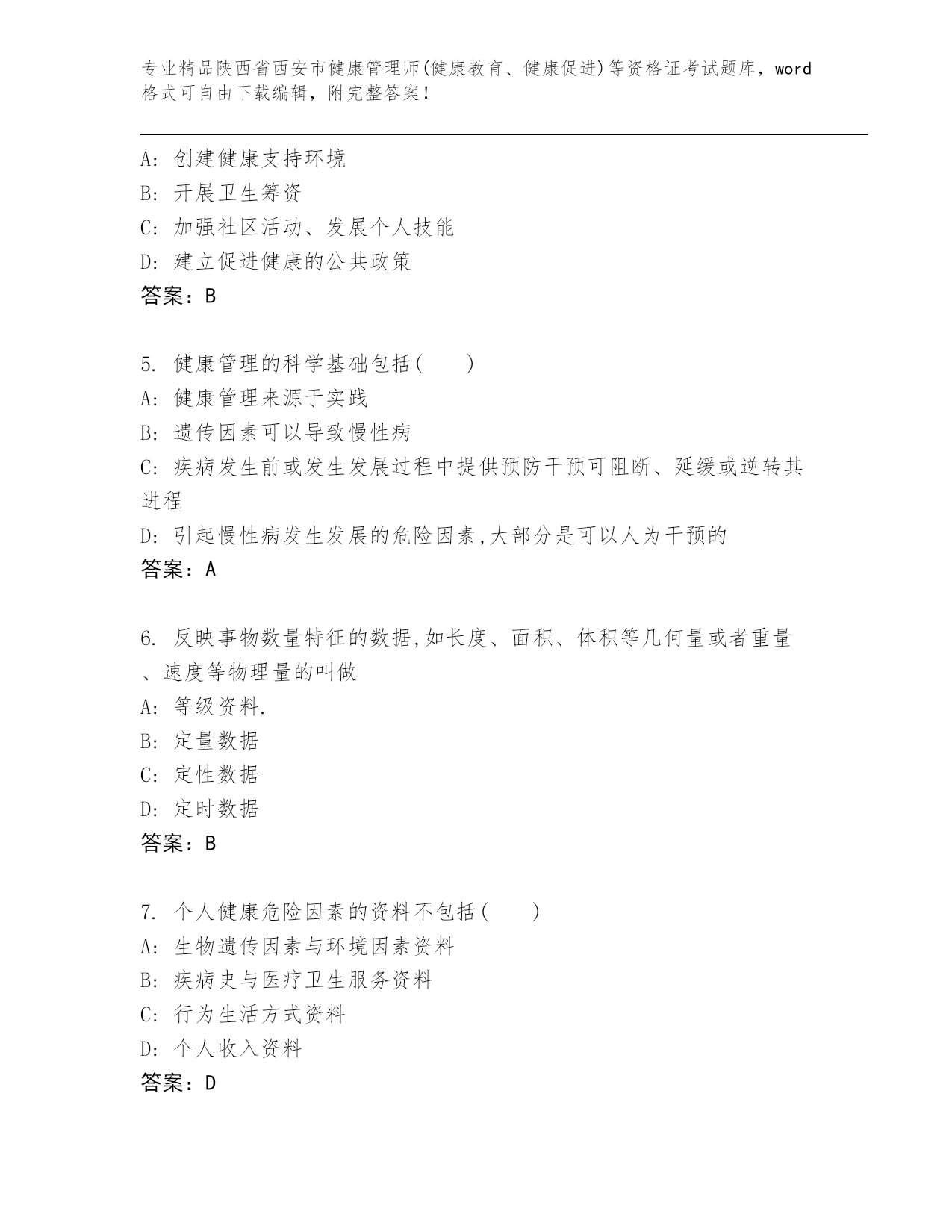 陕西省西安市健康管理师(健康教育、健康促进)等资格证考试精品题库精品(典型题)