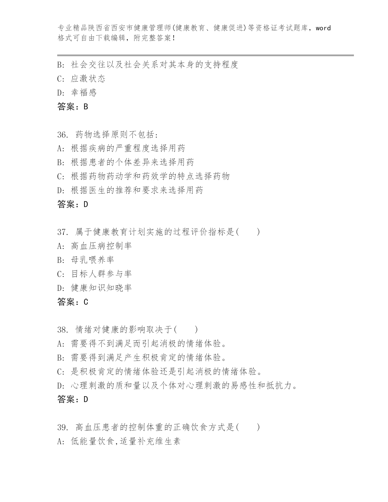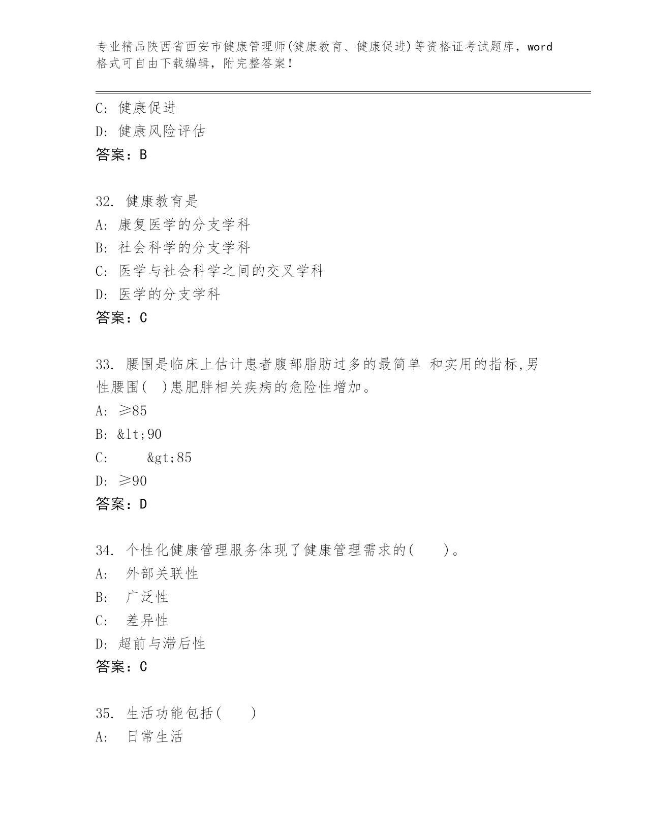 陕西省西安市健康管理师(健康教育、健康促进)等资格证考试精品题库精品(典型题).docx