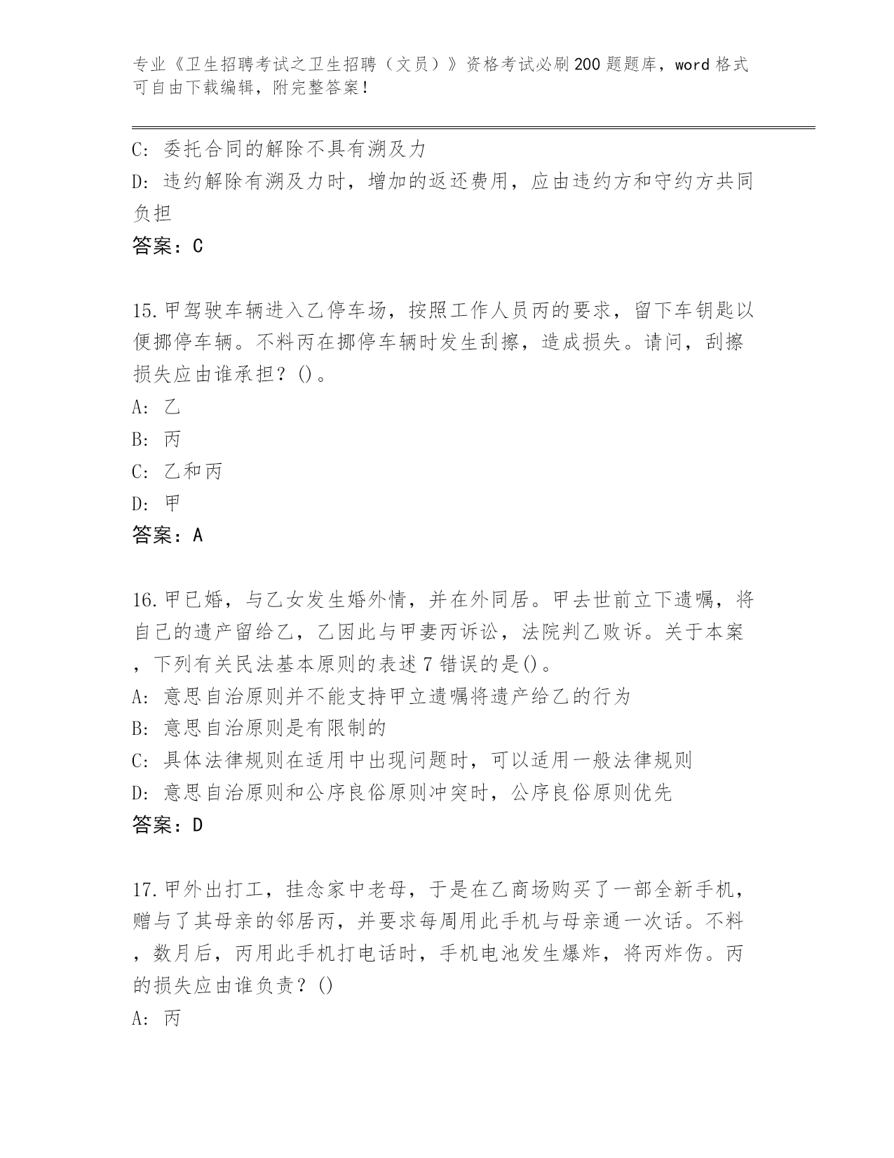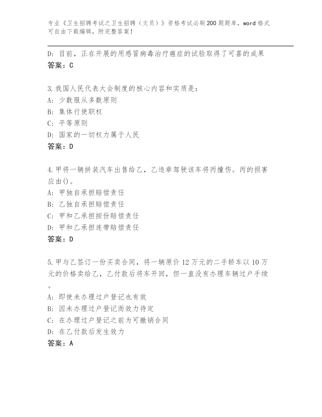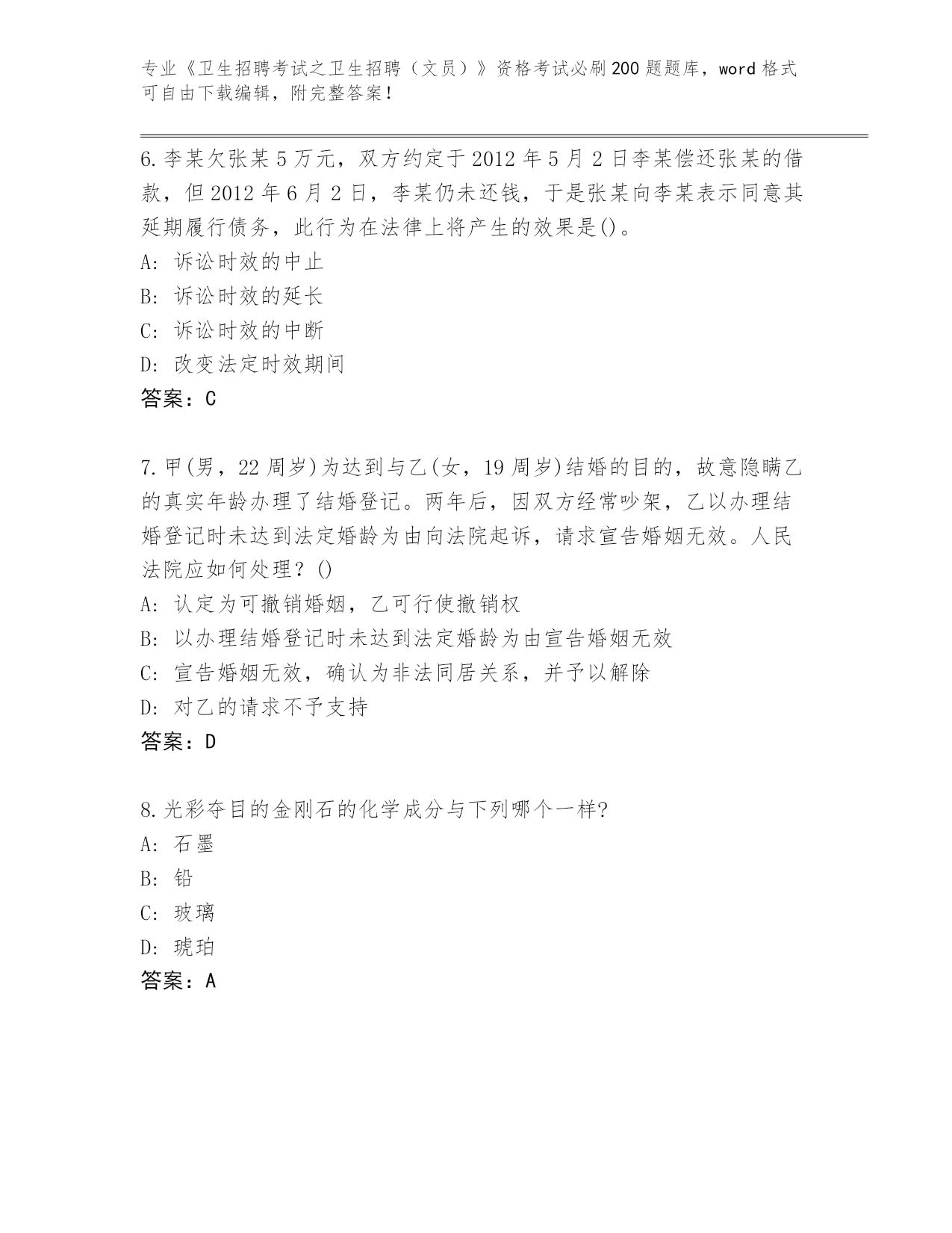 完整版福建省《卫生招聘考试之卫生招聘(文员)》资格考试必刷200题题库附参考答案(夺分金卷)
