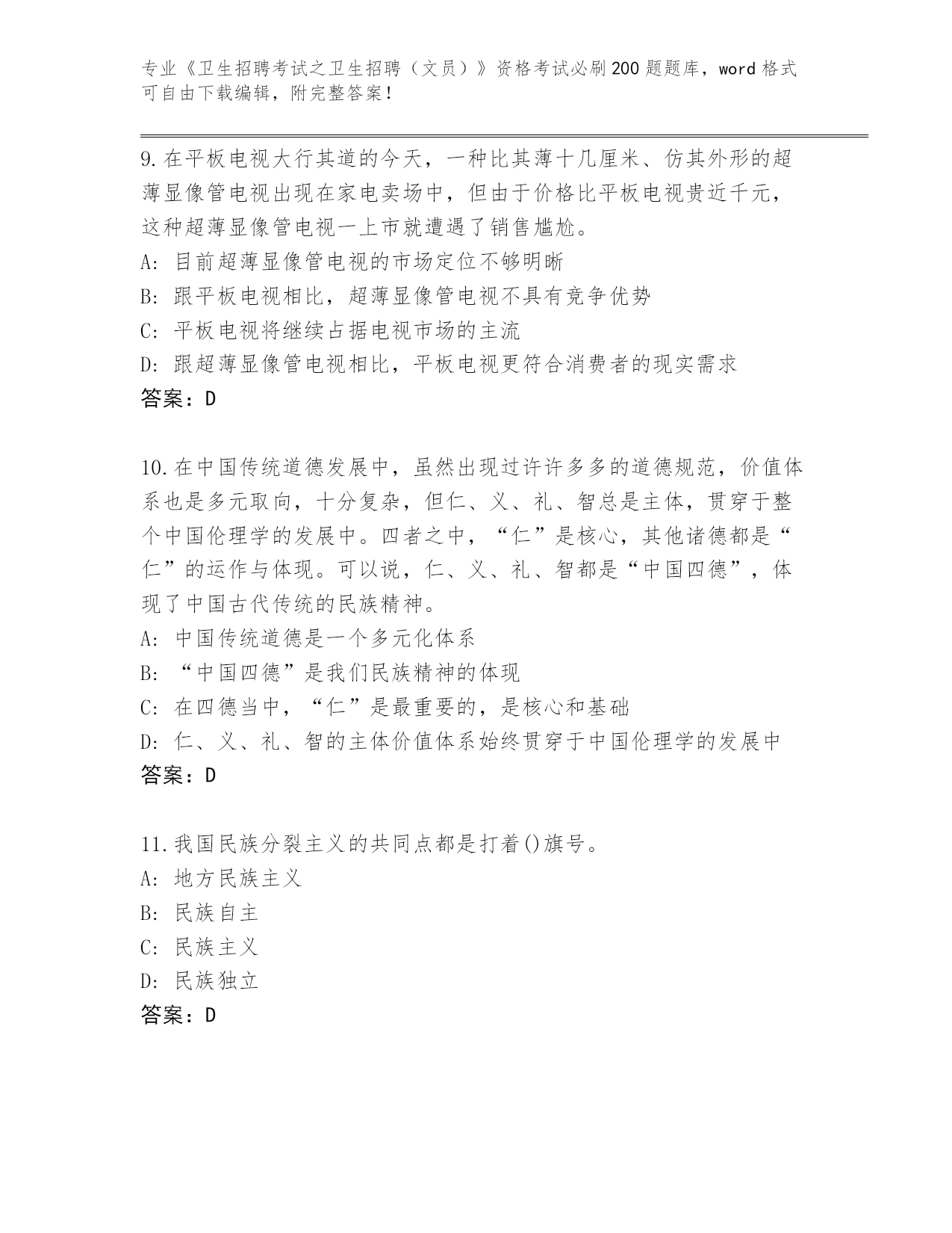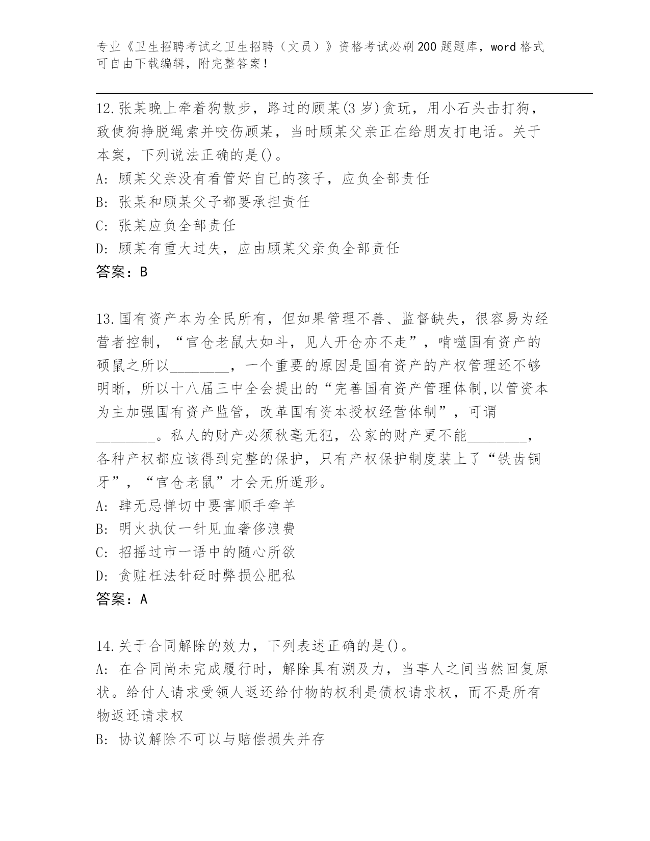 福建省柘荣县2024年《卫生招聘考试之卫生招聘(文员)》考试必刷200题王牌题库【综合卷】