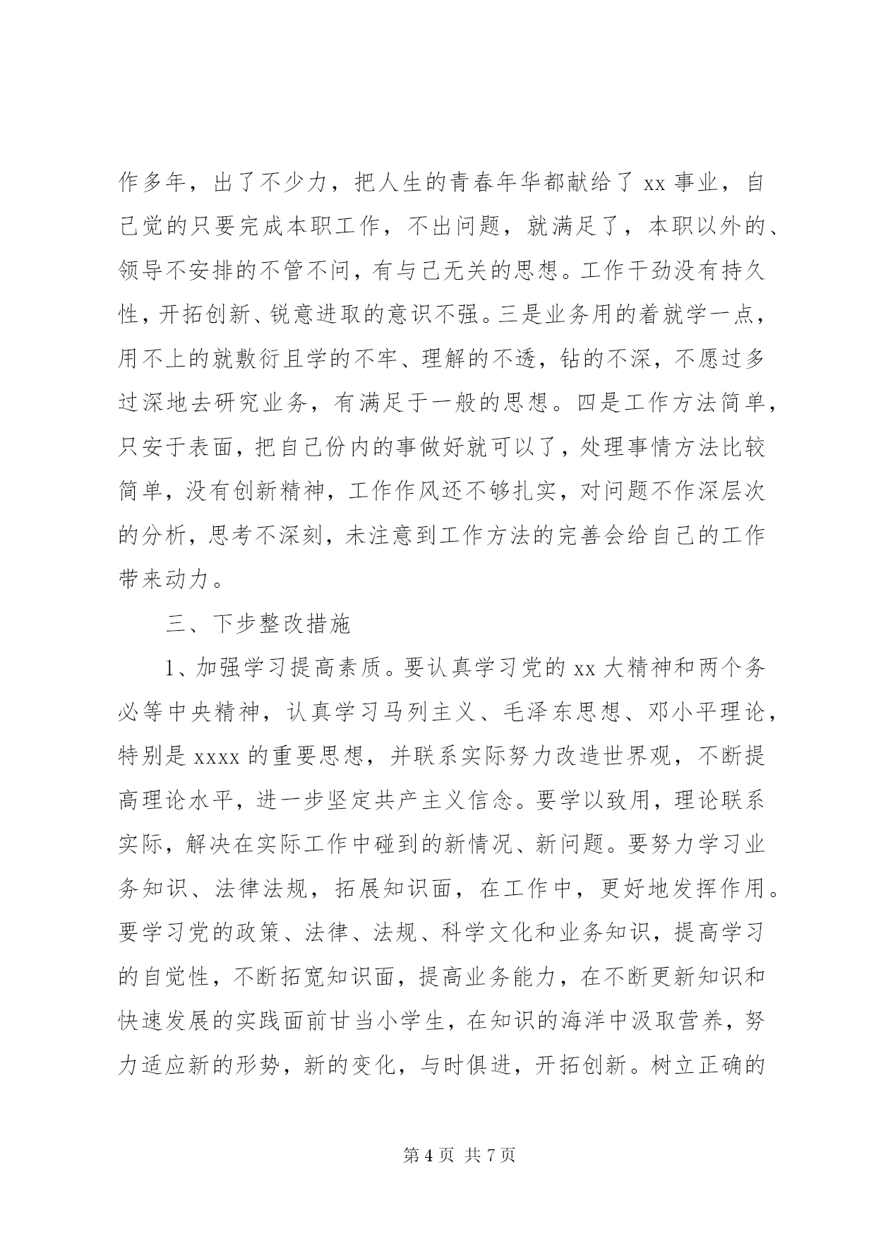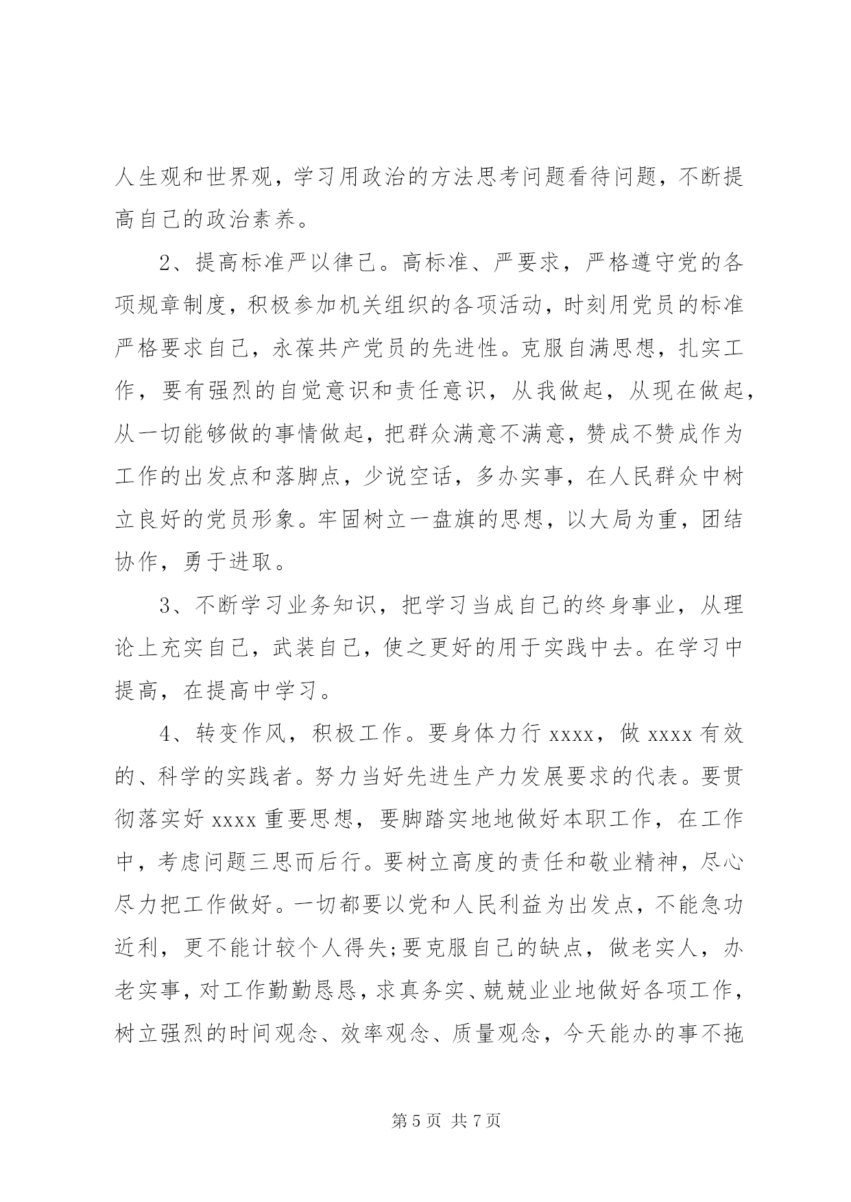 第PAGE\*Arabic\*MERGEFORMAT7页共NUMPAGES\*MERGEFORMAT7页公务员党性分析材料公务员个人党性分析材料—党性分析报告这次在全市开展的保持共产党员先进性教育活动中,按照市委和**党委保持共产党员先进性教育活动实施方案的安排,认真遵守党委的规定,遵守学习时间,认真学习了各级关于开展保持共产党员先进性教育活动的意见和各级领导的重要讲话,系统地学习了xx大报告、党章、《保持共产党员先进性教育读本》等,按照党委《保持共产党员先进性教育活动实施方案》安排的学习内容,自己利用办理业务的空闲时间和晚上、休息日进行了自学,学完了规定的学习内容,共写读书笔记26000字左右,心得体会3篇。通过理论学习,武装了头脑,更新了观念,提高了素质,振奋了精神,对保持共产党员先进性教育活动有了深刻的认识和理解,对如何永葆共产党员的先进性及在今后的工作中如何发挥共产党员的先进性,有了明确的目标。对自己有了进一步的认识,找到了差距,增强了学习的紧迫感和自觉性,增强了实践xxxx、始终保持共产党员先进性的自觉行动。一、个人存在的问题和不足第一理论基础知识薄弱。我对建设有中国特色社会主义,对党的路线、方针、政策是坚定拥护,但是对共产主义理想觉得有些遥远,用马列主义、毛泽东思想、邓小平理论武装头脑,指导思想做得不够。平时认为是重在政治上、行动上与党中央保持一致,积极干好本职工作就可以了,没有把自身工作同共产主义联系起来,没有用正确的理论改造主观世界和分析解决自身工作中碰到的新问题、新情况。表现为自身的学习抓不紧,没有自觉和系统地学习马列主义,毛泽东思想、邓小平理论,导致自己理论基础不够扎实,仅凭自身了解应付工作。是在政治思想上学习不够,对党和国家的一些重要精神和政策不留意不关注,也没有认真的学习和领会,缺乏一些基本的政治素质,不善于用政治的头脑思考问题,缺乏政治的敏锐性,特别是在工作中,由于认为自己只是一个小小的科员,所以看问题和做事情过于片面,也没有站在全局的角度思考问题解决问题,不利于自身工作的提高。第二是学习的自觉性不高。虽然平时比较注重学习,集体组织的各项活动和学习都能积极参加,但平时自己学习的自觉性不高,钻不进去,学习的内容不系统、不全面,对很多新事物、新知识学习的不透,掌握的不够好,不是力求全面发展,有时只注重当时用的着与本职工作有关的内容,对当前市场经济和wto知识掌握的不够,懂的较少,在平时的工作和生活中,感到知识贫乏。第三是在工作中自我要求不严格,有时会违背了爱岗敬业的精神和全心全意为人民服务的宗旨,这点从我本心上是不能接受和原谅自己的。因为在我一开始参加工作,就抱着通过在工作中的不断努力,出色的完成工作任务而实现自身的价值,把自己的知识和年轻人的热情和高素质的服务体现到工作中去,可是随着工作年限的增长,我的惰性也随之增加了。在工作中进取心也不强了,只安于做好领导交代的任务和自己份内的工作,也不注重思考工作中的问题了,往往是遇到困难和问题就认为是别人的责任,没有从自身找问题和解决问题。由于自身性格比较急噪,现在在一线工作,时间长了也会不耐烦和大嗓门说话,这点自己虽然已经很注意,但忙的时候仍然还是会发生。第四是保持和发挥党员的模范作用不够。在日常工作和生活中有时把自己混同于一般群众,降低了对自己的要求和标准。满足于过得去、差不多,对时时处处保持共产党员先进性这根弦绷的不紧。。第五是工作作风还不够扎实。有时,对领导安排的工作,存在畏难情绪和急躁思想,精神状态不能很好的适应工作开展要求,不能以平和的心态做好工作,还需要进一步增强事业心和责任感。工作中创新意识不强。用创造性的思维方式去做创造性的工作不够,工作中,只是平平淡淡,领导怎么说就怎么办,在工作中按部就班,只求完成本职工作,不出问题,被动地工作,超前意识不强。二、存在以上问题的原因一是先进性标准不高,认为工作只要过得去就行,没有养成好的学习习惯,学习的自觉性、主动性不强。对知识的学习没有引起足够的重视,只满足完成本职工作,总以为这些高新知识是上面的事,上面怎么说就怎么干,被动地去学习,而没有自觉地去学习,理解性地学习。二是总觉的自己不是领导干部,参加工作多年,出了不少力,把人生的青春年华都献给了xx事业,自己觉的只要完成本职工作,不出问题,就满足了,本职以外的、领导不安排的不管不问,有与己无关的思想。工作干劲没有持久性,开拓创新、锐意进取的意识不强。三是业务用的着就学一点,用不上的就敷衍且学的不牢、理解的不透,钻的不深,不愿过多过深地去研究业务,有满足于一般的思想。四是工作方法简单,只安于表面,把自己份内的事做好就可以了,处理事情方法比较简单,没有创新精神,工作作风还不够扎实,对问题不作深层次的分析,思考不深刻,未注意到工作方法的完善