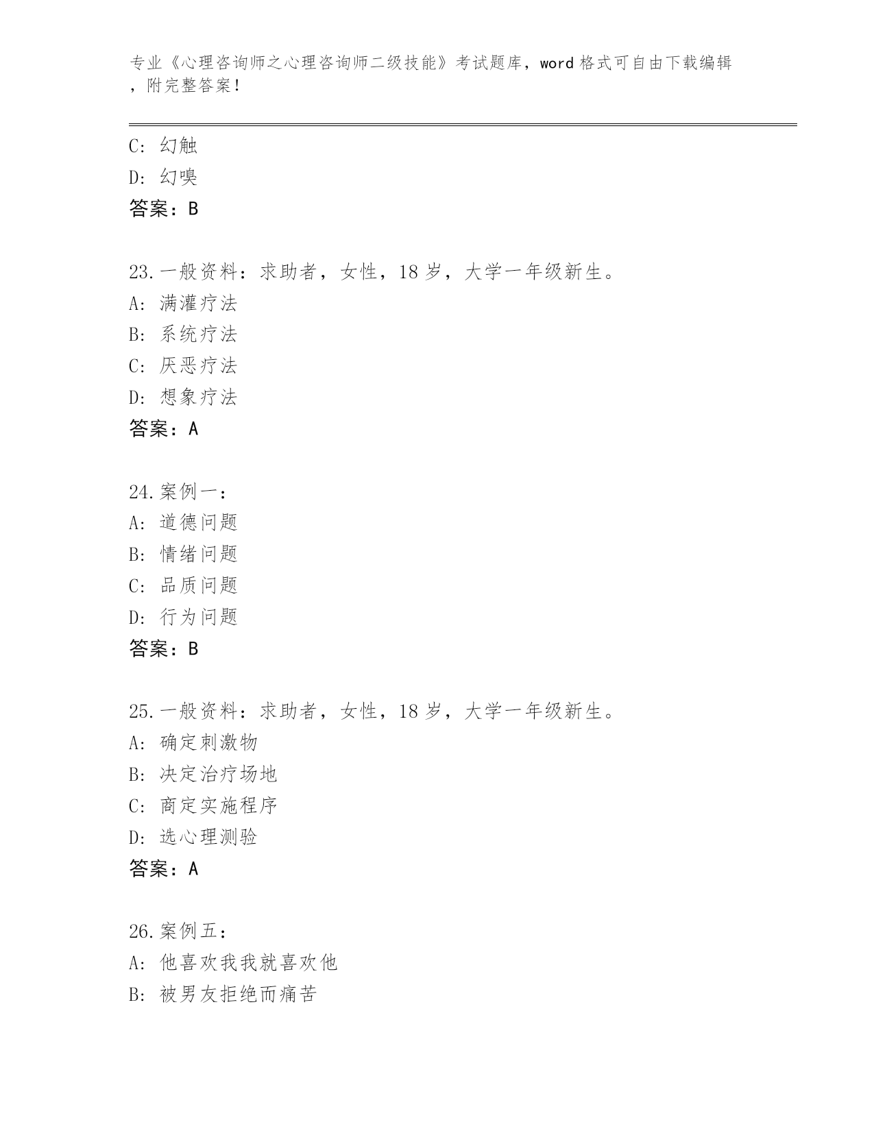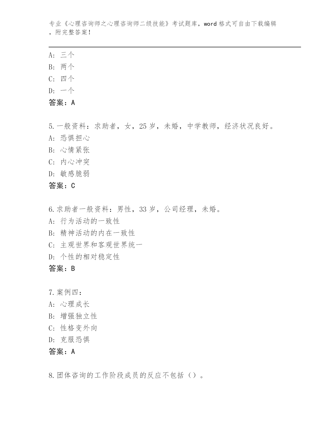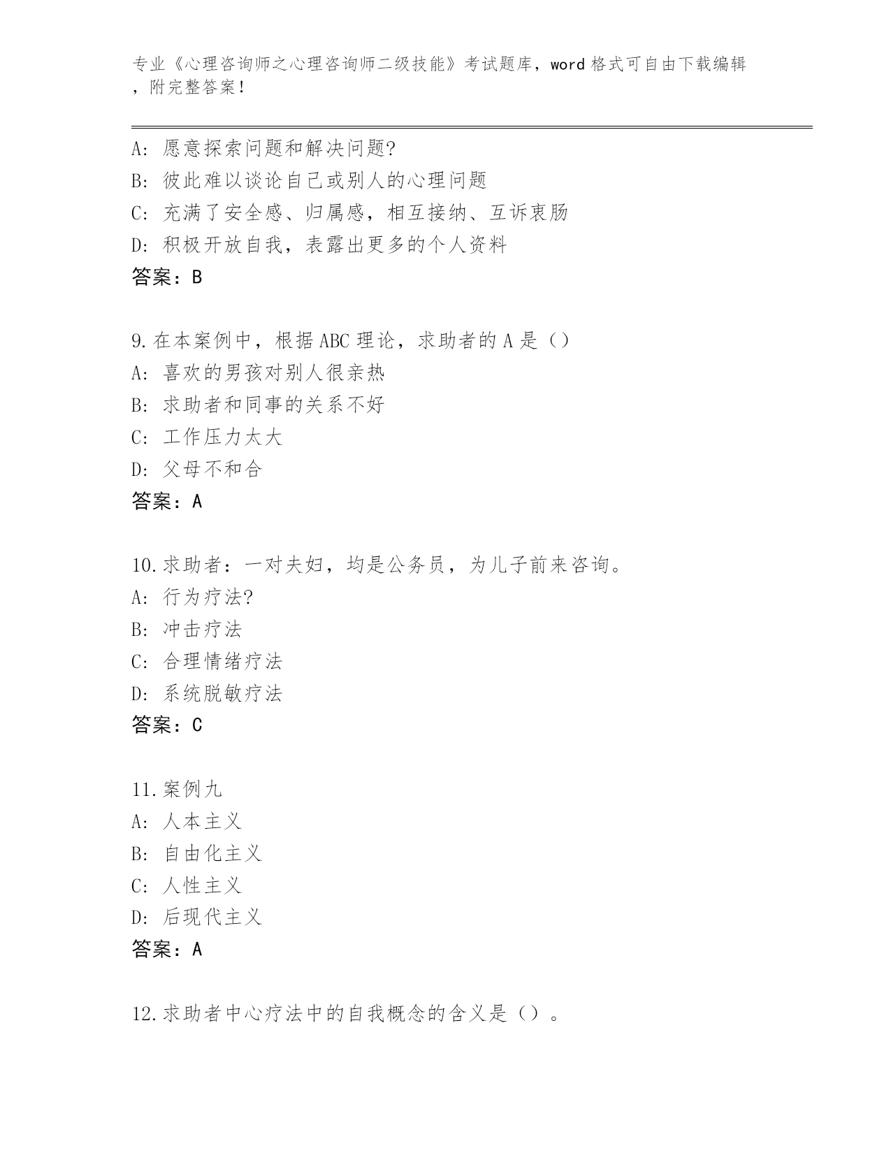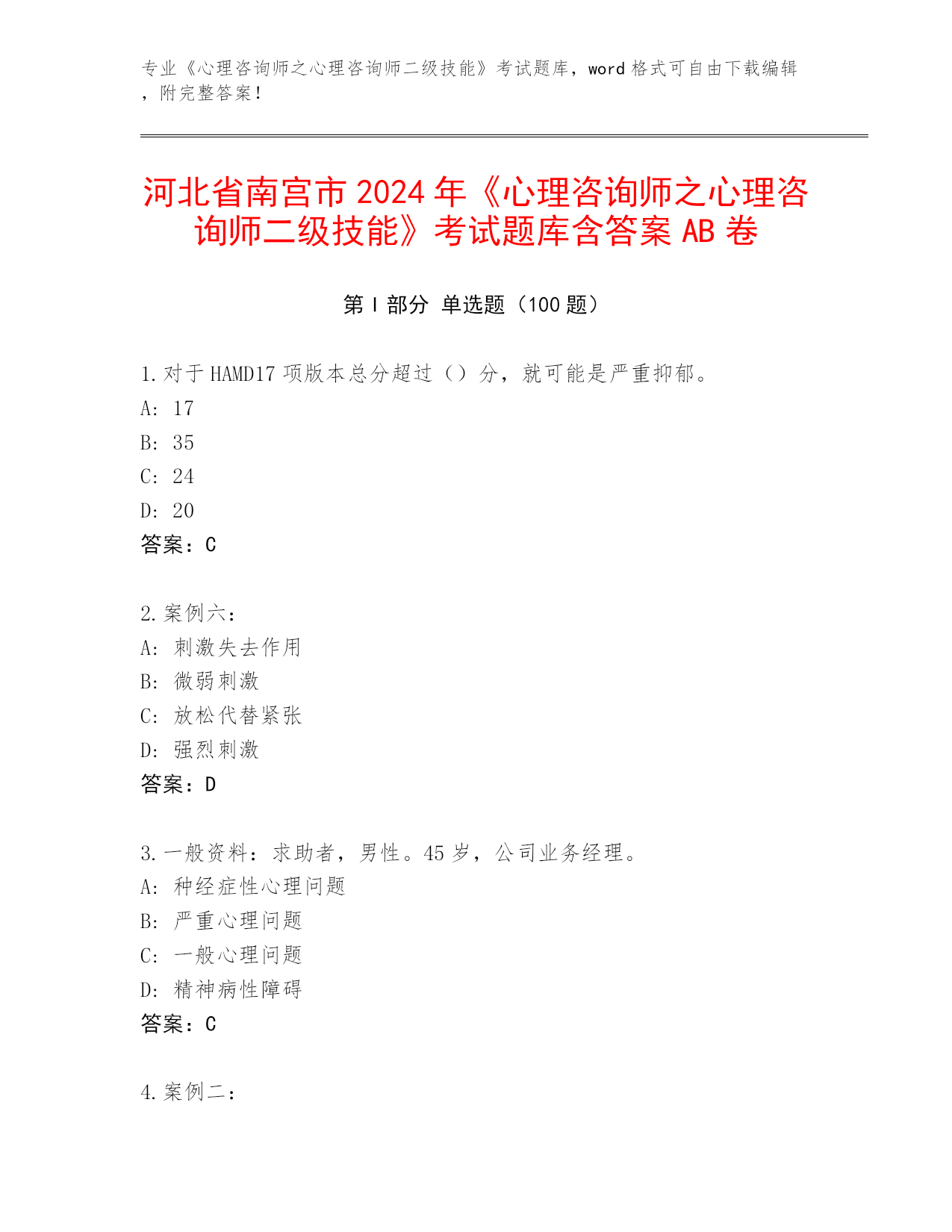河北省南宫市2024年《心理咨询师之心理咨询师二级技能》考试题库含答案AB卷