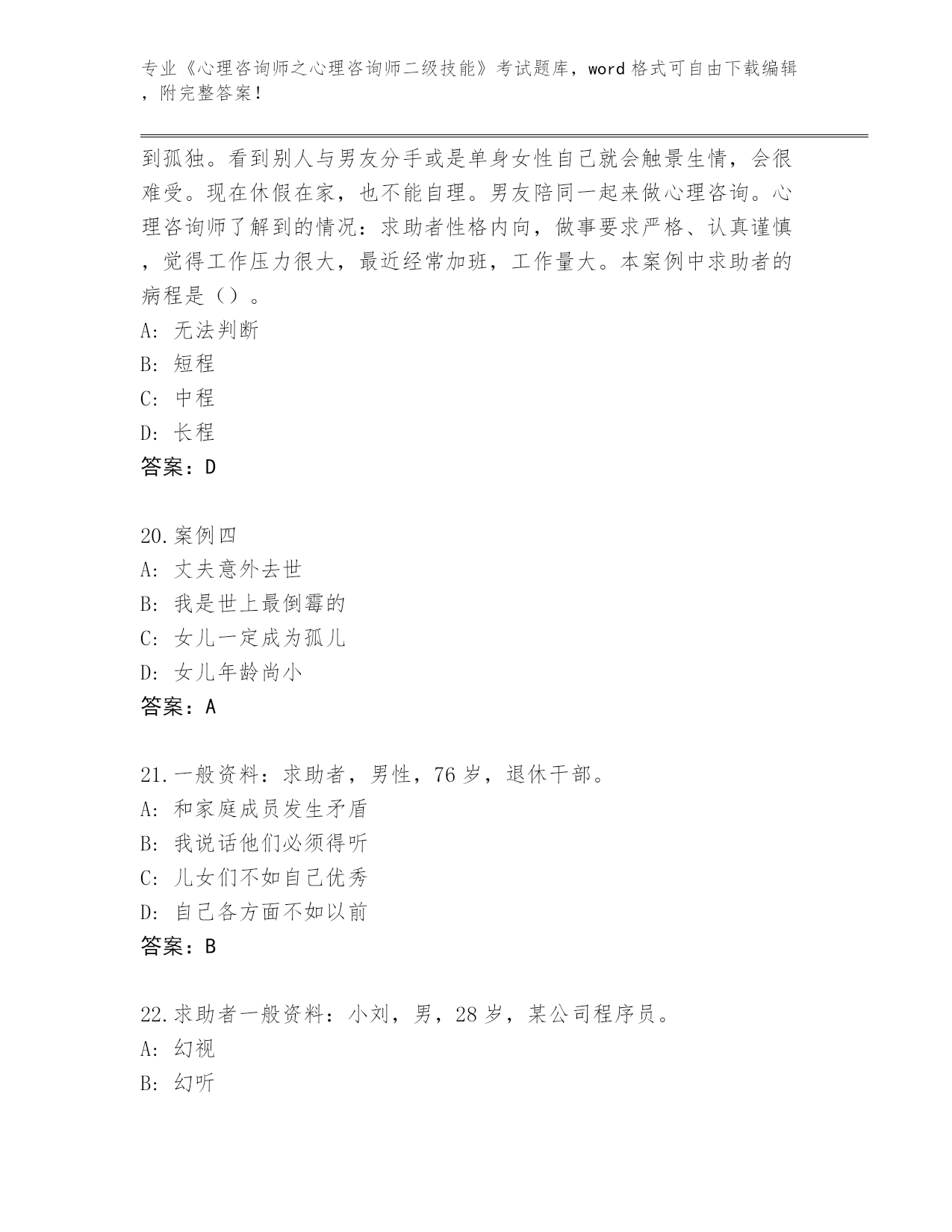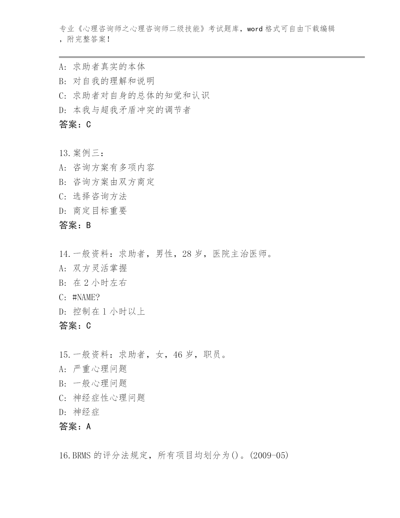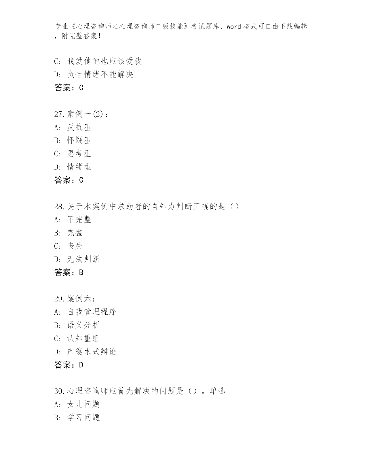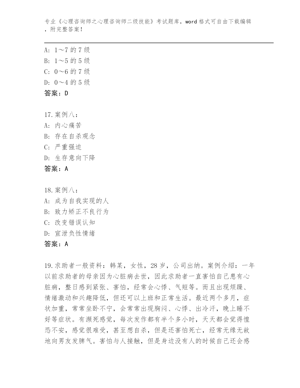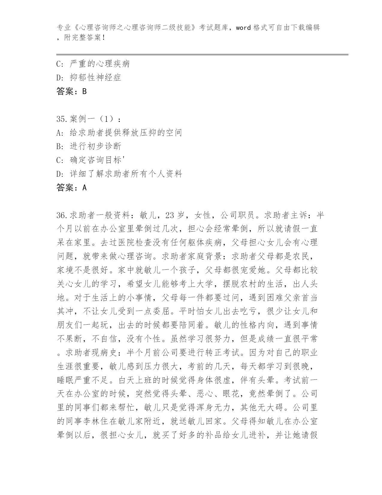 河北省南宫市2024年《心理咨询师之心理咨询师二级技能》考试题库含答案AB卷