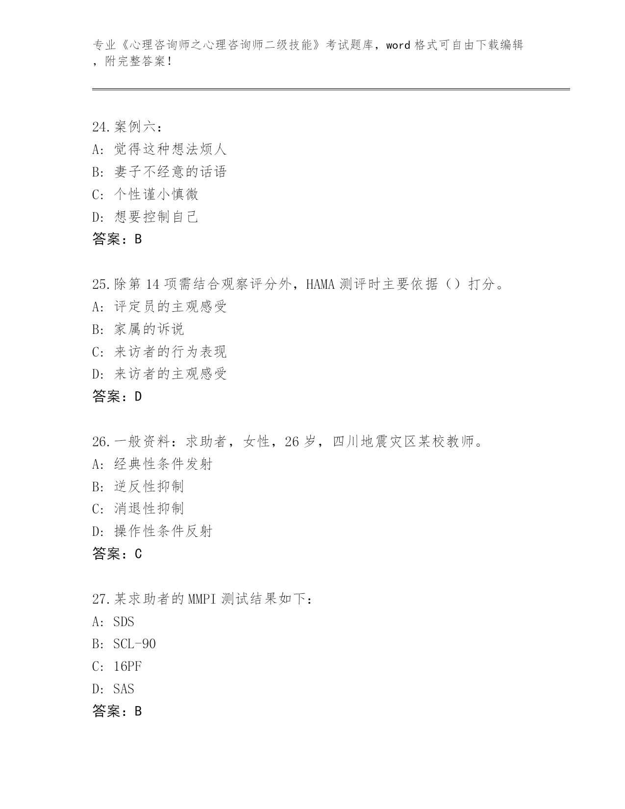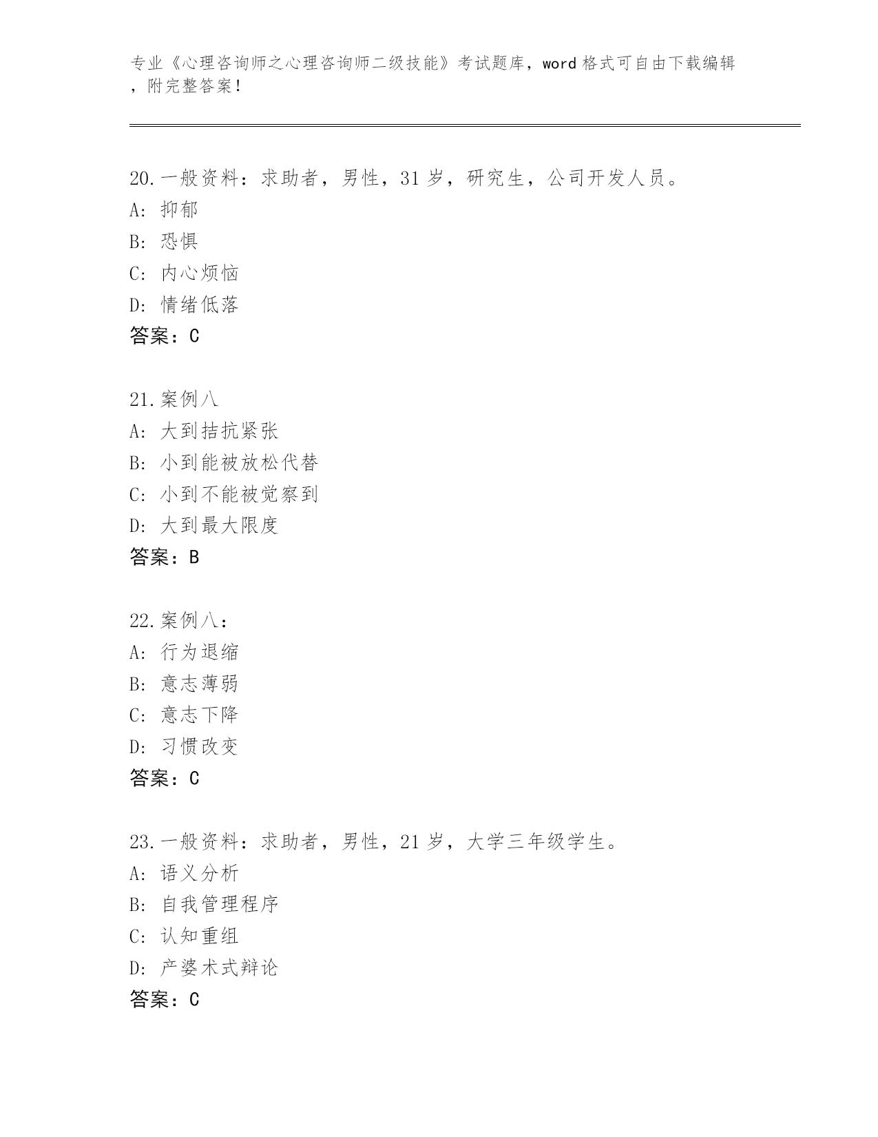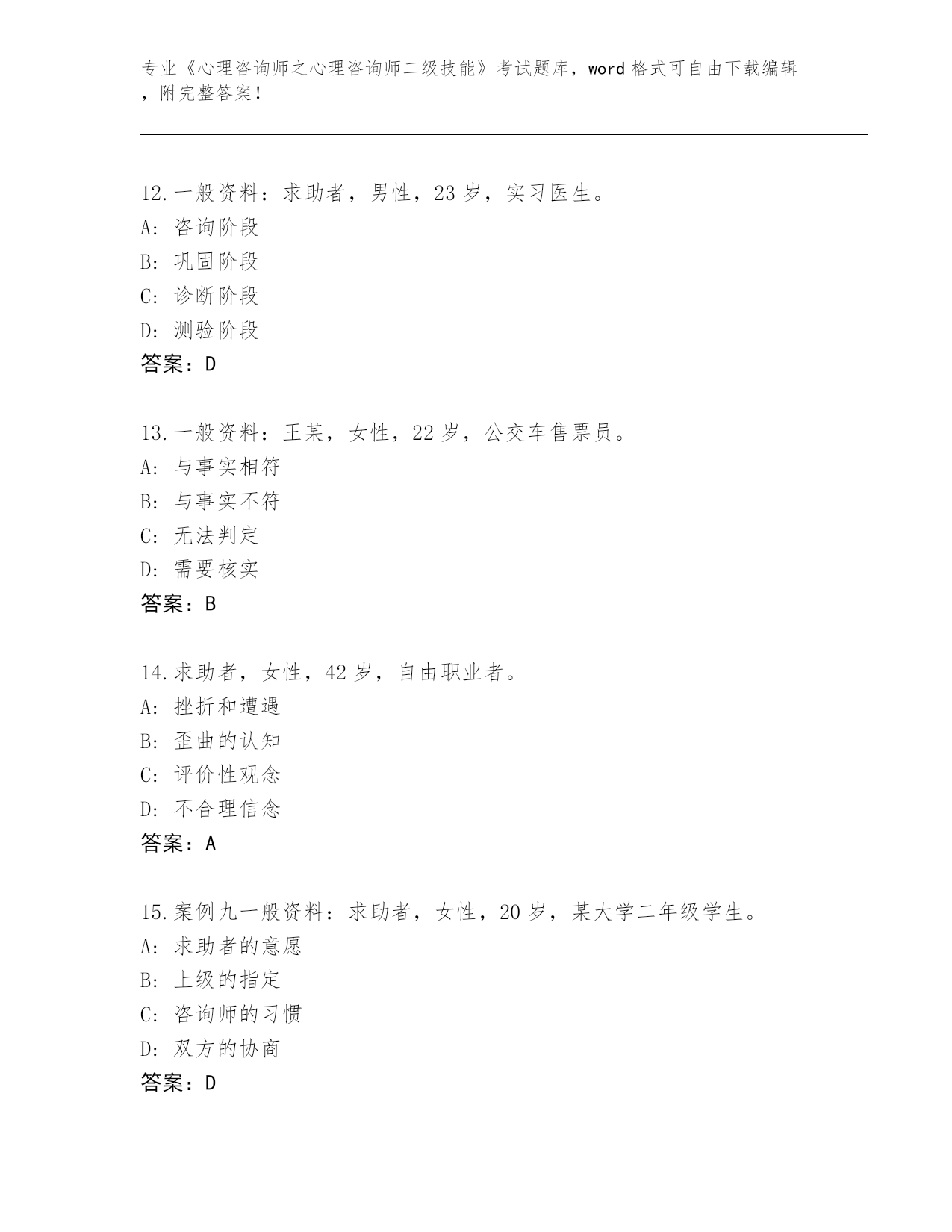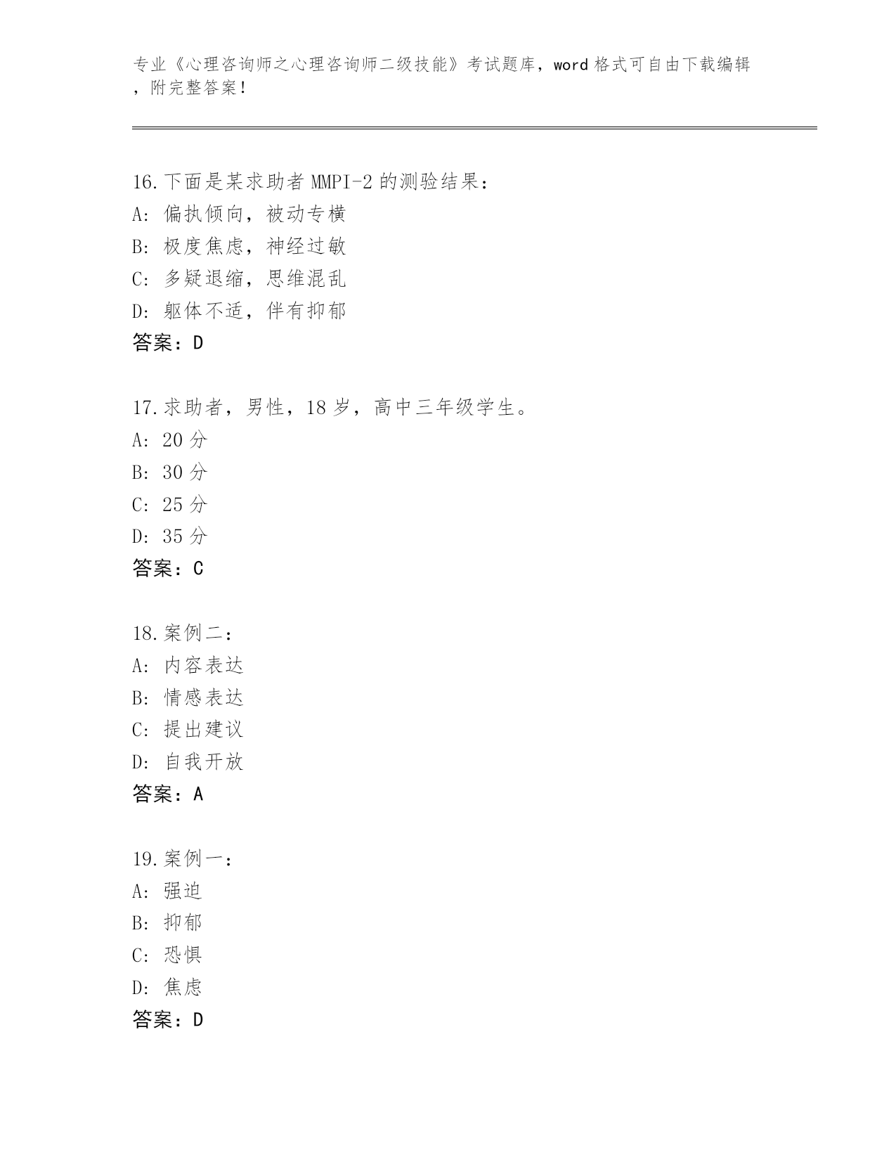 青海省囊谦县《心理咨询师之心理咨询师二级技能》资格考试必刷200题王牌题库(突破训练)