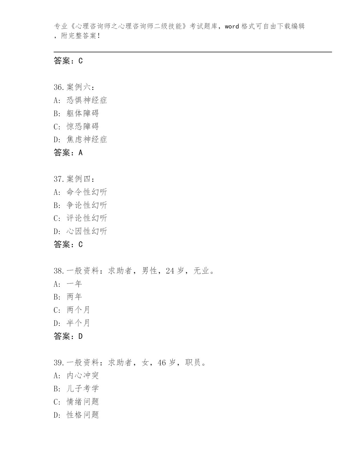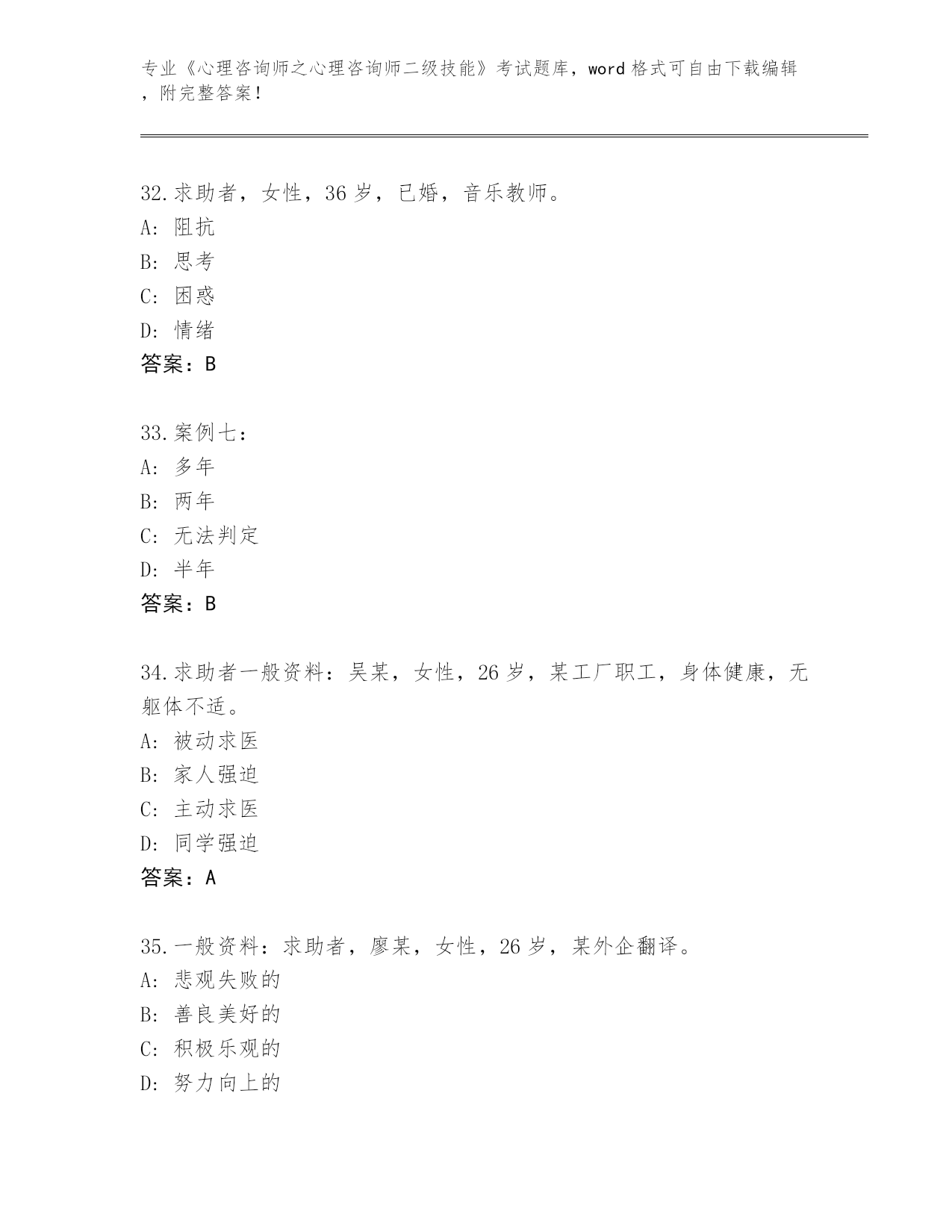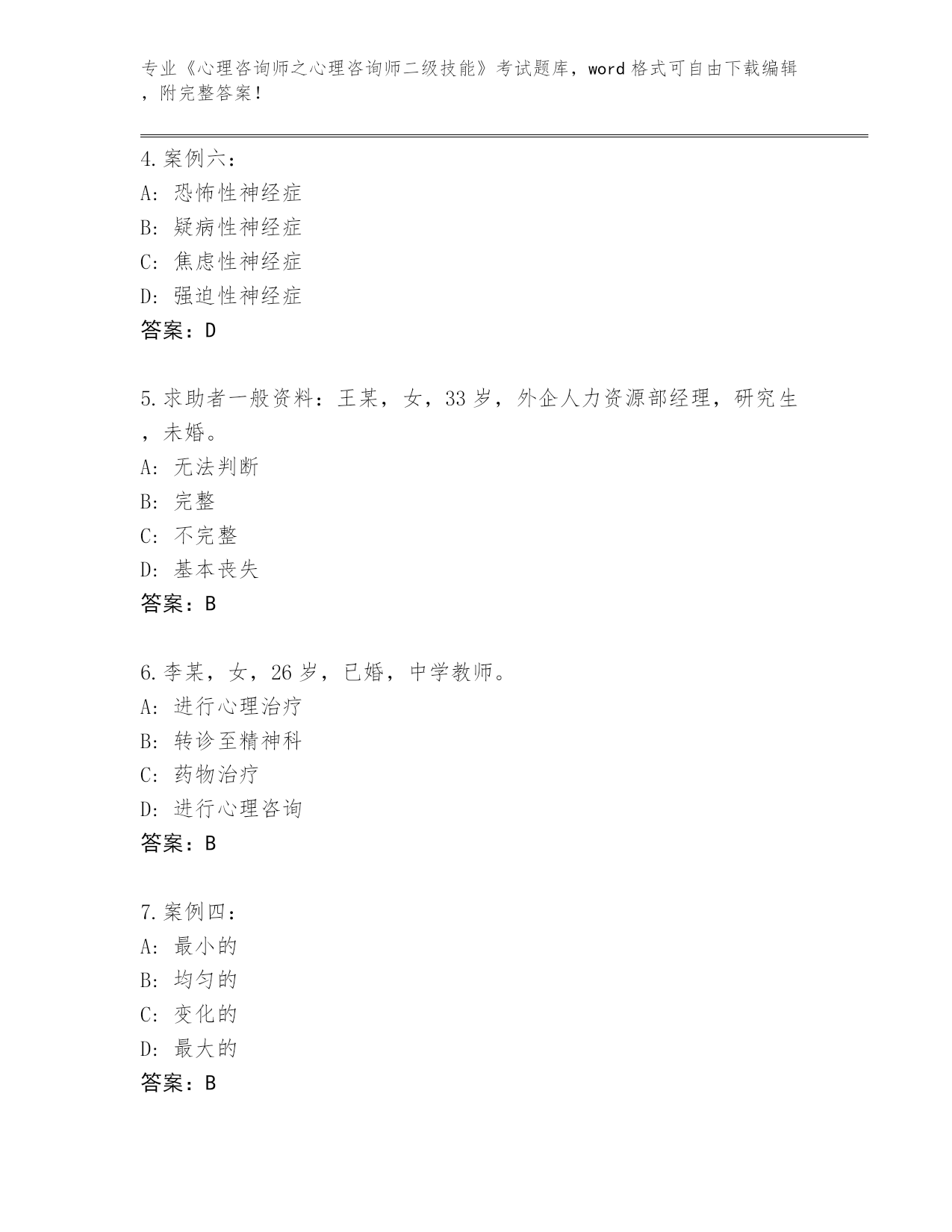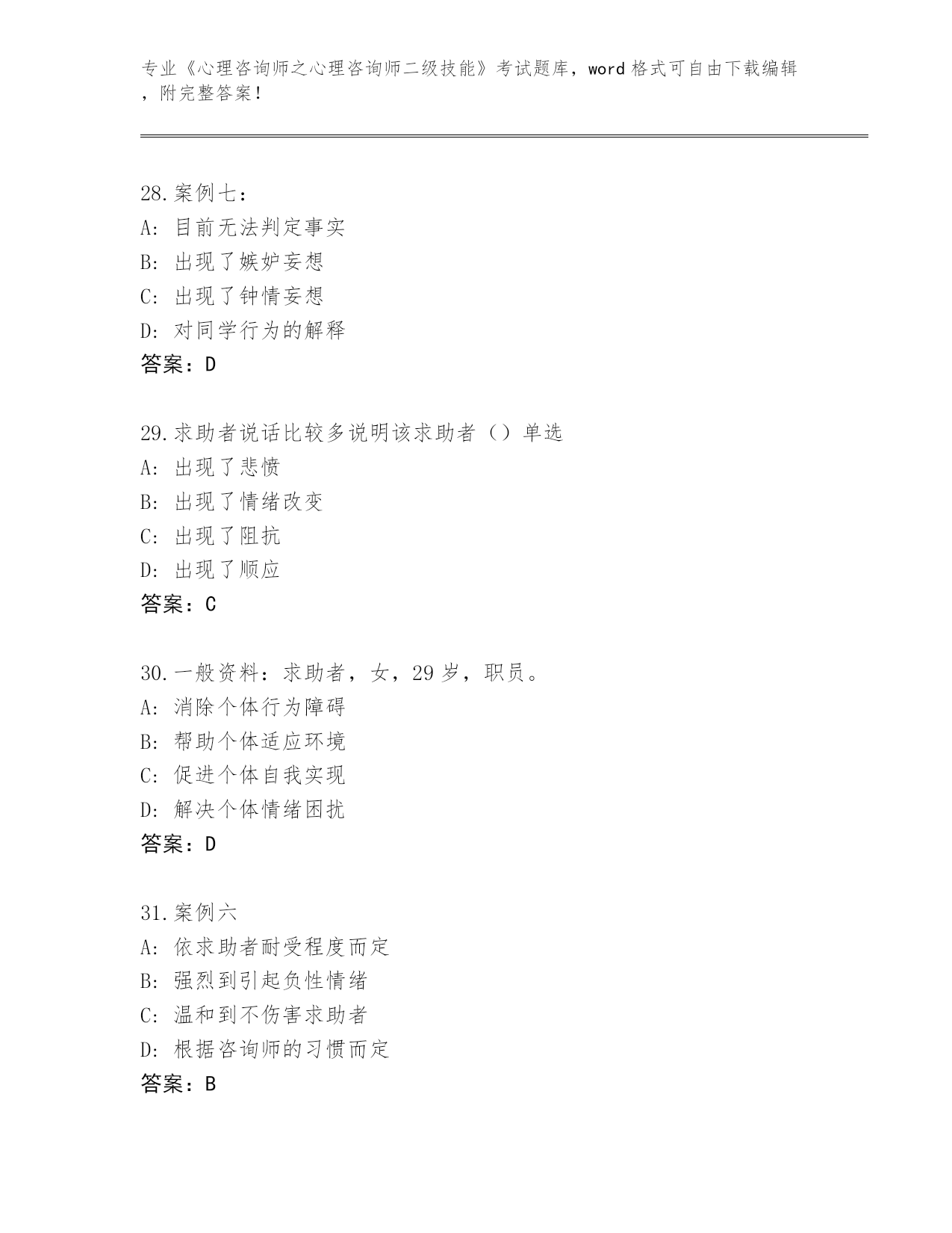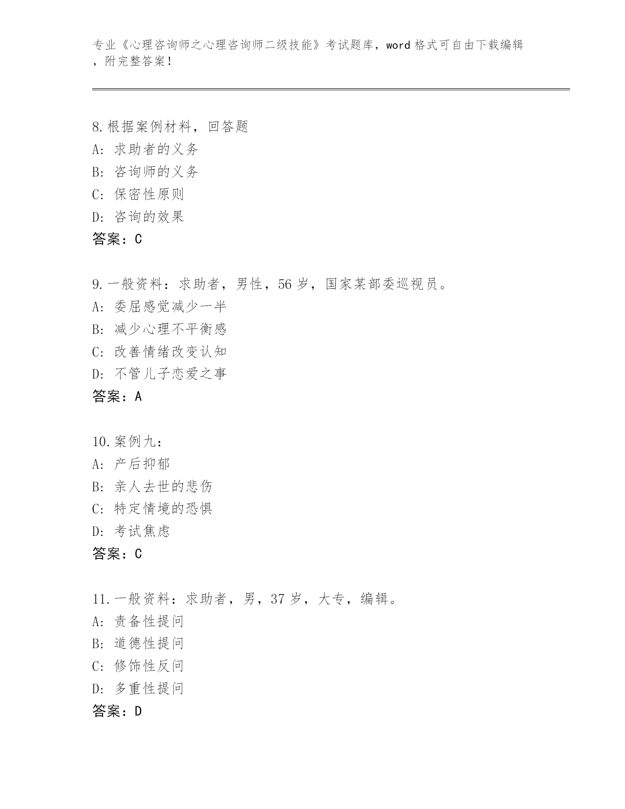 青海省囊谦县《心理咨询师之心理咨询师二级技能》资格考试必刷200题王牌题库(突破训练)