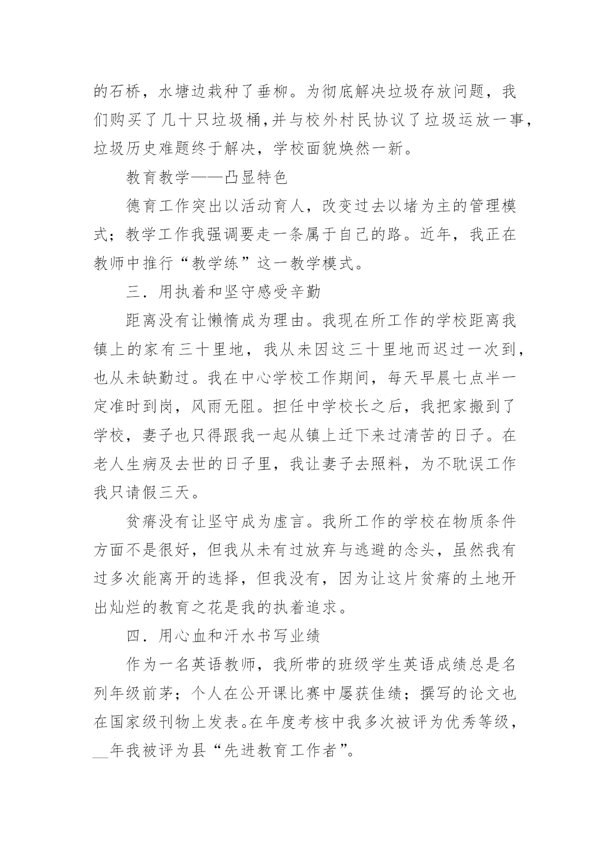 中学高级教师专业技术工作总结总结是对某一特定时间段内的学习和工作生活等表现情况加以回顾和分析的一种书面材料,它能帮我们理顺知识结构,突出重点,突破难点,为此要我们写一份总结。你想知道总结怎么写吗?以下是小编收集整理的中学高级教师专业技术工作总结,希望对大家有所帮助。中学高级教师专业技术工作总结1我从事教育工作至今已有二十八年了,我品尝过不同学段不同岗位的教学工作的酸甜苦辣。从最初的高中教育到后来的中职教育,再到现在的初中教育;从一名普通的英语教师到协管教学工作的教导主任,从教导主任再到中心学校主管面上工作的副校长,如今则是__最偏远乡村中学的校长。随着教龄的增长,个人业务素质的提高以及显著的教育成绩,本人也从多年前的一名中学二级教师成长为中学一级教师,如今则即将成为中学高级教师。回首近三十年来的教育生涯,我真正是百感交集。我能成长为一名中学高级教师,离不开领导、同事及家人的帮助和支持。我怀着感恩的心作如下专业技术工作总结:一.用赤诚和奉献铸造师魂1、做人真诚,有良好的人格修养。教师是人类灵魂的工程师,良好的人格修养应是师魂的核心,而“真”字则是人格修养的基石。因为“善、美”也只有在“真”的基石上才能开出灿烂的花朵。我把“真”字视为我做人的准则。对领导,我说真话,哪怕逆耳;对同事,我讲真情,哪怕曾有隔阂;对学生,我授真知,若自己知识有限,我会虚心向他人请教。2、思想纯正,将教育事业视为个人的第二生命。我生长在一个教育世家,父亲是一个解放初从私塾走出来的能激情吟诵“巍巍乎昆仑”的老先生。父亲为他挚爱的教书生涯奔波了一生,虽然父亲现在去世了,但他教育生命依然在我血液中流淌。我的弟弟是中学一名语文教师,如今我的女儿也走上了讲台。教育不仅是我个人的第二生命,也是我们这个教育世家的第二生命。作为一名党员,我对党忠诚;作为教师,我热爱教育事业,热爱学生。我思想纯正,从未参加过任何不良组织,从未干过任何违法乱纪的事。3、追求卓越,有坚定的教育理想。我所工作的学校位于鄂赣皖三省交界之处,十分偏僻。我的教育理想是改变农村落后的教育面貌。虽然这一理想的实现充满坎坷,甚至终其一生也许难以实现,但我坚定不移。我愿为此奋斗一生,奉献一生。二.用勤奋和创新彰显能力。1、勤奋学习以增长才干。我是一名英语教师,为了给学生一碗水,我努力让自己拥有知识的河流。我自费订阅了《英语周报》等报刊,购买了李阳疯狂英语磁带,勤写读书笔记。在教学上,我积极参加各种教学研究活动,尝试各种教学改革,力求让学生学得轻松,学得快乐,且学习成绩有显著提高。在教学教研的同时,我十分注重从理论的高度审视个人的教学实践,研读教育理论,撰写教学论文。我又是一名校长,从事教育管理工作。角色的转变催逼我要不断学习,尤其是学习教育管理方面的知识。我一方面向书本请教,《中国教育报》等报刊书籍从此摆上了我的案头;我一方面向同行求教,就学校管理中存在的困惑寻求解决之道;我更是注重向教育专家学习,各种校长培训活动我总是积极参加。2、创新工作以革新面貌。人事制度改革——激发有限的教育资源农村初中教师编制紧并且师资良莠不齐,为改变这一现状,我在我任职的学校大胆进行了人事制度改革。全体教师实行竞争上岗,通过竞争然后上岗的教师再由班主任自由组阁,落岗的教师则由乡中心学校安排到小学任教。管理思想改革——凝聚人心一些学校是以刚性管理为主,教职工有抵触情绪。我在我任职的学校尝试了人性化的管理模式,教职工关系十分融洽。像制度的制定与修改,一定让教师代表参加讨论,充分听取他们的'意见;像考勤工作,较之过去更为宽松;像教职工个人生病及家中婚丧之事,我都会去看望或慰问。平面整治——创造育人环境任职几年来,我带领我的团队先后兴建了学生食堂、学生厕所、排球及乒乓球运动场,扩建了连接教学区与生活区的石桥,水塘边栽种了垂柳。为彻底解决垃圾存放问题,我们购买了几十只垃圾桶,并与校外村民协议了垃圾运放一事,垃圾历史难题终于解决,学校面貌焕然一新。教育教学——凸显特色德育工作突出以活动育人,改变过去以堵为主的管理模式;教学工作我强调要走一条属于自己的路。近年,我正在教师中推行“教学练”这一教学模式。三.用执着和坚守感受辛勤距离没有让懒惰成为理由。我现在所工作的学校距离我镇上的家有三十里地,我从未因这三十里地而迟过一次到,也从未缺勤过。我在中心学校工作期间,每天早晨七点半一定准时到岗,风雨无阻。担任中学校长之后,我把家搬到了学校,妻子也只得跟我一起从镇上迁下来过清苦的日子。在老人生病及去世的日子里,我让妻子去照料,为不耽误工作我只请假三天。贫瘠没有让坚守成为虚言。我所工作的学校在物质条件方面不是很好,但我从未有过放弃与逃避的念头,虽然我有过多次能离开的选择,但我没有,因为让这片贫瘠的土地开出灿烂的教育之花是我的执着追求。四.用心血和汗水书写