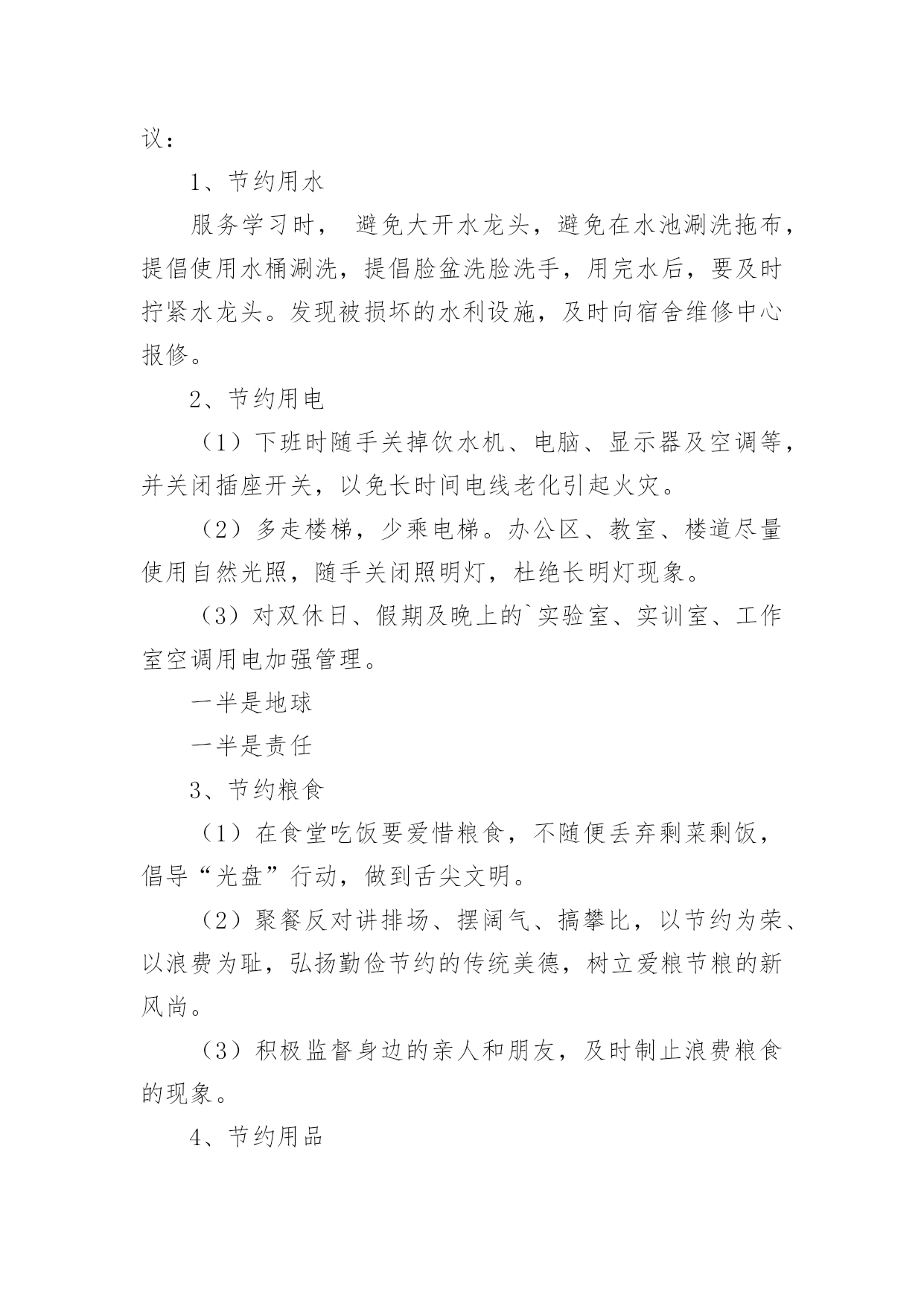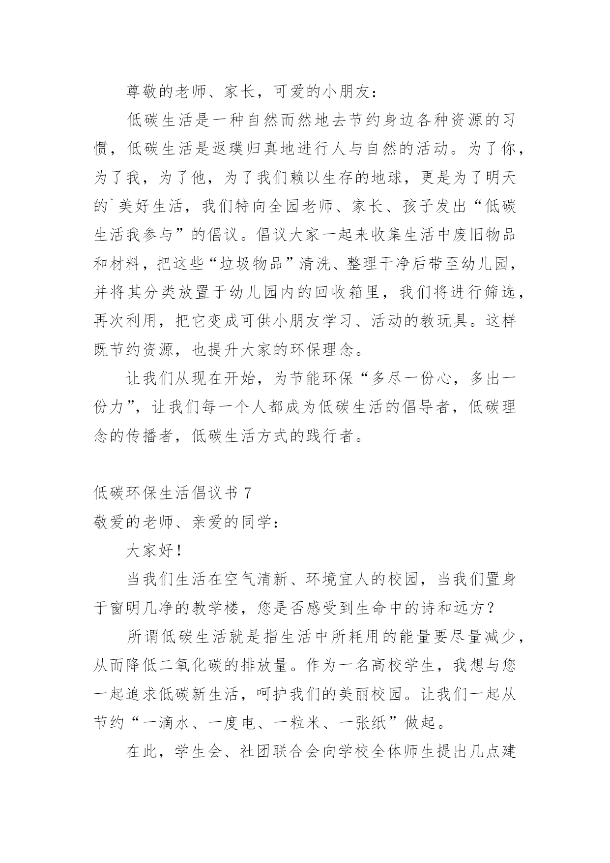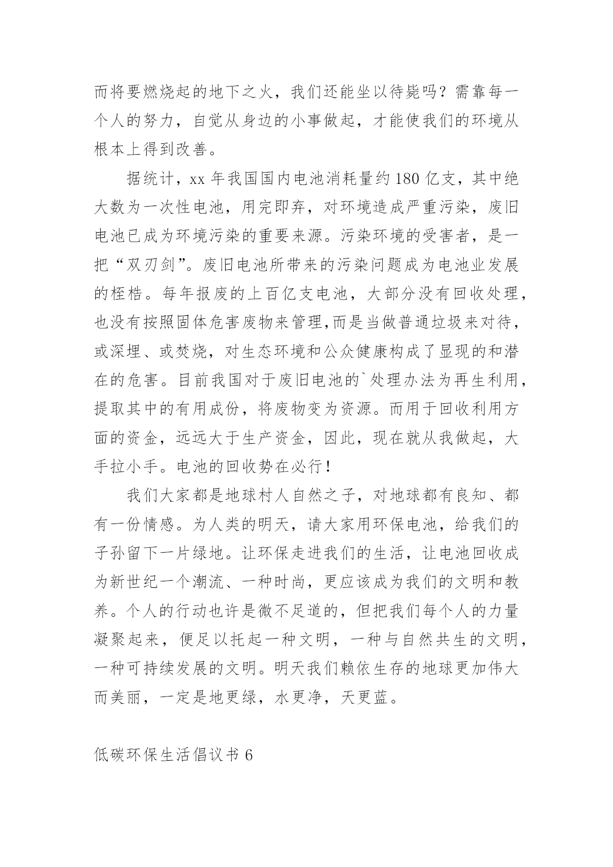 低碳环保生活倡议书低碳环保生活倡议书低碳环保生活倡议书1汽车尾气,人类和动物呼出的气,烧煤的气和雾在一起变成了讨厌的雾霾。不仅让地球母亲感冒,还让人们的身体被病毒入侵,这可怎么办?没有办法,开启低碳环保生活吧。“女儿,咱们开车去玩吧。”爸爸一脸兴奋地说。“no,no,no.那地方不远,咱们还是走路比较好,这样又锻炼身体,又防止汽车尾气污染空气。”“嗯,嗯,女儿的提议很好,说得很有道理。那咱们就走路吧。”“嗯。”我笑着回答。就这样,本来开车八分钟的路程,我们一路说着,笑着走过来了。汽油也省了,环境也保护了,身体也锻炼了,亲子时间也多了,一举几得,何乐而不为呢?另外发电,我们尽量放弃用煤.风车发电,太阳能发电多好,因为烧煤,煤释放出来大量的污染,让我们生活在灰尘中,为了见到蓝天白云,为了不让地球蒙上一层灰尘,请尽量不要烧煤。这几年来,地球妈妈的感冒越来越严重,它经常咳嗽,经常散发出难闻的味道,经常眼睛蒙蒙地看不清楚远方。那如何才让让地球妈妈感冒好起来呢?对的,植树,绿化环境。大家都来种树,一人种一棵树,14亿棵翠绿的参天大树在几年后就会傲立在全国各地,地球母亲因为身着绿衣裳,就不会轻易得感冒。地球妈妈因为有着苍天大树的`树根作伴,它身体里的水分就不会轻易流失。说到水,不知道在日常生活中,我们有没有节约用水呢?请大家不要洗个手就哗哗地用掉一大堆,龙头不要开到最大,中间即可。淘米水可以用来洗菜,可以洗碗,可以浇花,洗衣水可以拖地,可以冲厕所等,用过的水可以重复利用,如果每个人都这么做的话,全国14亿人就可以节约出来一条河啊。今年暑假我去了西北旅行,才知道茫茫的沙漠,无垠的戈壁缺水非常严重,很多厕所都是旱厕,所以不要因为我们这里水源充分,就随意浪费,要考虑到全国,全球缺水的地方还多着呢。低碳环保的好处不计其数,多碳浪费的坏处数以百计,让我们一起保卫绿色的家园,从身边的点点滴滴开始吧。低碳环保生活倡议书2亲爱的各位同事:踏进11月份,随着浓浓的秋意的到来,天气越来越凉爽怡人。如果这时候在公司里有空调的不规范使用行为,不仅会浪费电力资源,而且也会在发电及制冷过程中制造双重废气,使得空气环境更加恶劣。同时,一个人过分的依赖空调抗热,而且又在干燥的'气温环境下,不仅会降低自身的环境适应能力,也会降低自身的免疫力及身体素质,容易引起呼吸道感染方面的疾病(感冒、发烧等)。我们作为新时代的领先者,要切实担负起节约能源与环境保护的责任,要培养良好的社会公德,同时也要提高自身身体素质。国家出台的环保标准中空调使用的温度范围应该为0度及0度以下、30度及30度以上。鉴于现时天气已经比较适宜,我们提倡从11月1日开始,公司空调制冷功能严格停止使用。客服部办公室由于没有窗户,可以开启空调的换气功能,其他办公区域全部停止使用空调。办公期间,大家都把窗户打开,呼吸新鲜空气,充分与大自然接触!勤俭节约是中华民族的传统美德,节约能源、节约用电是每一位公民的社会责任。在创建节约型社会的今天,我们真诚的希望每一位员工积极行动起来,齐心协力、统一思想,从身边小事做起,提倡节能环保,低碳新生活,节约每一度电,共同为公司的建设发展尽最大努力!行政人事部20xx年11月1日低碳环保生活倡议书3从今天开始,让我们尽量选乘公交出行;从今天开始,让我们选用高效节能家电;从今天开始,让我们珍惜宝贵的水资源;……——节能减排我承诺,中国行动有力量!为了我们拥有更健康的生活环境,为了经济社会的可持续发展,让我们一起行动起来,参与“节能减排我承诺”,以自己的实际行动来减少浪费,实现资源、能源的合理使用和高效利用。请您在这里写上您的节能承诺,那怕只是换上一支节能灯,只是少开一天车……从一个人到一个家庭,从一个社区到一个城市,让我们用点滴行动共同汇聚节能减排的中国力量!每一个人的.力量并不微小,我们时刻都在改变着世界。有了您的行动,节能减排将不仅仅是一句口号。我们期待您的承诺,感谢您的参与!低碳环保生活倡议书4你金鹏同事:随着全球变暖,各种各样的极端天气不断发生,节能环保、低碳生活倡议书各种各样的自然灾害来临,节能减排、环保和低碳生活已成为全世界普遍关注和讨论这个话题。因此,我们应该珍惜资源,减少能源消耗,建立绿色生活和工作在一起维护和保存我们美丽的家园。金鹏集团必须“促进社会的和-谐,实现生命价值”为宗旨,金鹏包含“成功是由于责任”内涵,它还需要我们金鹏人认为这种人类共同的责任,节能减排、低碳生活。这是义不容辞的责任,同时,责任的承担,我们需要开始从原来的地方。从现在开始,行动,行动,因为这个原因,我们大喊大叫,要求:1、保存从一滴水,一旦电力,一张纸开始,建立了节俭的`美德,2、我们不离开留下的水龙头;3、长时间离开办公室之前及时关闭电脑和显示器权力;4、从工作或长时间不在办公室请随手关灯