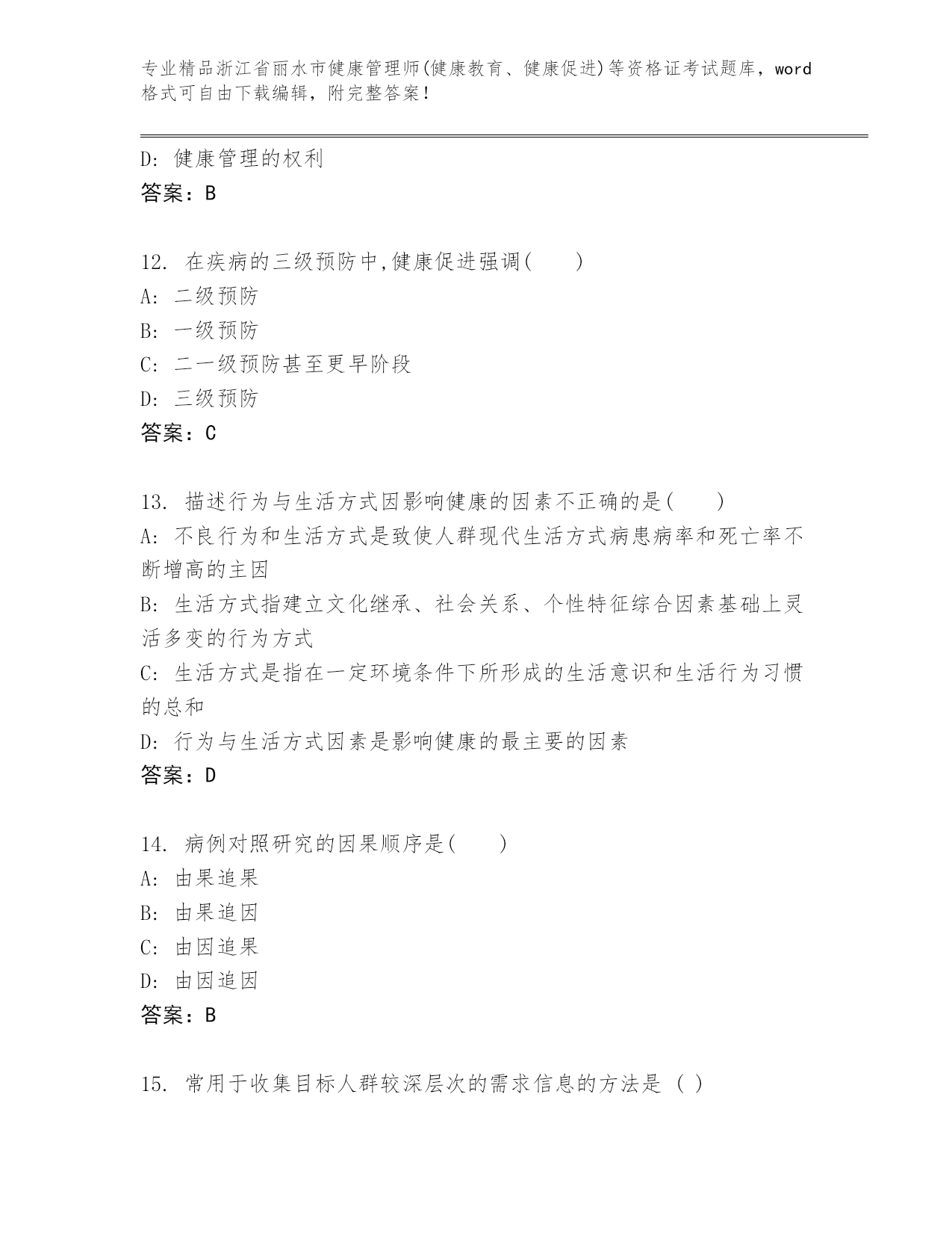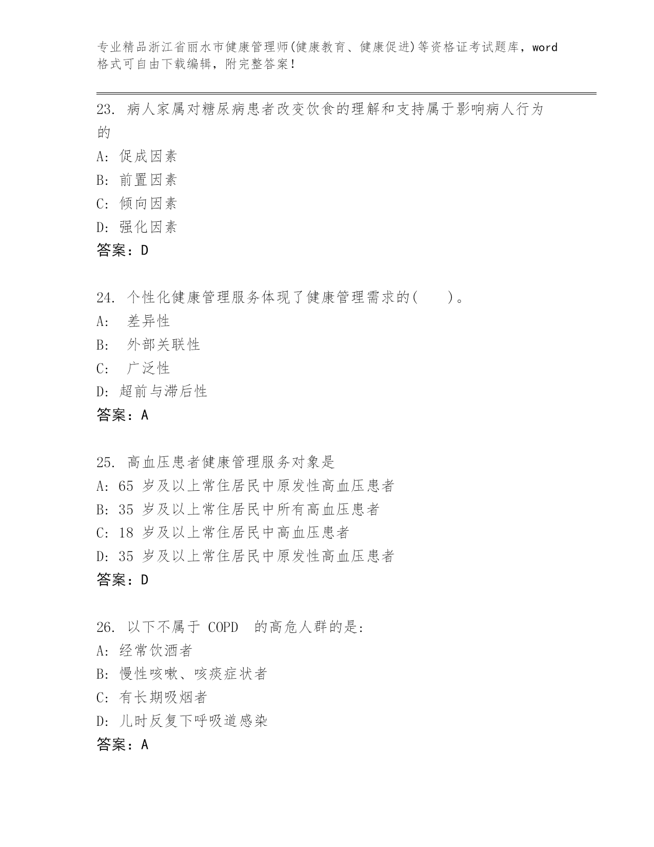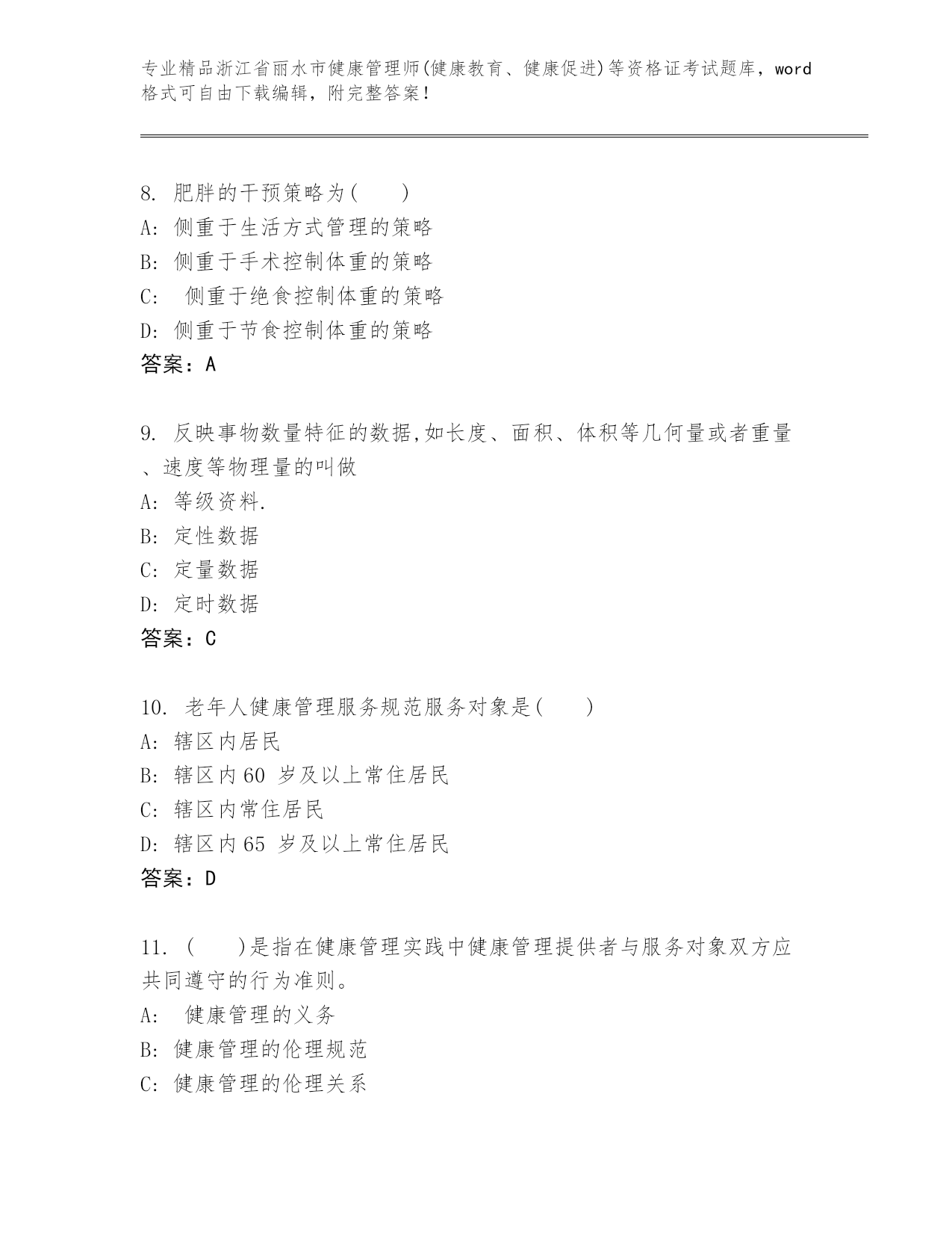 最新浙江省丽水市健康管理师(健康教育、健康促进)等资格证考试通用题库(能力提升).docx
