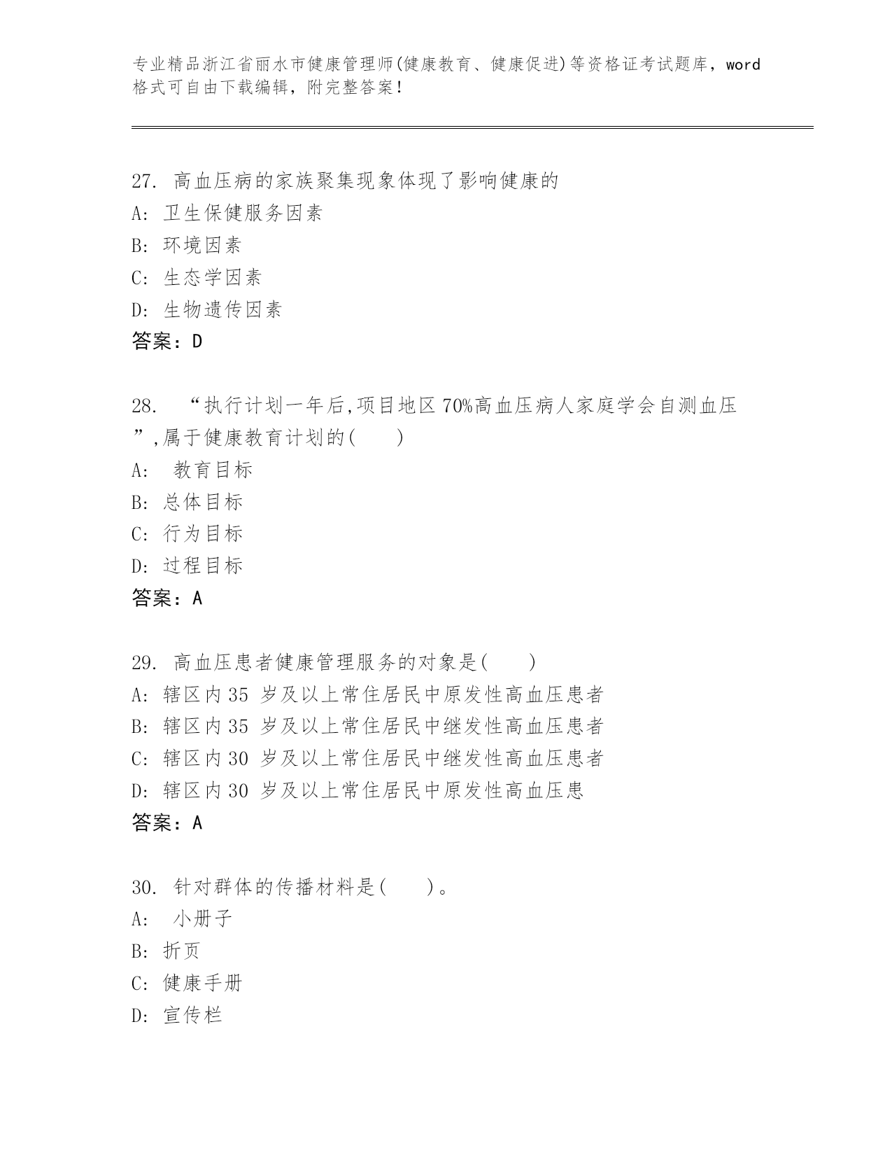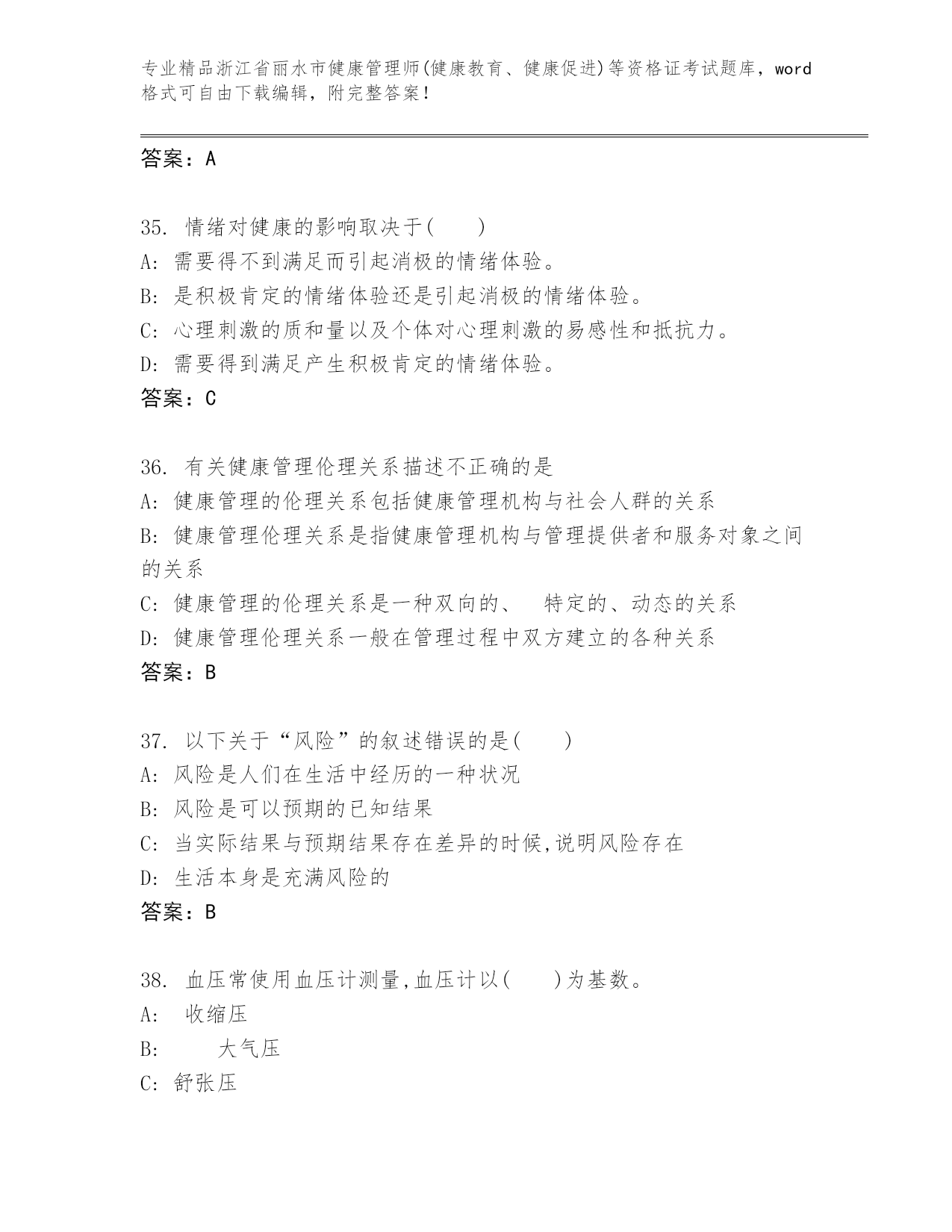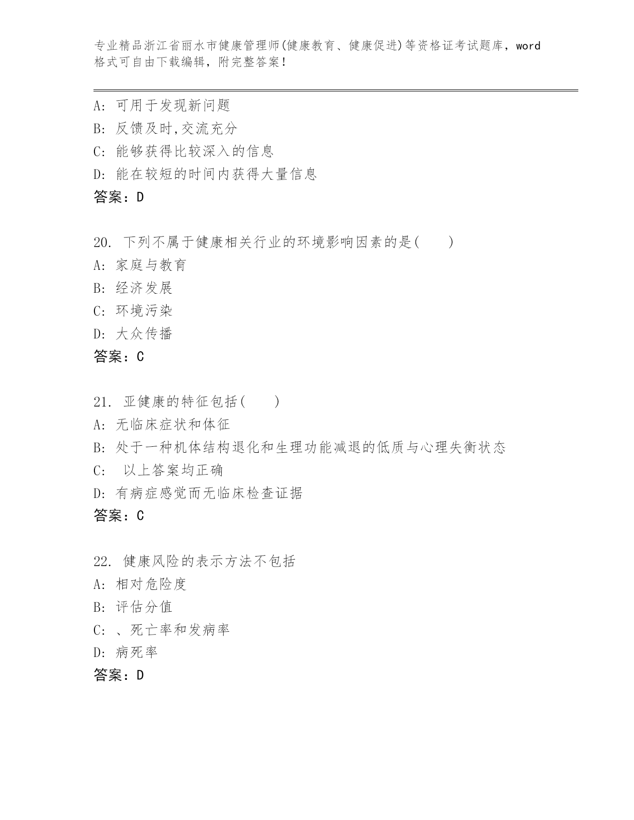 最新浙江省丽水市健康管理师(健康教育、健康促进)等资格证考试通用题库(能力提升).docx
