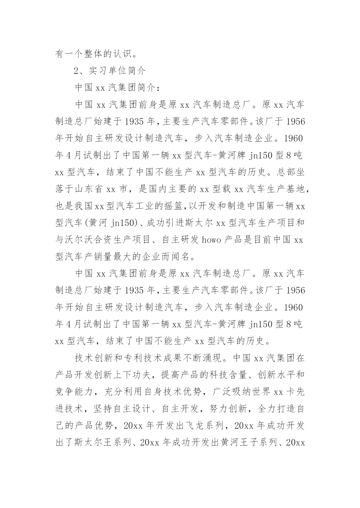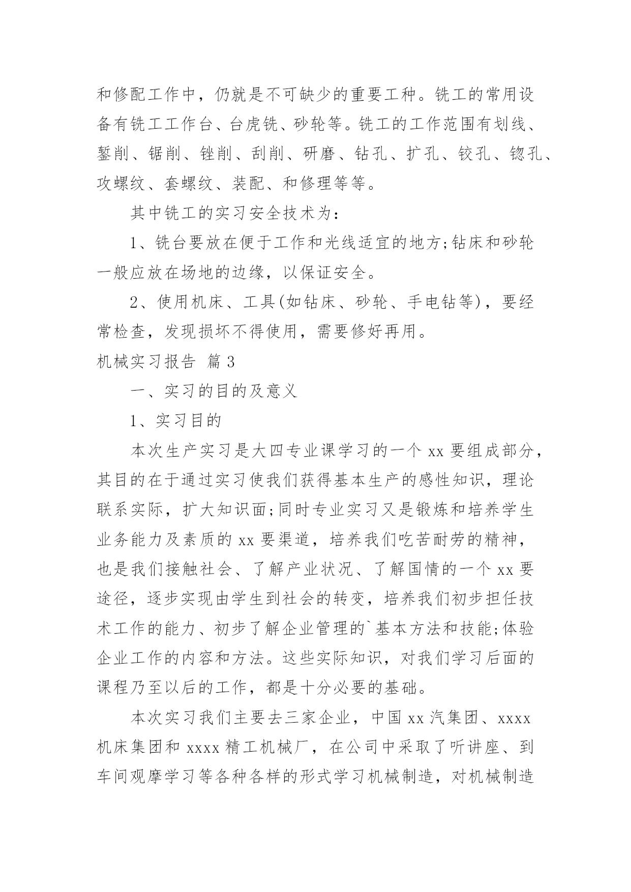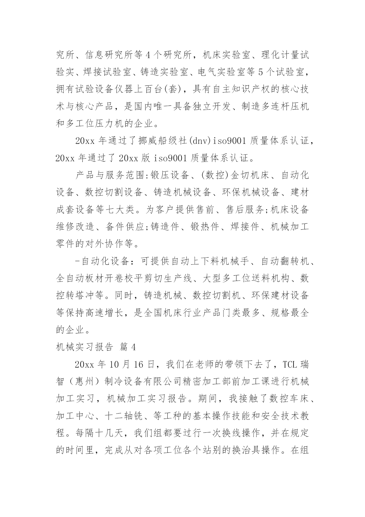 机械实习报告关于机械实习报告集锦七篇在现实生活中,报告的使用成为日常生活的常态,报告中涉及到专业性术语要解释清楚。一听到写报告马上头昏脑涨?下面是小编整理的机械实习报告7篇,欢迎大家分享。机械实习报告篇1实习目的:理论联系实际,在特定机械领域(风机)内了解理论知识在实际生产中的应用实习时间:20xx学年暑假为期20天实习地点:xx省xx中成风机工程有限公司(7月20日迁至辽宁现辽宁金丰风机工程有限公司)实习内容:风机相关的简单内容y4-73-11no20f型锅炉离心引风机设计了解(图纸)风机选用手册学习cad练习机械装配、动平衡调整等实习总结:与以往的师兄师姐们相比,我的这次暑期社会实习可以说幸运得多。在风机厂里我受到了不少照顾而不是像许多师兄师姐所说的那样到工厂里只是搬了一个月的砖头或者其他各样的体力活却没有学到什么更实际的东西。说起来,我想我的实习与其说起来是“实习”,更不如说是“学习”,因为我在学校所学到的知识无论是纯理论还是金工实习的操作在这里都几乎没有用处。前五天我的实习内容大多都是坐在工厂里的办公室里进行的,我相信,不会有哪个同学通过实习学到的东西会比我的更理论。当然,这样的实习也并不轻松,经过了一个月不洗澡不理发每天在自习室里学习14个小时以上的期末复习的煎熬之后在暑假实习,我也同样相信,所有人都宁愿去底下搬砖头。而之后的内容则是到车间里练习装配和平衡调试等工作,虽然都只是拧螺丝之类的打下手的工作(技术工作我也根本作不了),但凡是其中所遇到的相关问题几位师傅都会详细地给我讲解,理论在实际中的应用得到了更透彻的理解,之前在办公室里学到的东西也都起到了很大作用。而且和工人师傅们在一起很开心。通过这次实习,我所认识到的最重要的是:我在学校里学到的东西在工厂里究竟有什么样的用处。在实习刚刚开始的时候,机械原理和材料力学考试才刚刚结束。本来以为这些东西都会给我的实习带来很多帮助,但实际上,它们几乎一点用处都没有(只有机械原理关于动静平衡的知识点在给叶轮做平衡时有助于我的理解和操作)。在工厂里,我们不需要通过复杂的计算去选择用料,起码在我参加实习的工厂里,常用的材料只有q235,16mn,ht250,zg45等几种,钢材常用的也只有槽钢角钢和带钢,带钢在学校的相关课程里还没有学习过。工字钢和t型钢在建筑中可能用的会多一些但是风机这里基本不用,而且槽钢的用处大多是用作支架,不用像材料力学中计算扭转时那样麻烦。而对于钢的热处理,也不会要求到组织转换那么细致,只需要知道通过怎样的工艺多长的时间能得到要求的强度刚度就可以了。对每个部件都进行强度和刚度的校核然后对应地选取最好的用料,这是没有效率的也是没有必要的。很多部件的铸造已经有了对应的标准或者手册里有对应的经验公式,而设计中对相应的工件也都保守地达到了安全。以前不理解为什么工程力学毕业的学生不好找工作,现在明白了,没人会花钱去雇用一个掌握着自己跟本用不到的`本领的大学生。虽然这样说,我并不是说在学校里学习没有必要,相反,在我发现学校里学到的东西没有太多用处的同时我竟矛盾地感觉学习这样的东西都有着十分重要的意义,学校里的学习提高的不是我们的技术,而是我们的能力,而如果没有这样的能力,到了工厂里我们将一无是处。开始的几天通过看y4-73-11no20f的图纸(锅炉用离心引风机,压力系数乘以5后取整为4比转速73设计序号11机号20即叶轮直径xxmm联轴器传动叶轮安装在两轴承之间,好不容易学的东西实习报告里拿出来得瑟得瑟),对风机的一般工作原理有了一个大概的了解。当然,更细节的东西不是通过几天就可以学会的,我也就放弃了更细致的研究,而之后在车间实习的时候这些细节竟也都弄懂了。在工厂里学习的好处得到了体现:在看图无法理解的时候可以到楼下车间里找到对应的零件观察,比如说叶轮和调节门等相对比较复杂的零件,依然有疑问的话可以询问身边的设计者,比如说止推轴承和支撑轴承的区别。这个型号的风机进风口用的是马蹄性状的特殊式样,设计和制作都十分困难,很少应用,在车间里我没有找到对应的部件,只能想象它的样子。工程力学系的工程图学和机械原理学的都是b(似乎08级的课程是a),所以对这样的方面我感觉自己没能更深入的了解更多的只是停留在表层上。当然,拿过一套风机图纸,我已经能完全看懂了。至于实际加工,没学过也没有充足的时间去学,毕竟我读的是吉大而不是“技大”,想学到工人的手艺,师傅们告诉我:“没两年时间下不来。”对《通风机选型实用手册》(孙研主编)的学习,我没能进行得太久,只和之前的图纸对应着看了不到200页,因为里面的东西实在是太过于专业让我短时间内无法理解(说是手册,实际厚度达到了1129页)。在学校学习的时候,我们都觉得教材里的理论部分比公式部分更好理解,而看过专业书籍之后我的感觉正好相反:通过在学校