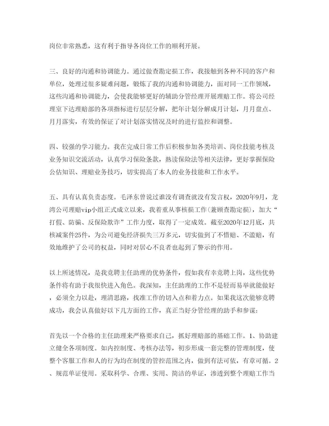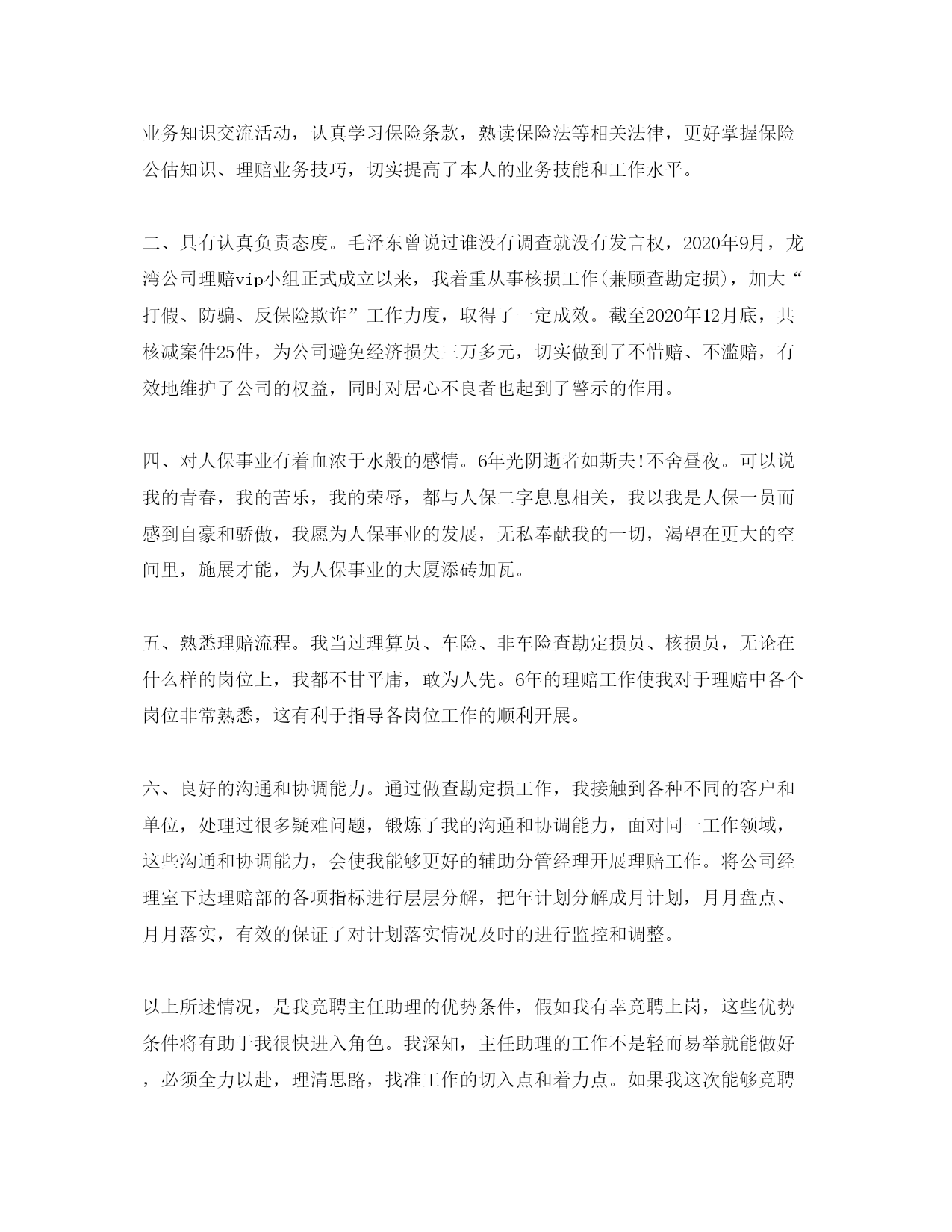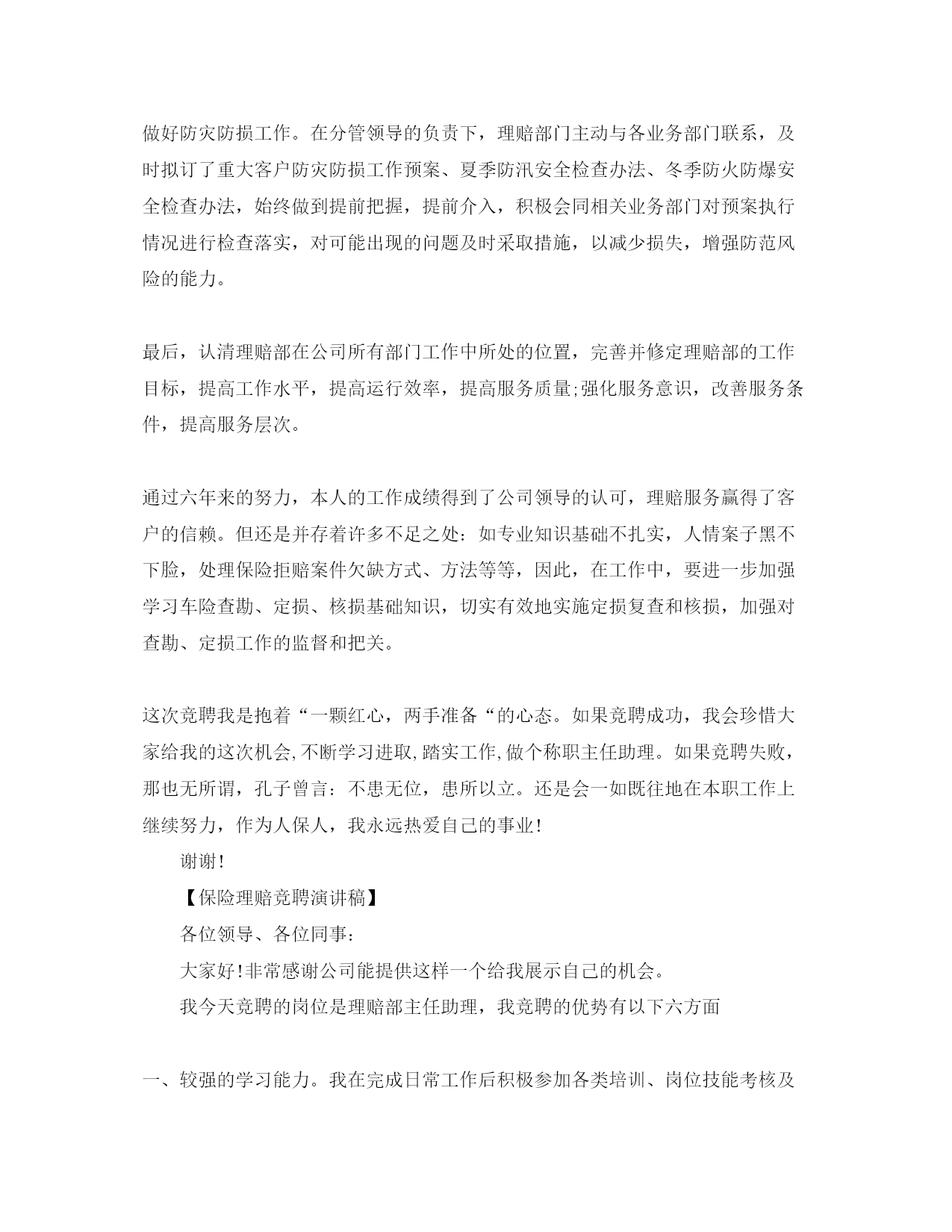 此资料由网络收集而来,如有侵权请告知上传者立即删除。资料共分享,我们负责传递知识。保险理赔竞聘演讲稿【保险理赔竞聘演讲稿】在座的各位领导、各位同事,大家好!非常感谢龙湾公司能提供这样一个给我展示自己的机会。我叫,1999年××*学校法律专业毕业后,先后在法院实习过、律师楼瞎忙过,政府部门打杂过。2020年6月加入××保险公司至今,先后3次被评为先进个人,除了干好本职工作外,期间还参加了××大学法律本科学习,因而,可以说技术和业务与我形影相伴。我没有过人的聪明才智,也没有大起大落的坎坷经历,更没有轰轰烈烈的豪迈事迹,我有的只是一种埋头苦干、坚持不懈的精神。几年来,虽说查勘定损只是一两件小事,且时过三四年遥,境迁五六里远,特别是七八月间的盛夏季节,九十点钟的戌亥时分,加上至少十多天阴雨天气,案件每天高达二十多件,压在××理赔组仅有的几人身上,然着实让人惊奇不已,使人感触良深。如今对于一位有强烈责任感的职工来说,我参加今天的竞选,是不需要理由的,不参加才需要理由!我今天竞聘的岗位是理赔部主任助理,我竞聘的优势有以下六方面一、对人保事业有着血浓于水般的感情。6年光阴逝者如斯夫!不舍昼夜。可以说我的青春,我的苦乐,我的荣辱,都与人保二字息息相关,我以我是人保一员而感到自豪和骄傲,我愿为人保事业的发展,无私奉献我的一切,渴望在更大的空间里,施展才能,为人保事业的大厦添砖加瓦。二、熟悉理赔流程。我当过理算员、车险、非车险查勘定损员、核损员,无论在什么样的岗位上,我都不甘平庸,敢为人先。6年的理赔工作使我对于理赔中各个岗位非常熟悉,这有利于指导各岗位工作的顺利开展。三、良好的沟通和协调能力。通过做查勘定损工作,我接触到各种不同的客户和单位,处理过很多疑难问题,锻炼了我的沟通和协调能力,面对同一工作领域,这些沟通和协调能力,会使我能够更好的辅助分管经理开展理赔工作。将公司经理室下达理赔部的各项指标进行层层分解,把年计划分解成月计划,月月盘点、月月落实,有效的保证了对计划落实情况及时的进行监控和调整。四、较强的学习能力。我在完成日常工作后积极参加各类培训、岗位技能考核及业务知识交流活动,认真学习保险条款,熟读保险法等相关法律,更好掌握保险公估知识、理赔业务技巧,切实提高了本人的业务技能和工作水平。五、具有认真负责态度。毛泽东曾说过谁没有调查就没有发言权,2020年9月,龙湾公司理赔vip小组正式成立以来,我着重从事核损工作(兼顾查勘定损),加大“打假、防骗、反保险欺诈”工作力度,取得了一定成效。截至2020年12月底,共核减案件25件,为公司避免经济损失三万多元,切实做到了不惜赔、不滥赔,有效地维护了公司的权益,同时对居心不良者也起到了警示的作用。以上所述情况,是我竞聘主任助理的优势条件,假如我有幸竞聘上岗,这些优势条件将有助于我很快进入角色。我深知,主任助理的工作不是轻而易举就能做好,必须全力以赴,理清思路,找准工作的切入点和着力点。如果我这次能够竞聘成功,我会认真做好以下几方面的工作,真正当好分管经理的助手和参谋:首先以一个合格的主任助理来严格要求自己,抓好理赔部的基础工作。1、协助建立健全各项制度。如内控制度、考核办法等,初步形成一套完整的管理制度,使整个客服工作和人的行为均在制度的管控范围之内,做到有法可依,有章可循。2、规范单证使用。采取科学、合理、实用、简洁的单证,渗透到整个理赔工作当中。3、建议经理室尽快招兵买马,强化培训,保证短期和中长期的人力资源。4、协调关系,加强沟通。a改善内部协调,做好“上行下达、下情上达”的重要环节。对上级交办的任务、对其他部门的具体要求,能办的一定马上就办,绝不让查勘定损拖业务发展的后腿;对反映工作的动态性信息要严格按照时间要求及时上报。b强化外部协调,与交警队、公估公司、律师、修理厂等部门建立良好的工作关系,使本部一些工作能够顺利有效的进行。其次,全面提高理赔质量和理赔管理水平。在工作中,我和我的团队要进一步加强车险查勘、定损、报价、核赔、医疗审核等关键环节的工作,做到有目标、有措施、有激励,不断提高保险理赔质量与效率。因此,我们要切实做到:1、查勘定损岗接到95518调度后5分钟内回复率力争达到100%,现场到位率力争达到100%,理算岗件数结案率力争达到85%。2、控制好车损险定损质量,确保车险赔付率明显下降。因此我们要提高第一现场场查勘率,挤压车损险赔案中的水分,切实有效地实施定损复查和核损,加强对查勘、定损工作的监督和把关。3、加强理赔队伍建设,严格执行纪律,全面细心接报案,及时出现场,准确报价,热情服务,合理理算赔付。进一步完善案件快速理赔办法,在坚持主动、迅速、准确、合理的原则下,保证案件处理的简化、便捷、快速。4、建立健全维修、救援、配件为主的服务网络,本着互