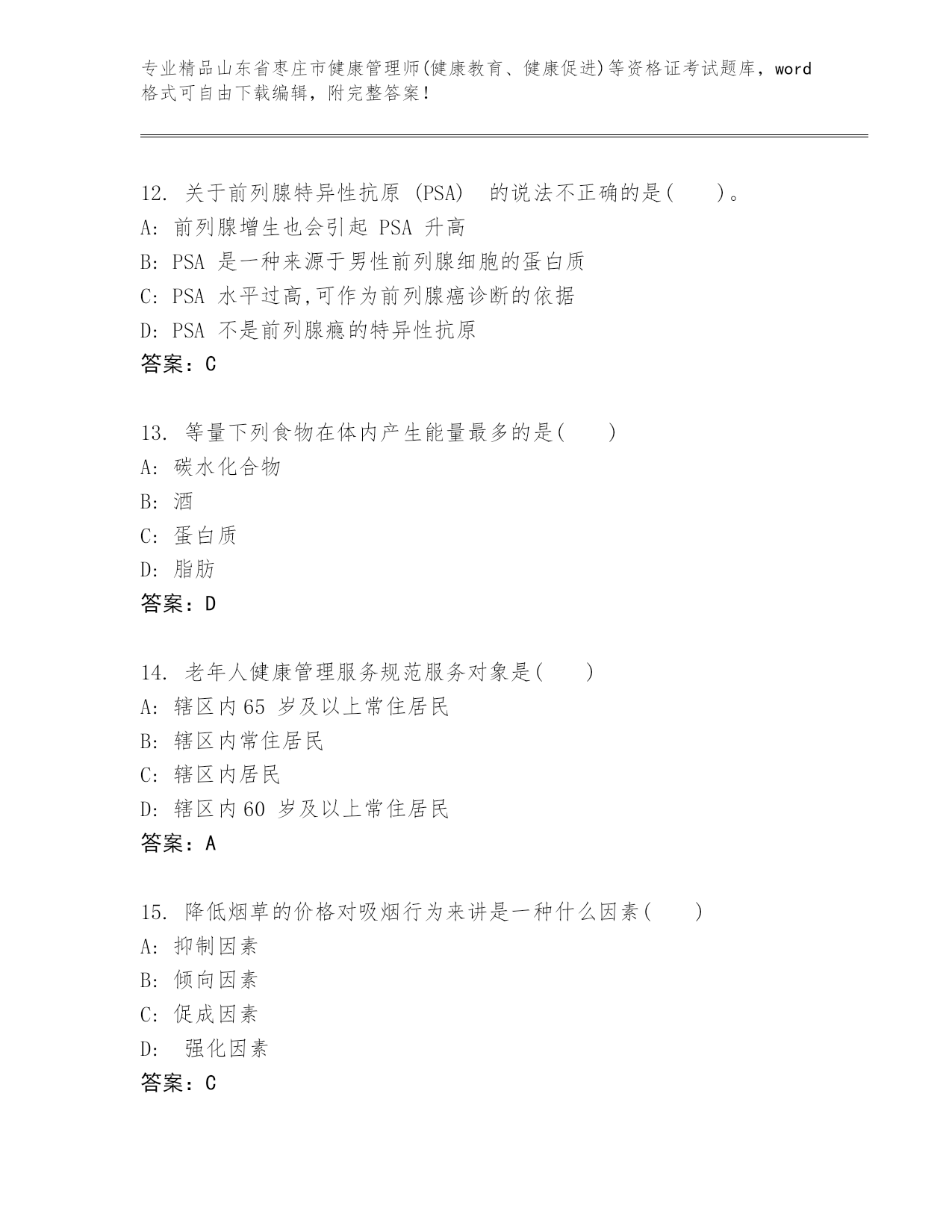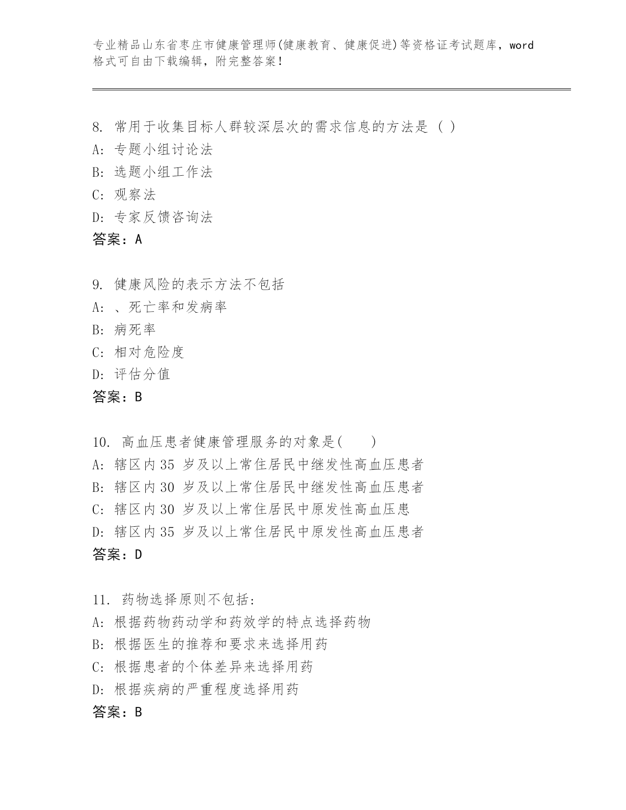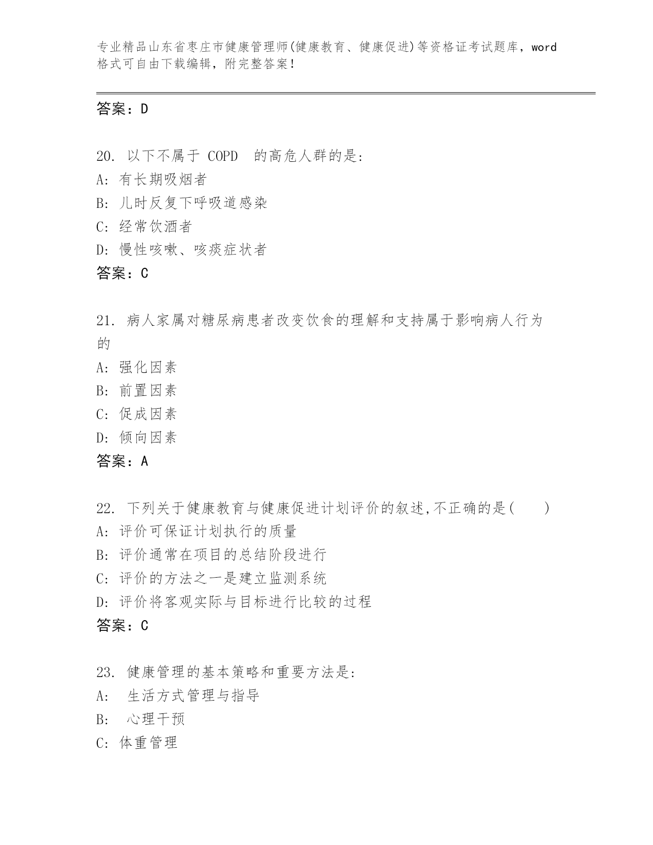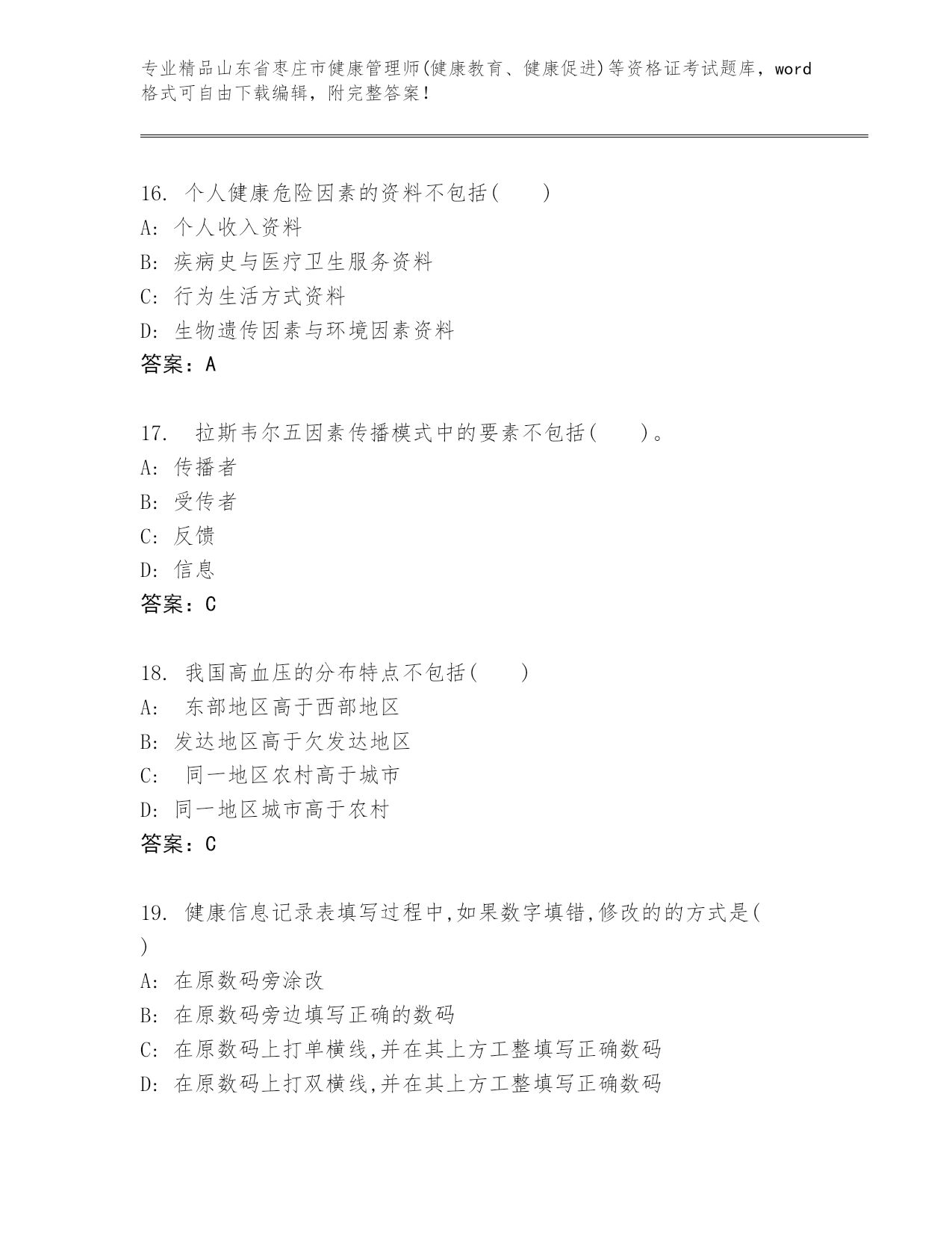 最新山东省枣庄市健康管理师(健康教育、健康促进)等资格证考试大全(考点精练).docx