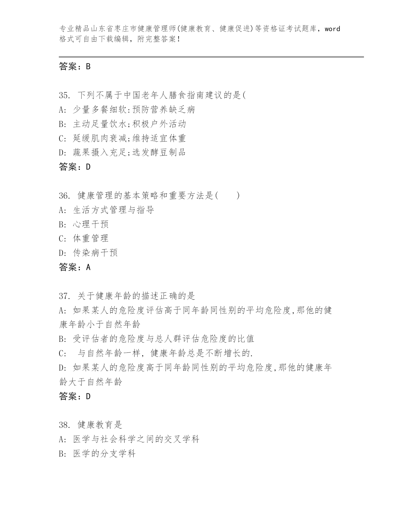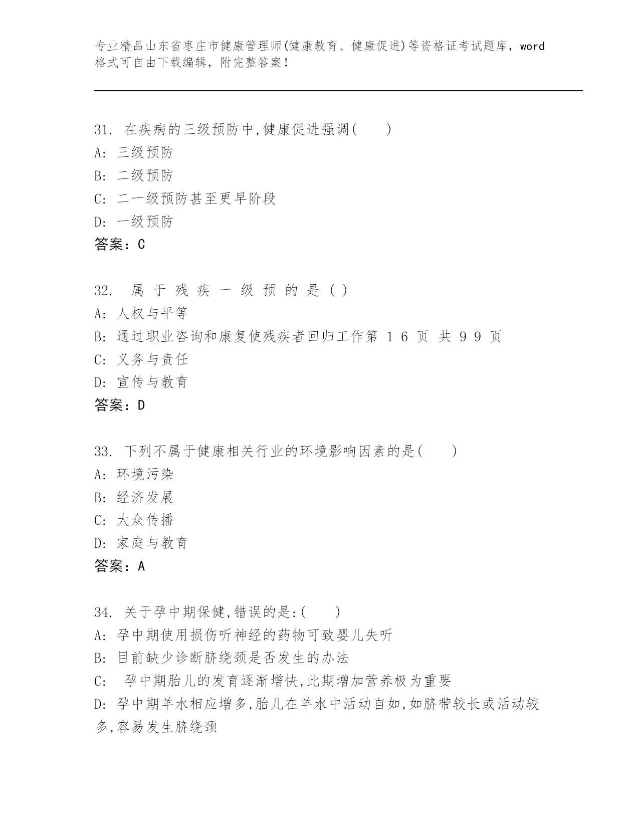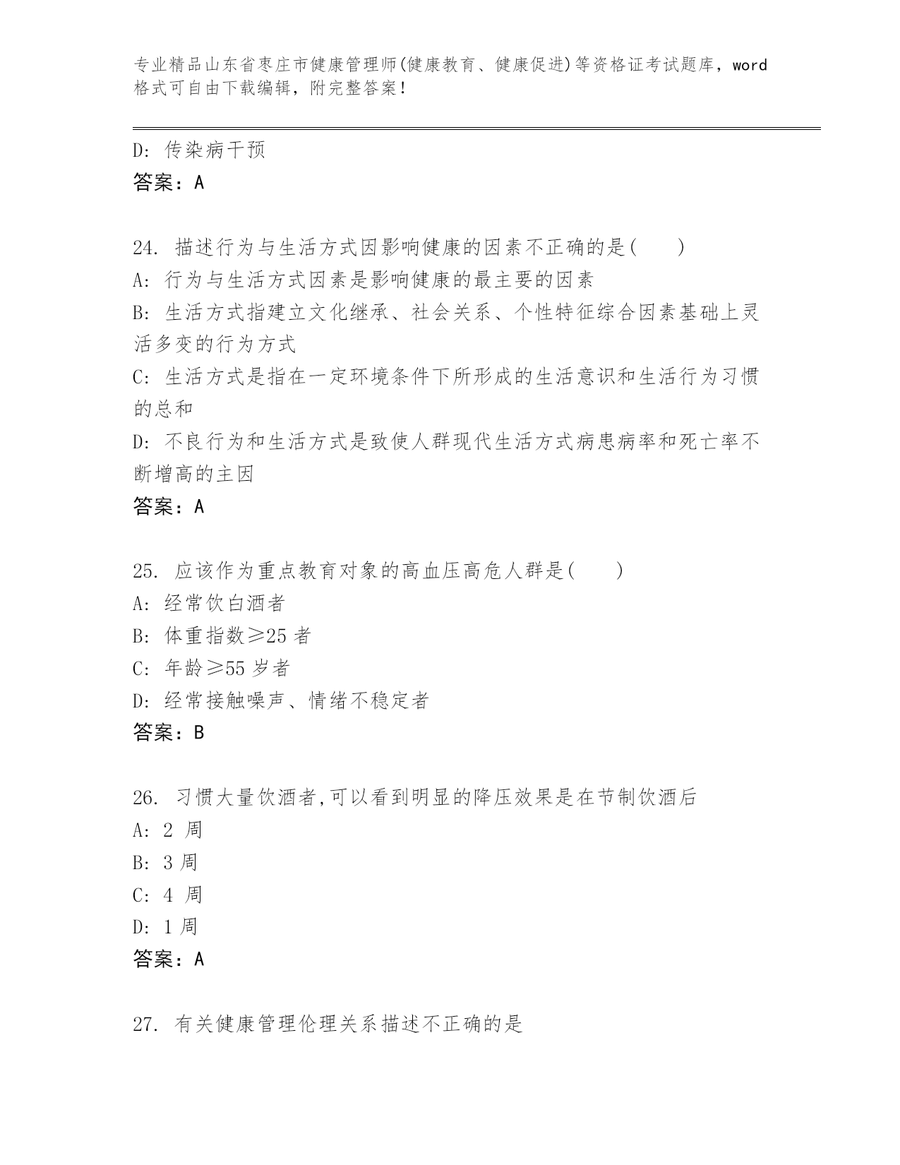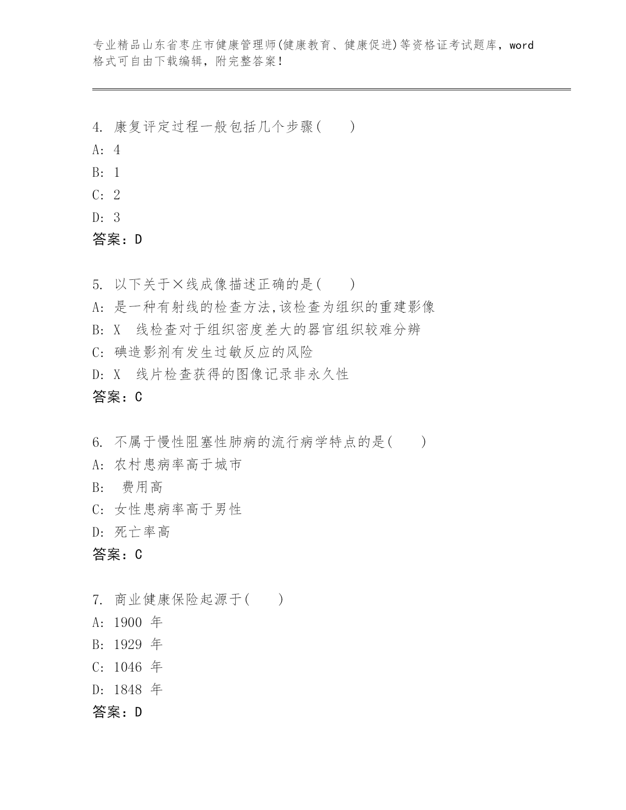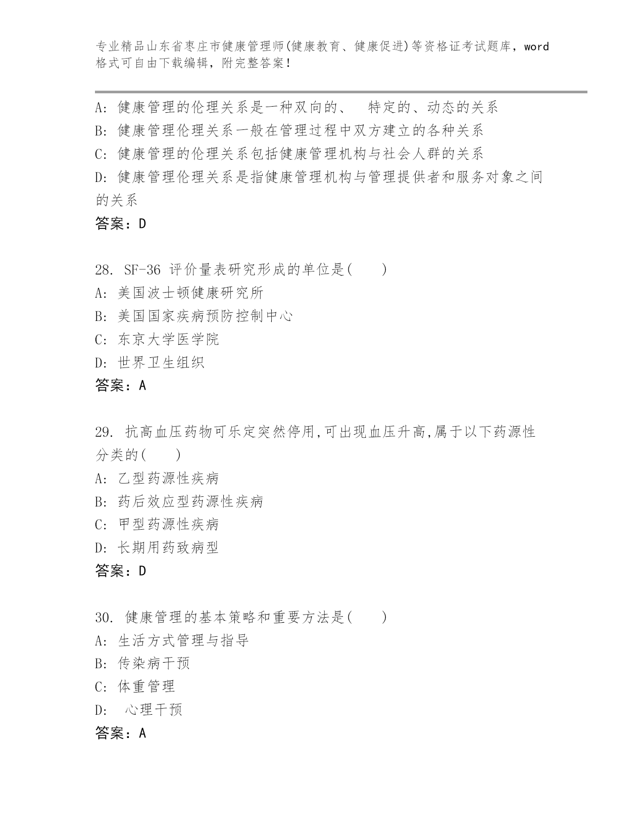最新山东省枣庄市健康管理师(健康教育、健康促进)等资格证考试大全(考点精练).docx