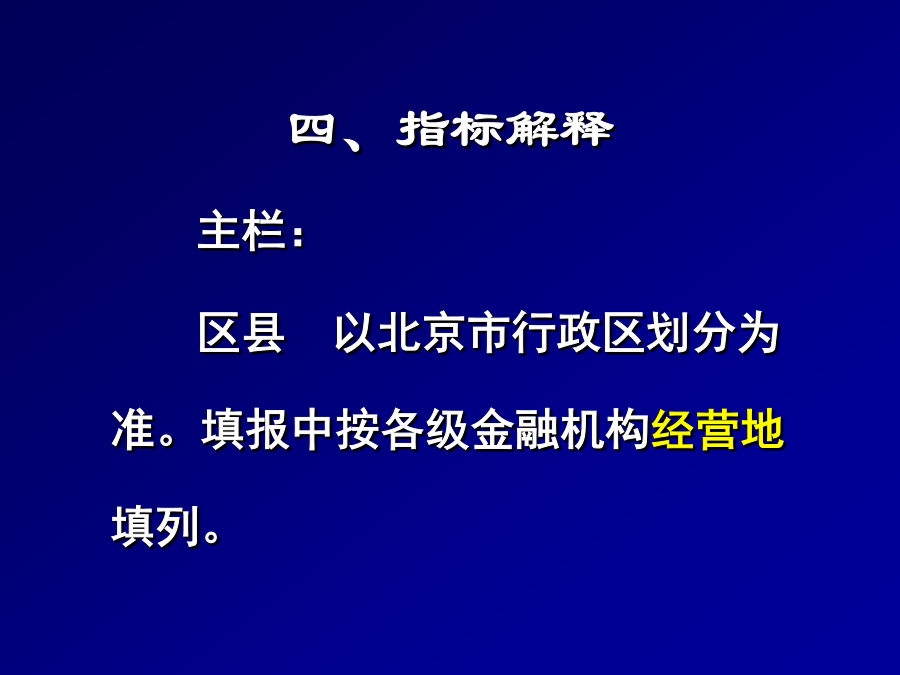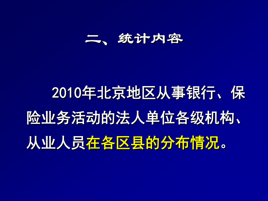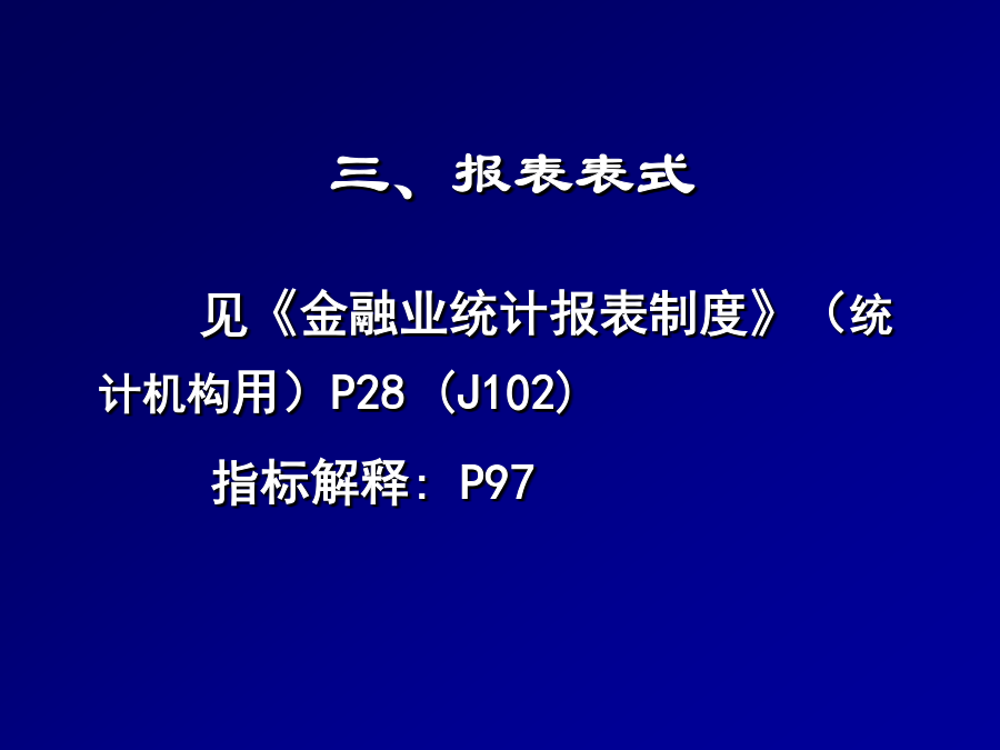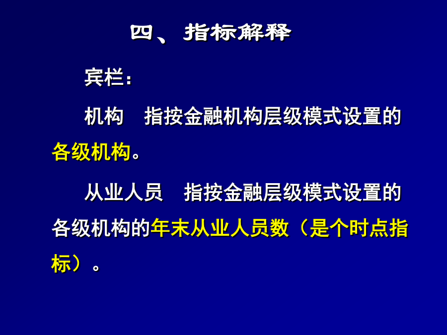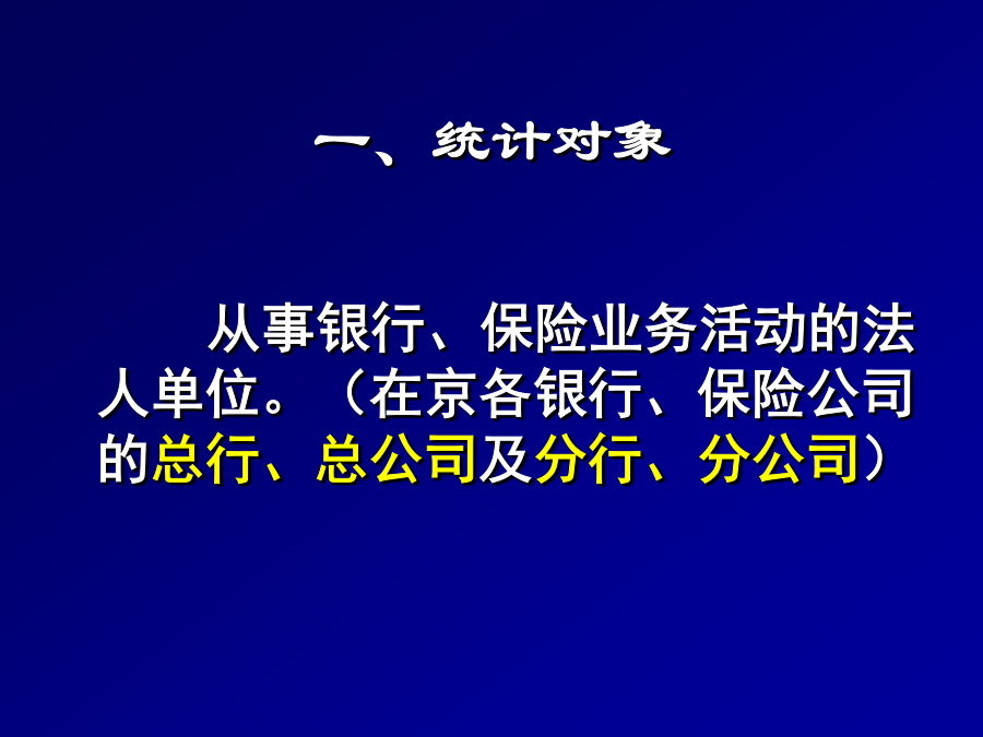 银行、保险系统机构人员情况(J102表)(年报)一、统计对象二、统计内容三、报表表式见《金融业统计报表制度》(统计机构用)P28(J102)指标解释:P97四、指标解释四、指标解释五、指标间关系六、填报注意事项六、填报注意事项六、填报注意事项六、填报注意事项六、填报注意事项六、填报注意事项七、审核需关注问题七、审核需关注问题七、审核需关注问题