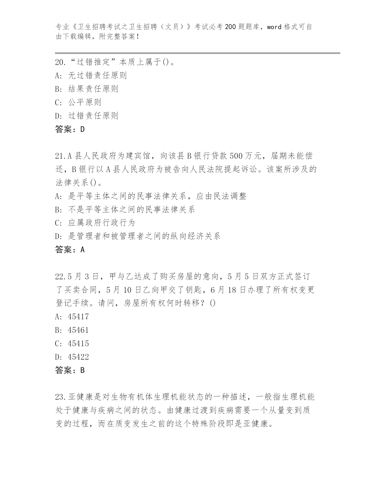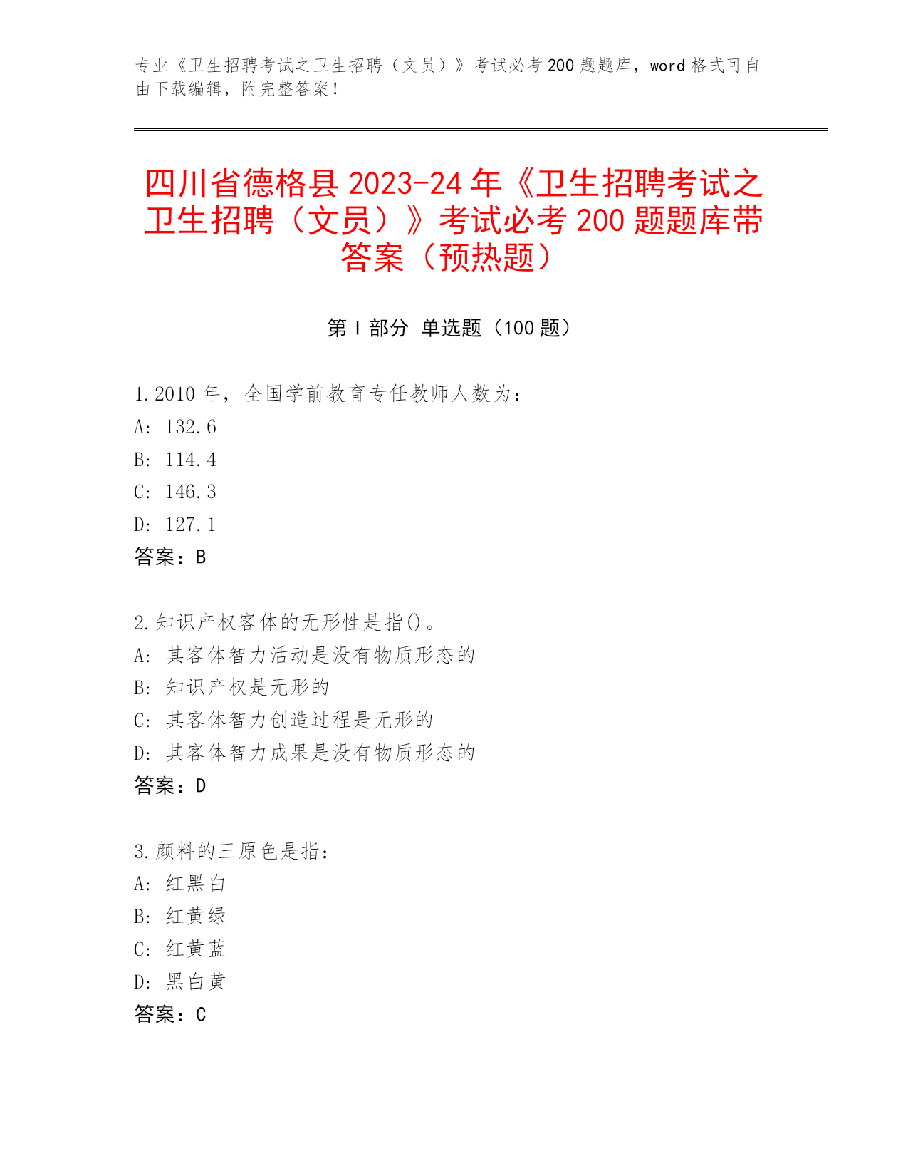 四川省德格县2023-24年《卫生招聘考试之卫生招聘(文员)》考试必考200题题库带答案(预热题)
